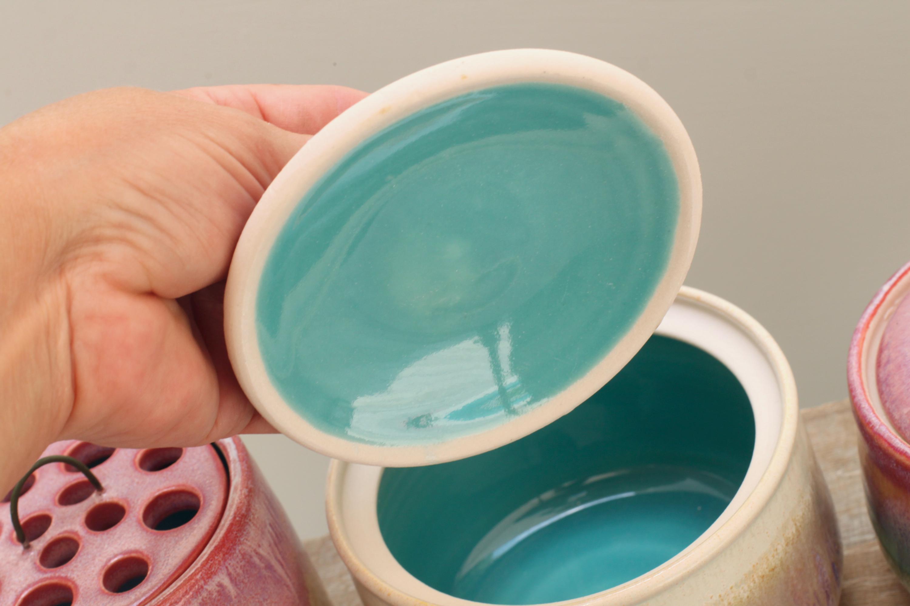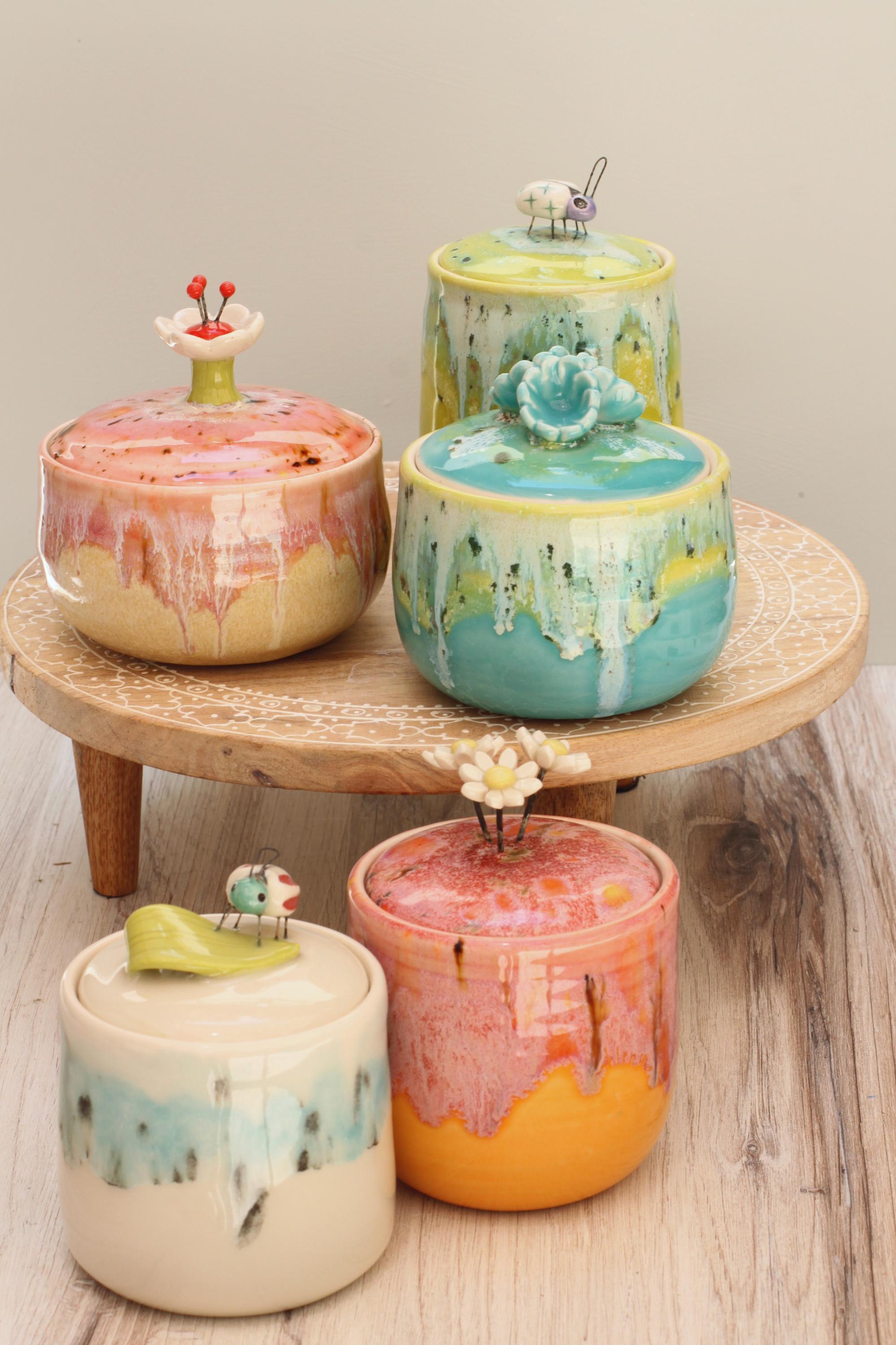 This little lidded container is big on charm! The colors are fantastic and the style and shape is perfect for where I planned on putting it. Very happy! Thanks!
