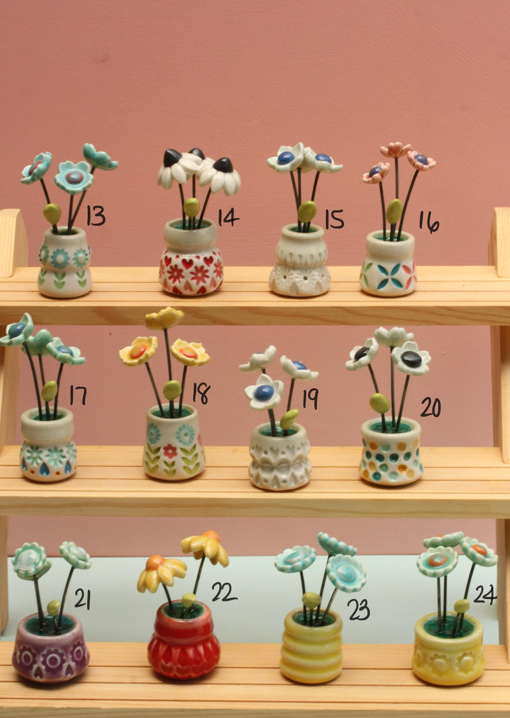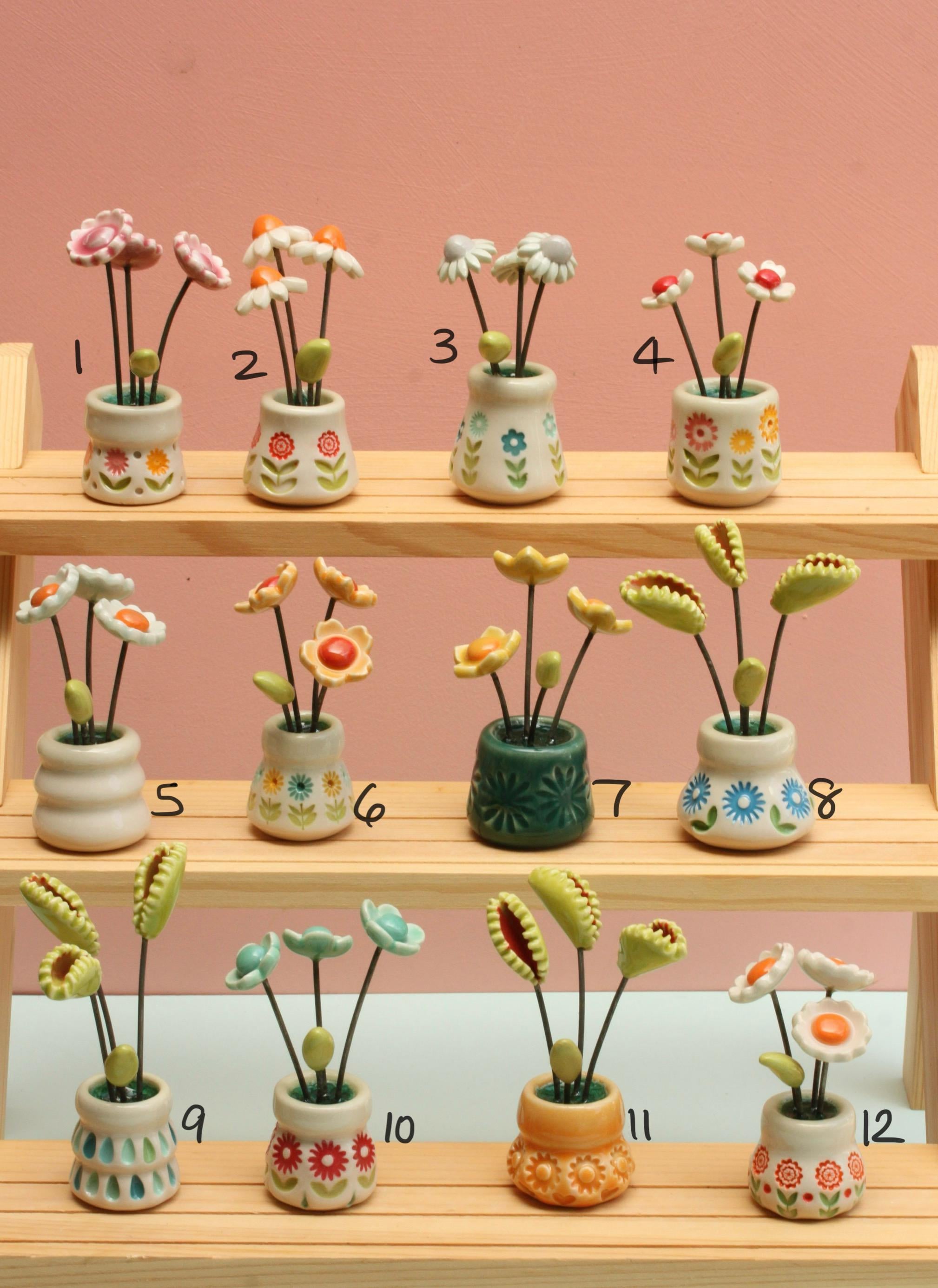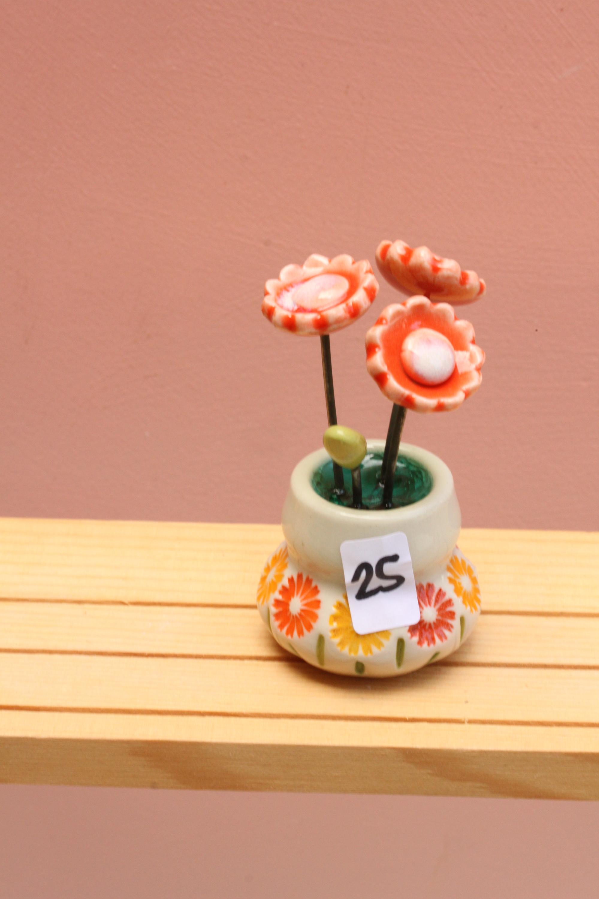 Mini pot with flowers // miniature vase with flowers // mini ceramics