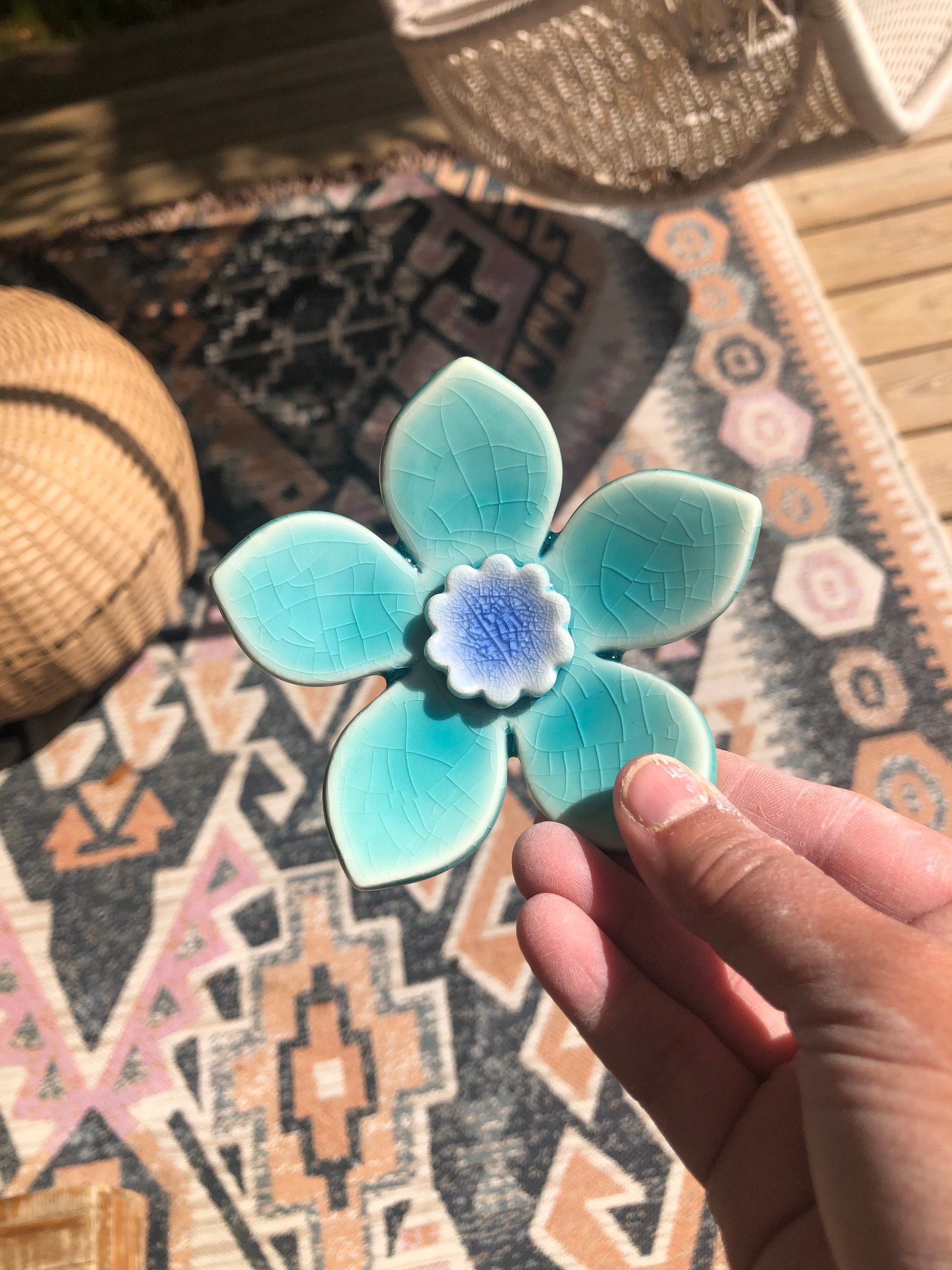 Handmade from porcelain this sweet wall bloom will add a little touch of color to your space.