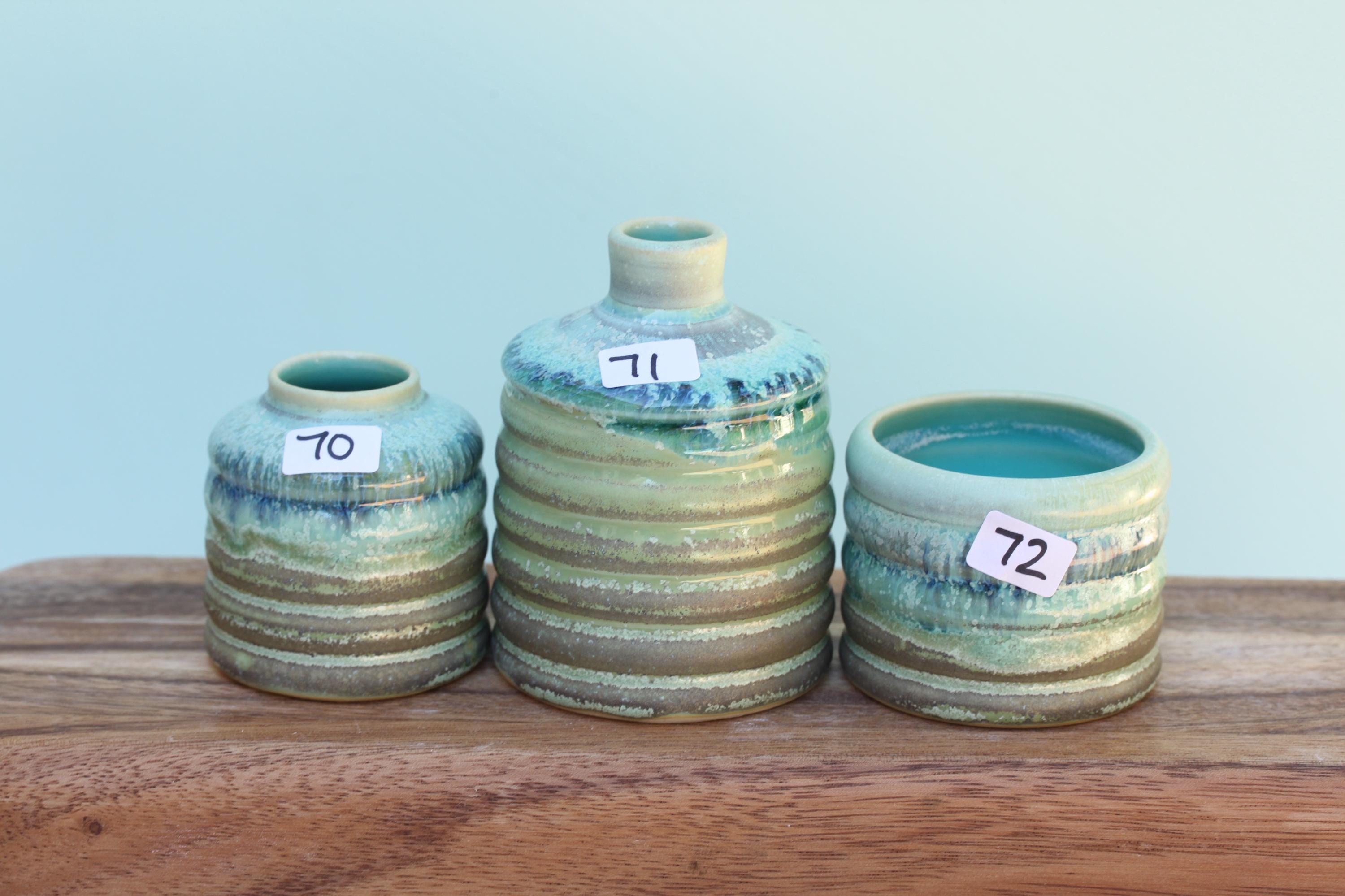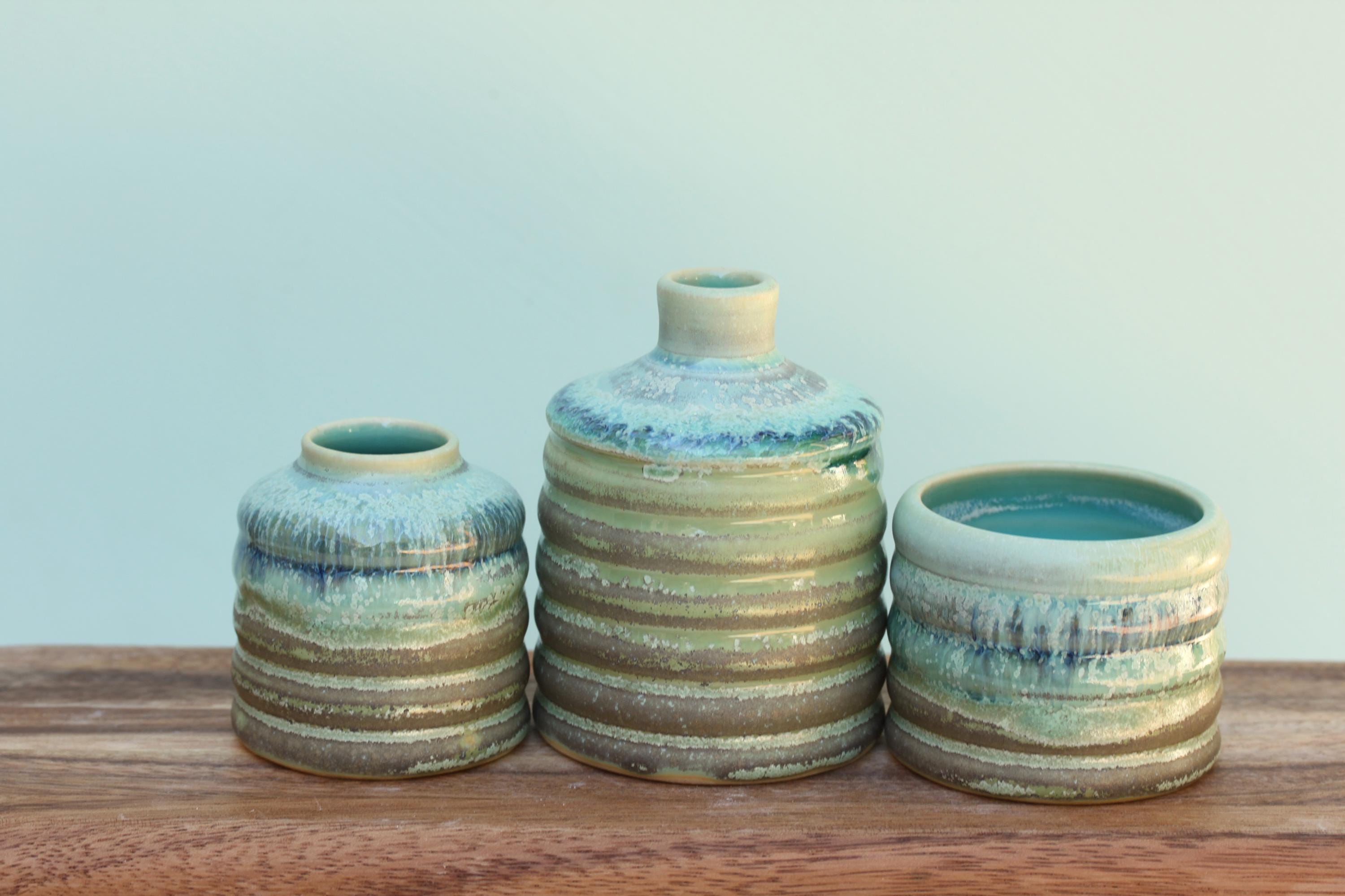 Listing is for one little vase, choose your favorite. Add a bloom or a few and this pretty bud vase is ready to go! Wheel thrown porcelain and accented with layers of reactive glazes.
