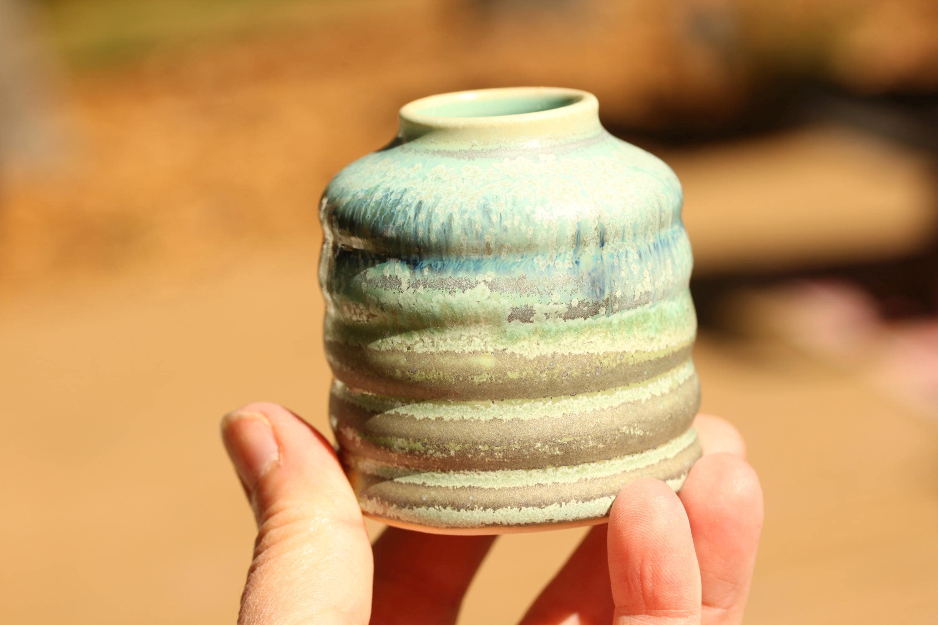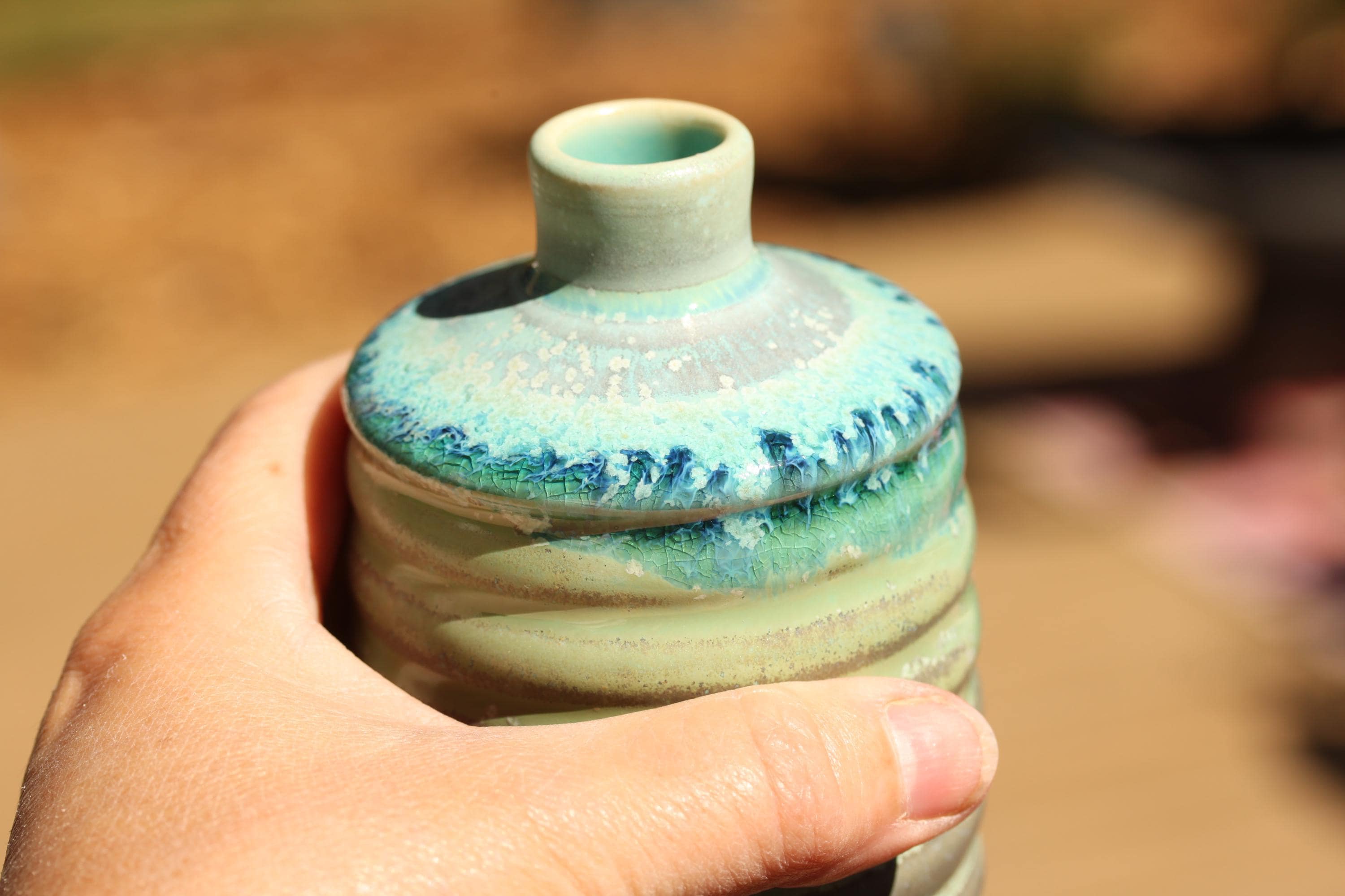 Small Ceramic Bud Vase: Wheel Thrown Porcelain, Reactive Glazes