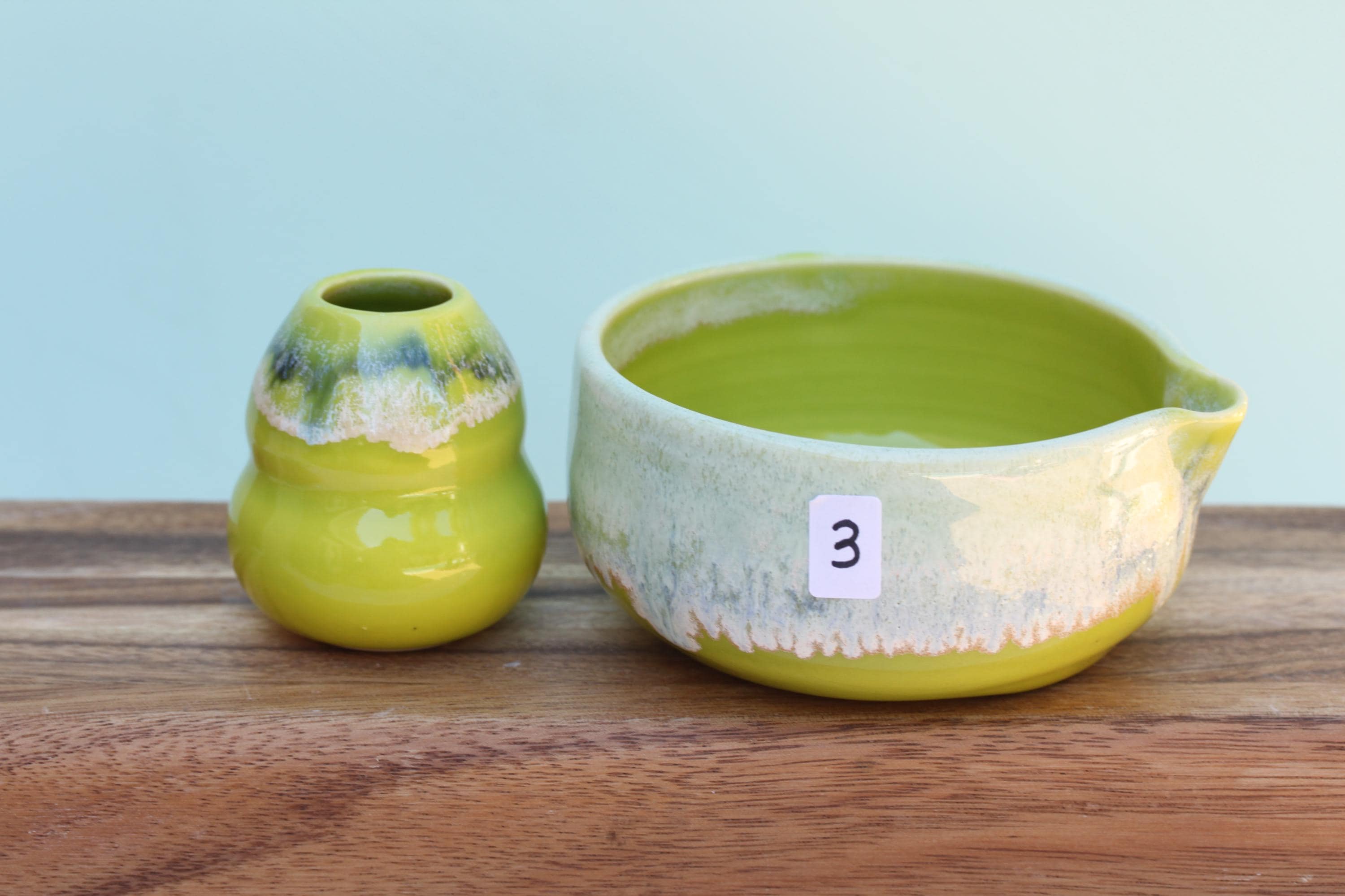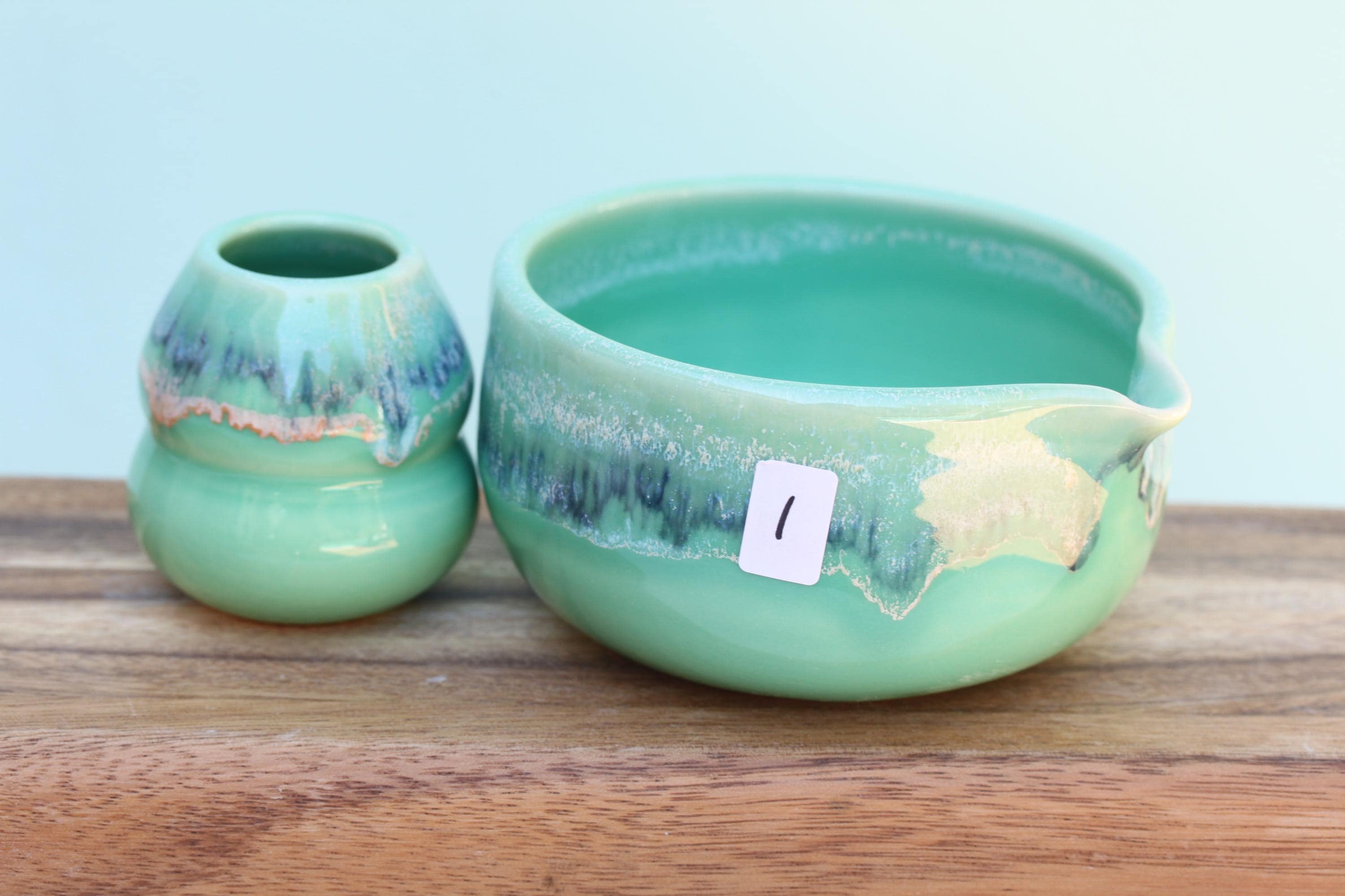 Listing is for one 2 piece matcha set. This comes with the whisk holder and a mixing bowl. Whisk is NOT included. Whisk stand is hollow.