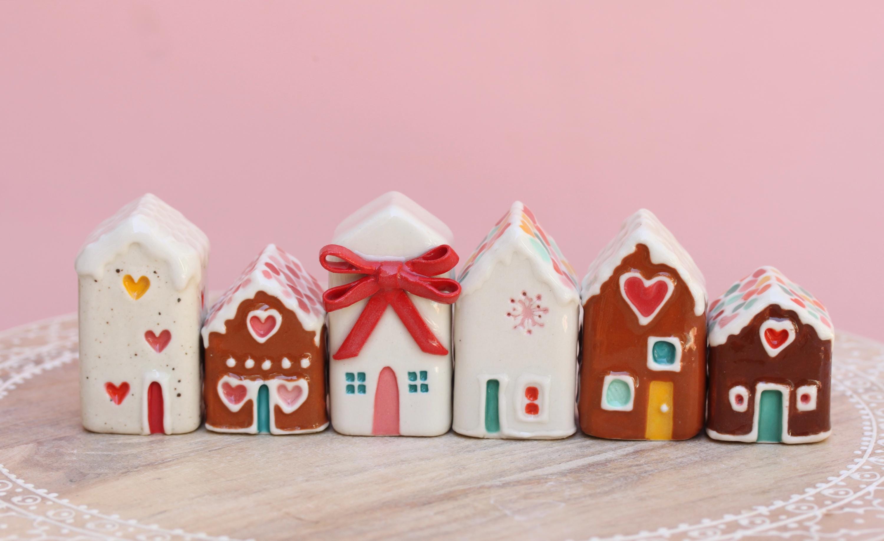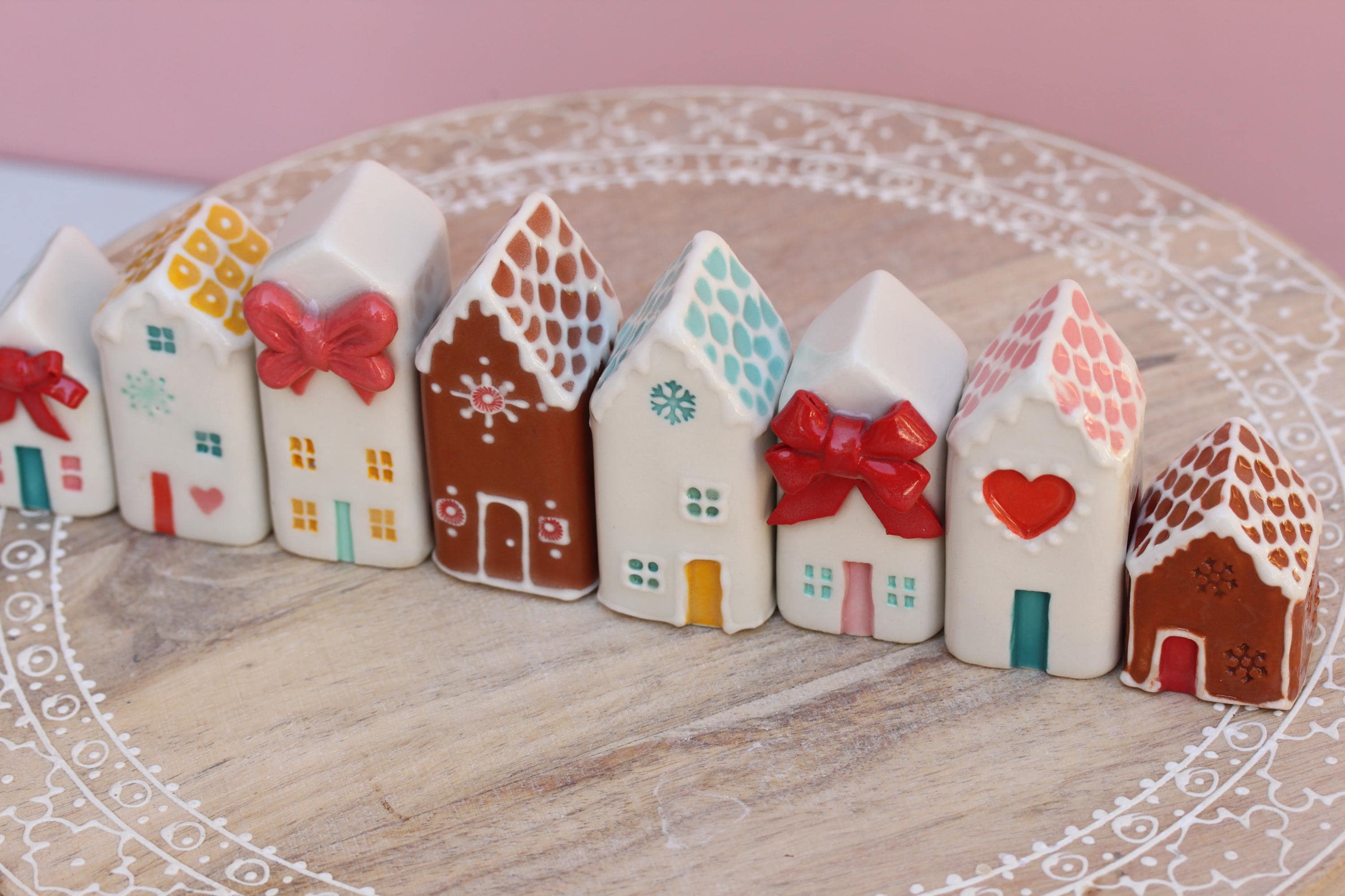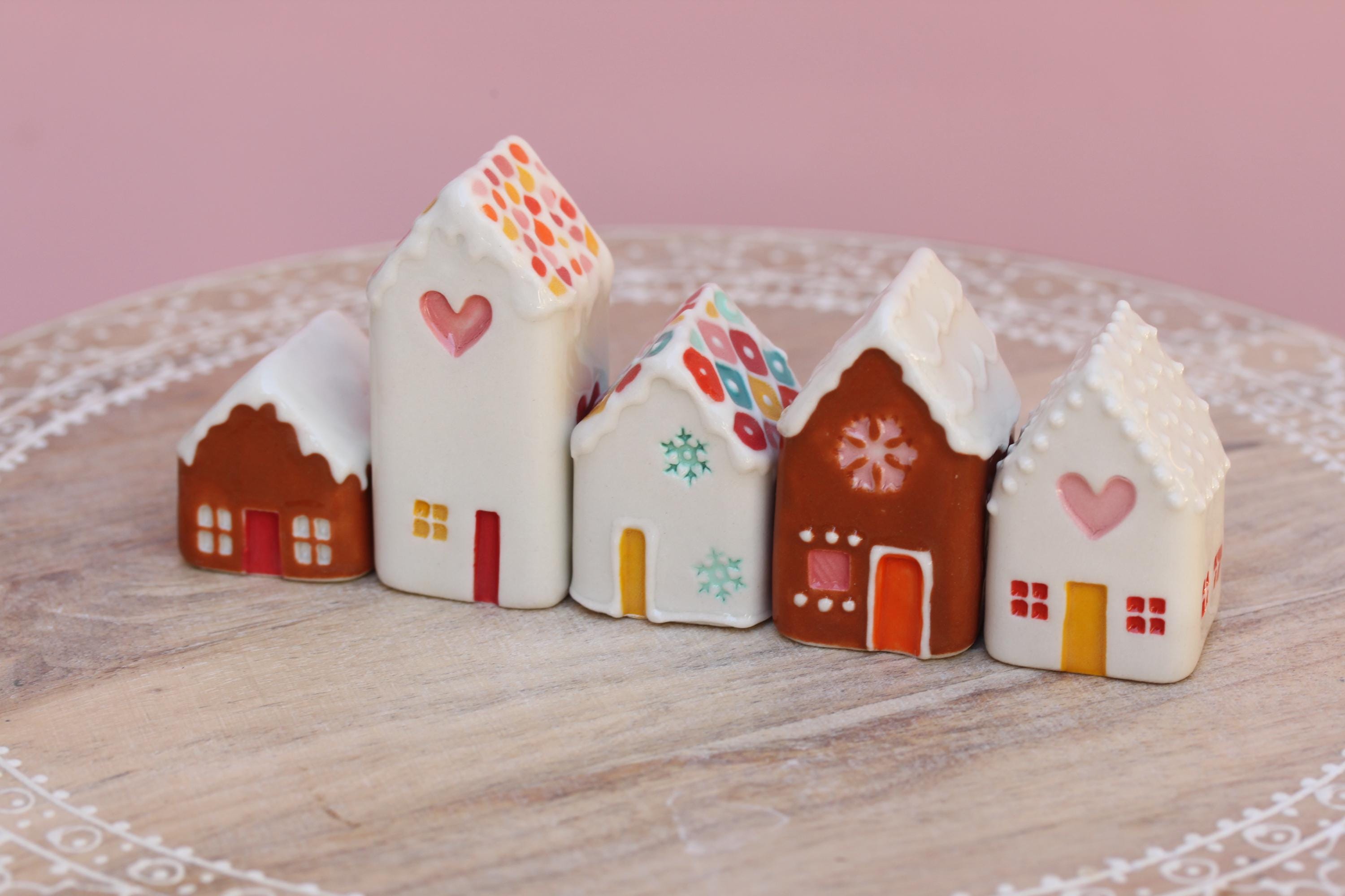 little ceramic gingerbread house // Christmas decor // tiny house //little clay house // small house