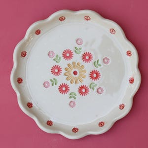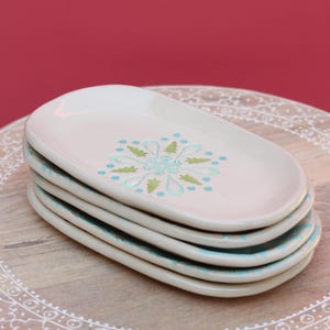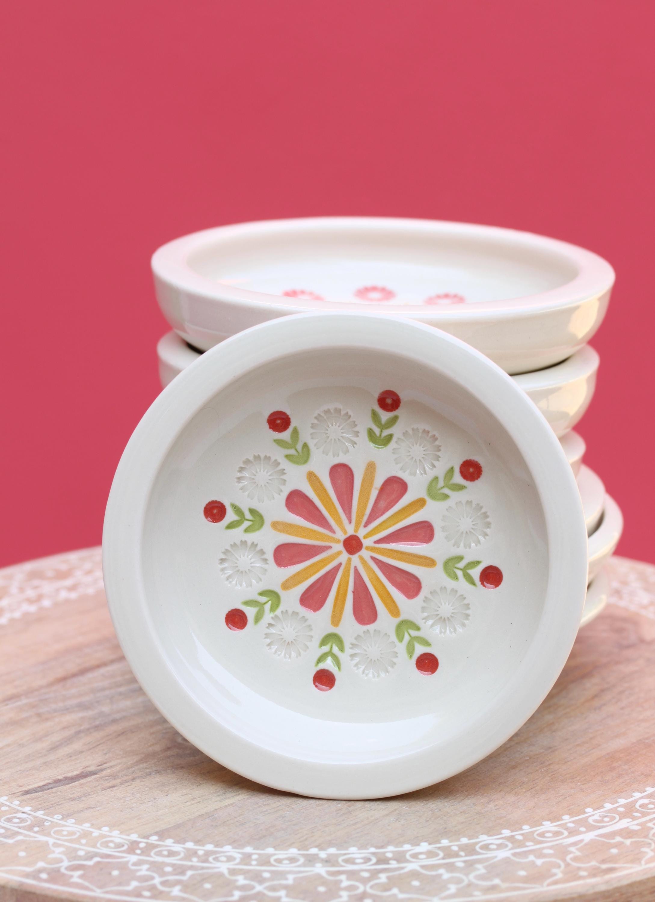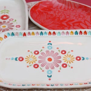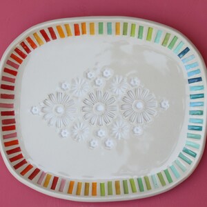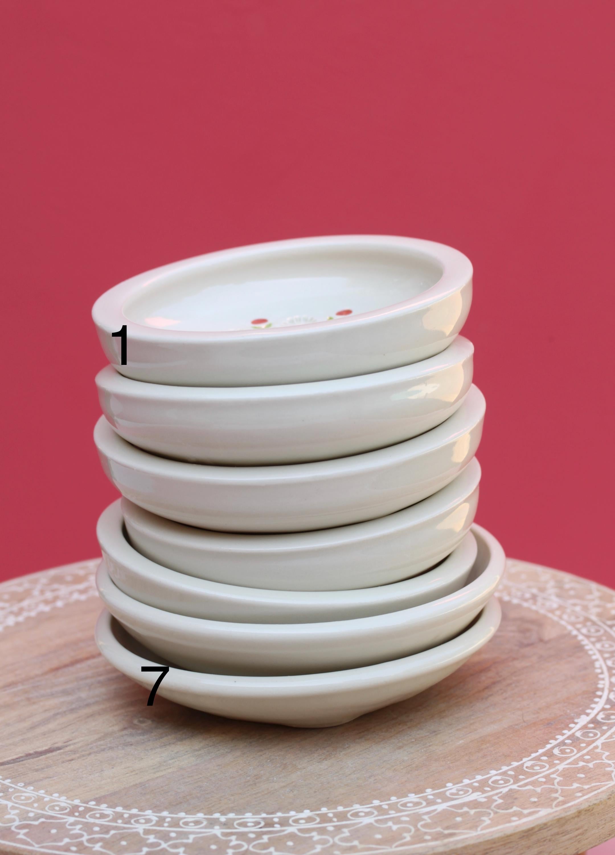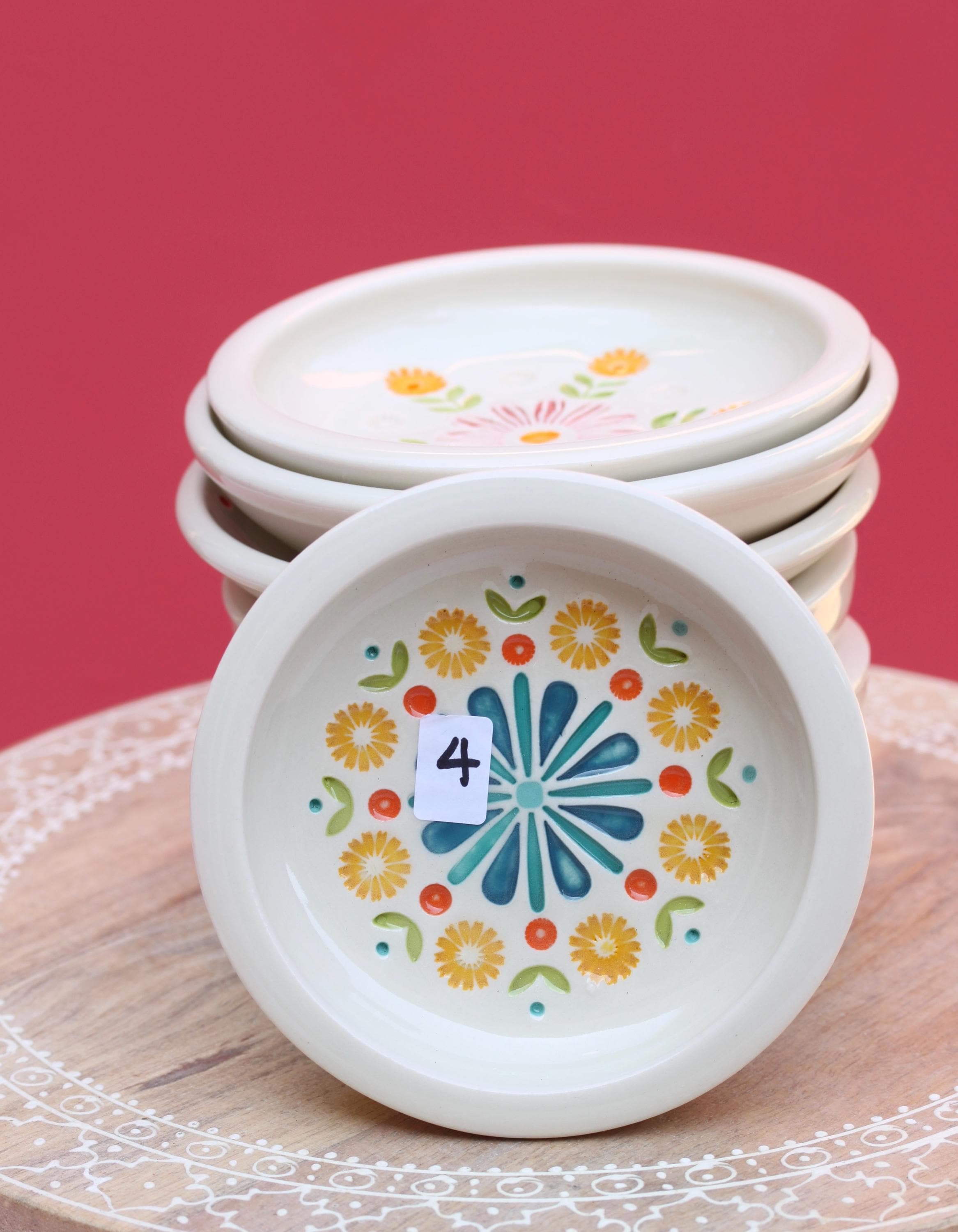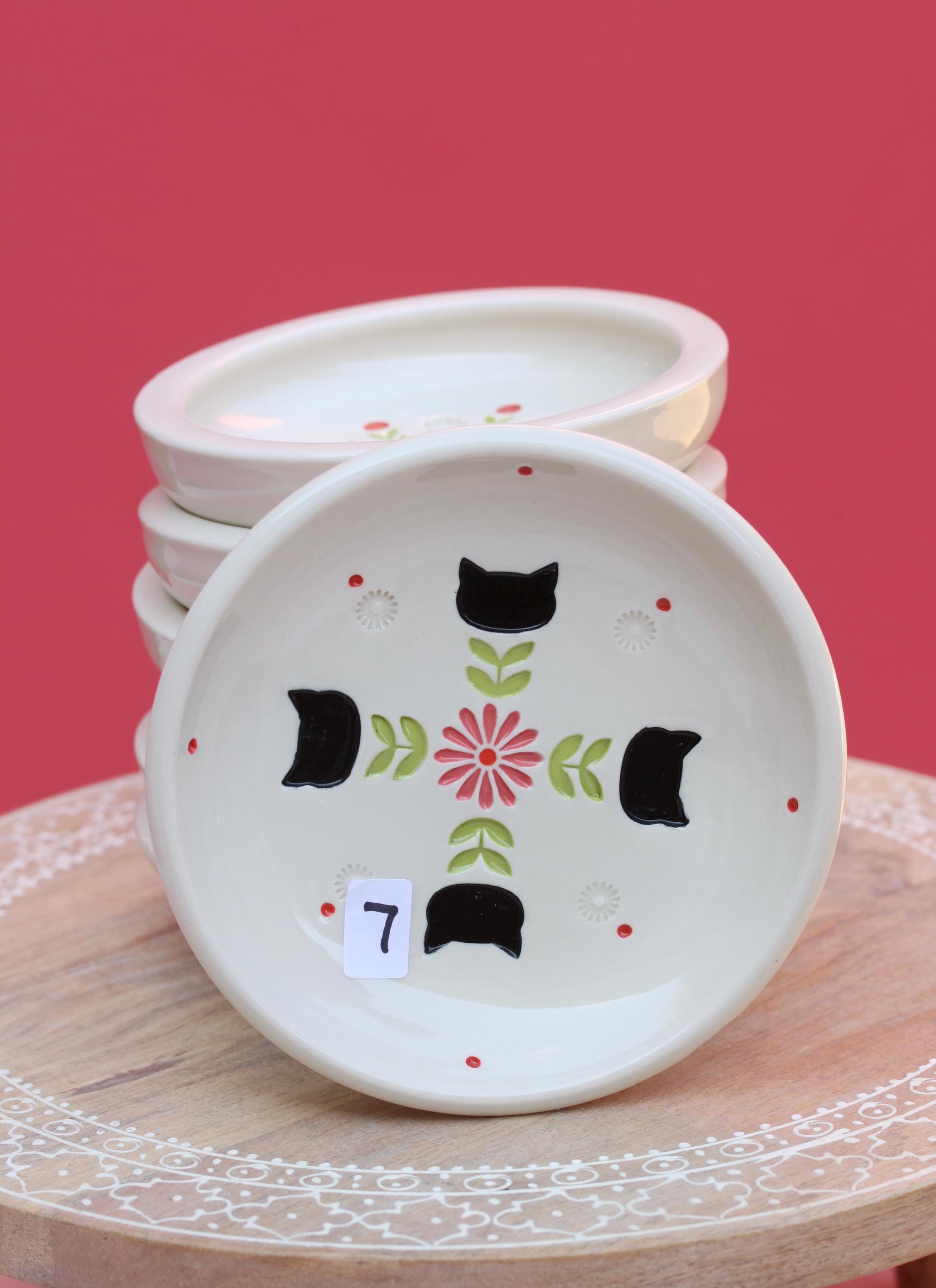 Listing is for one colorful dish, choose your favorite. . The wheel thrown porcelain dish was stamped, decorated with colorful underglazes and finished in a shiny clear glaze.