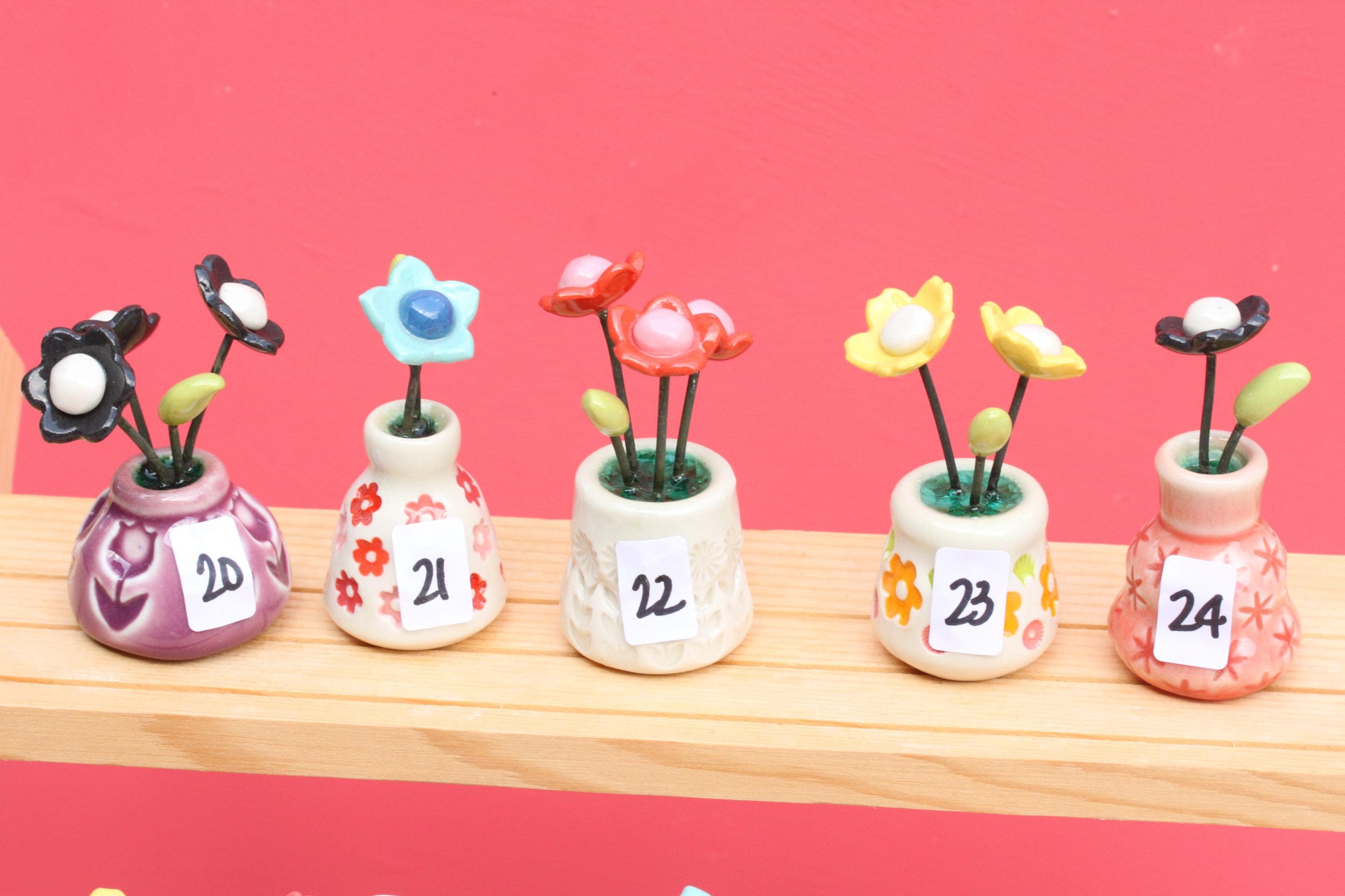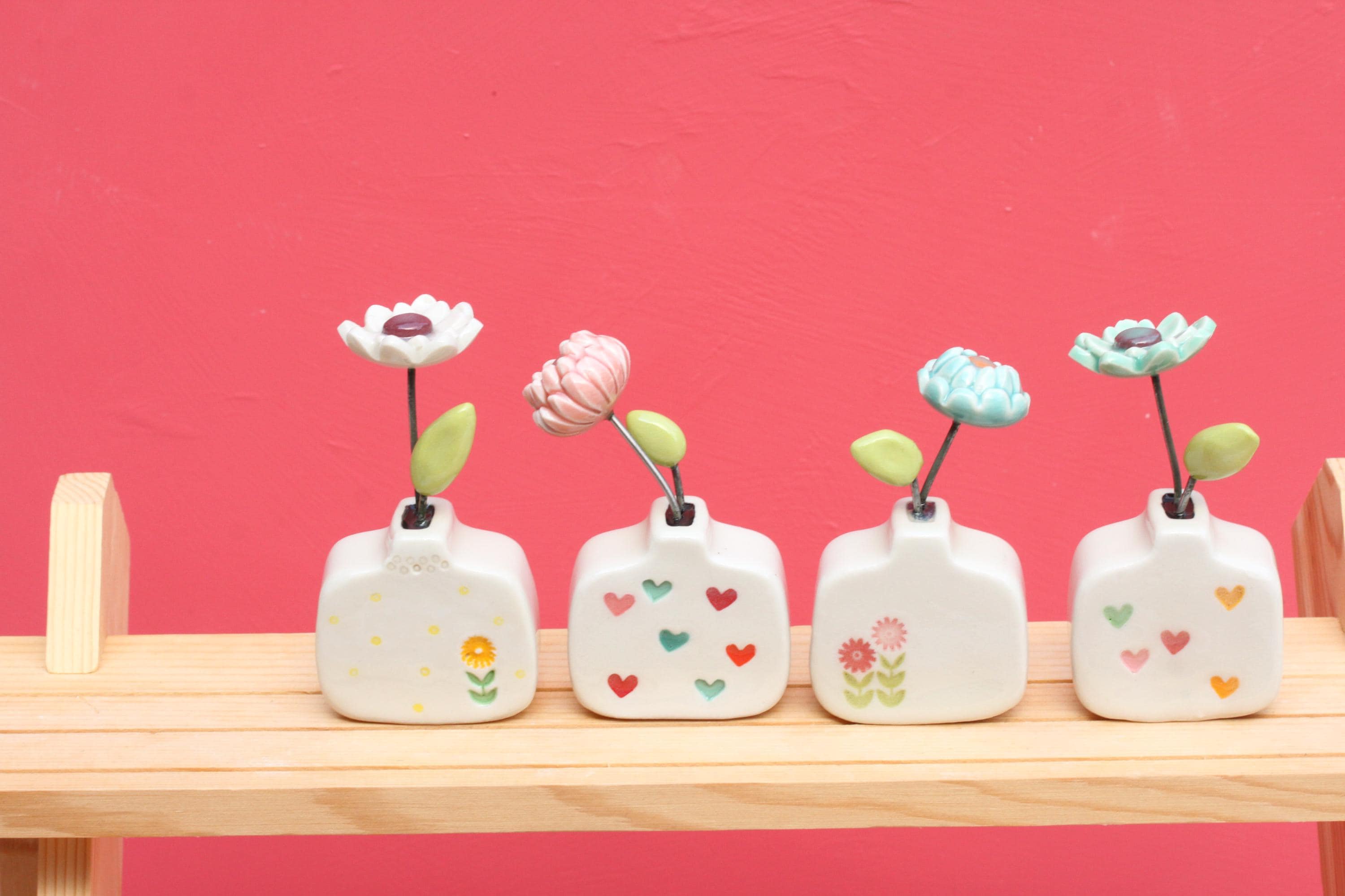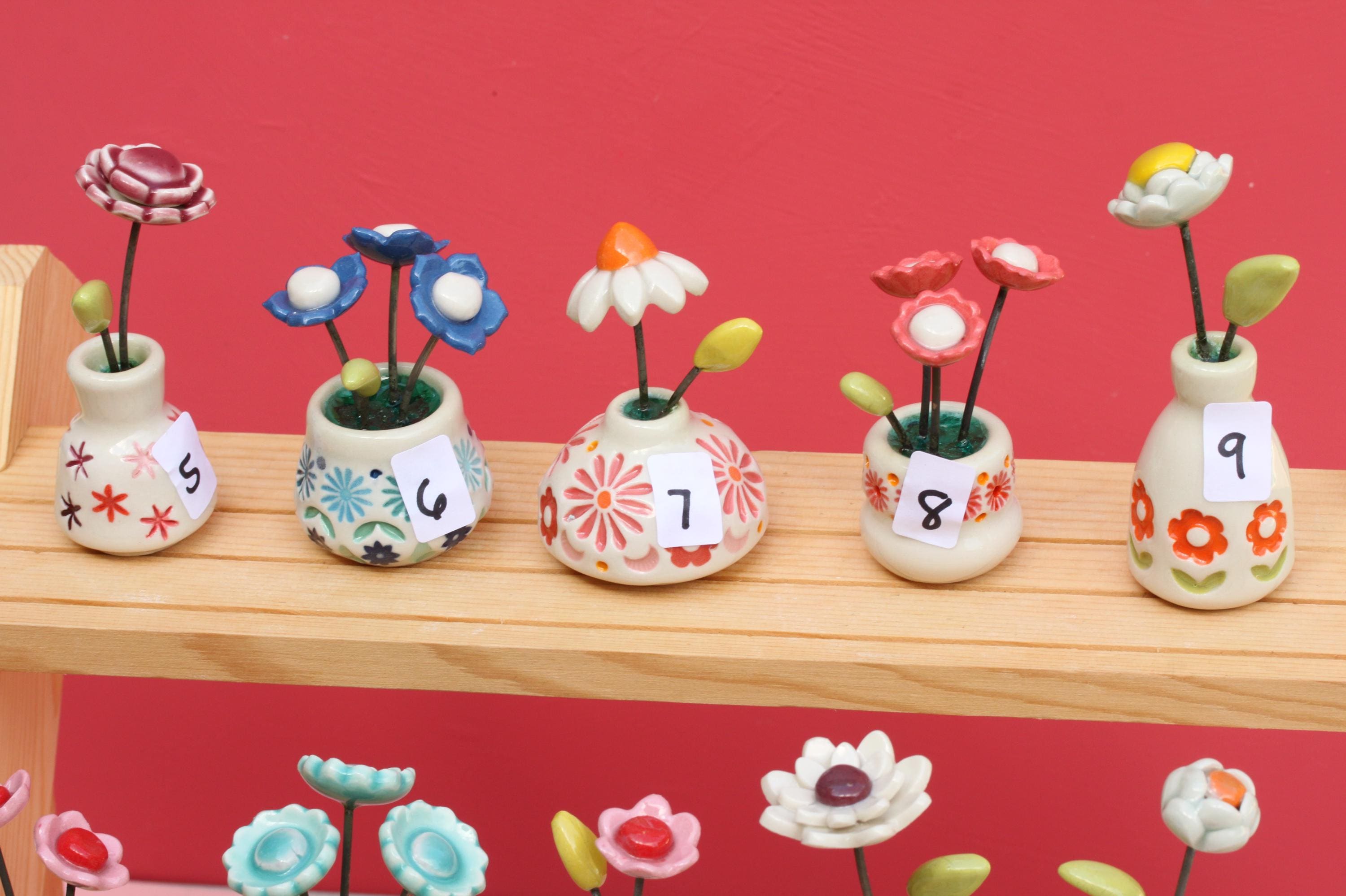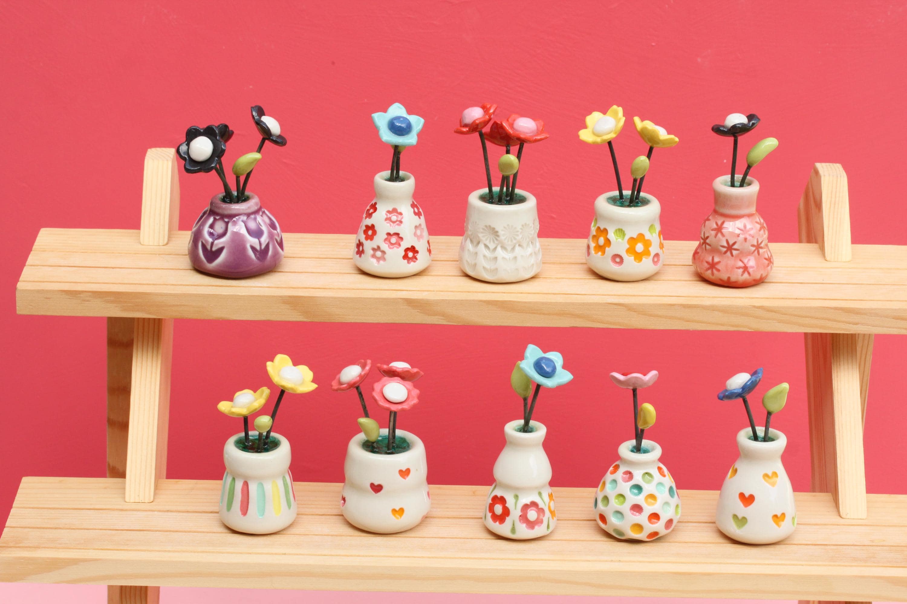 Mini pot with flowers // miniature vase with flowers // mini ceramics