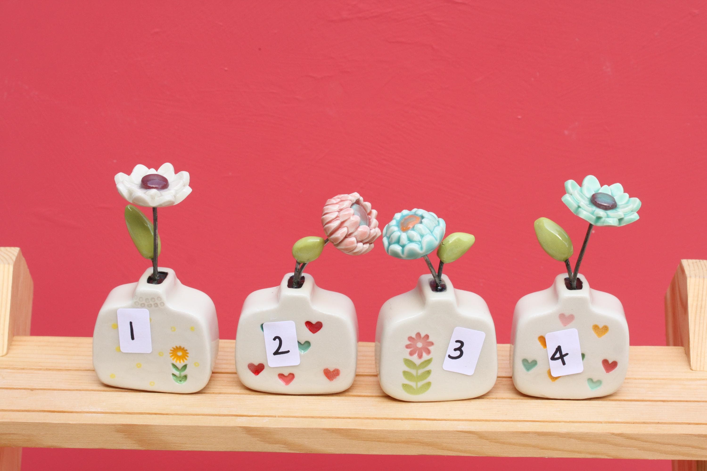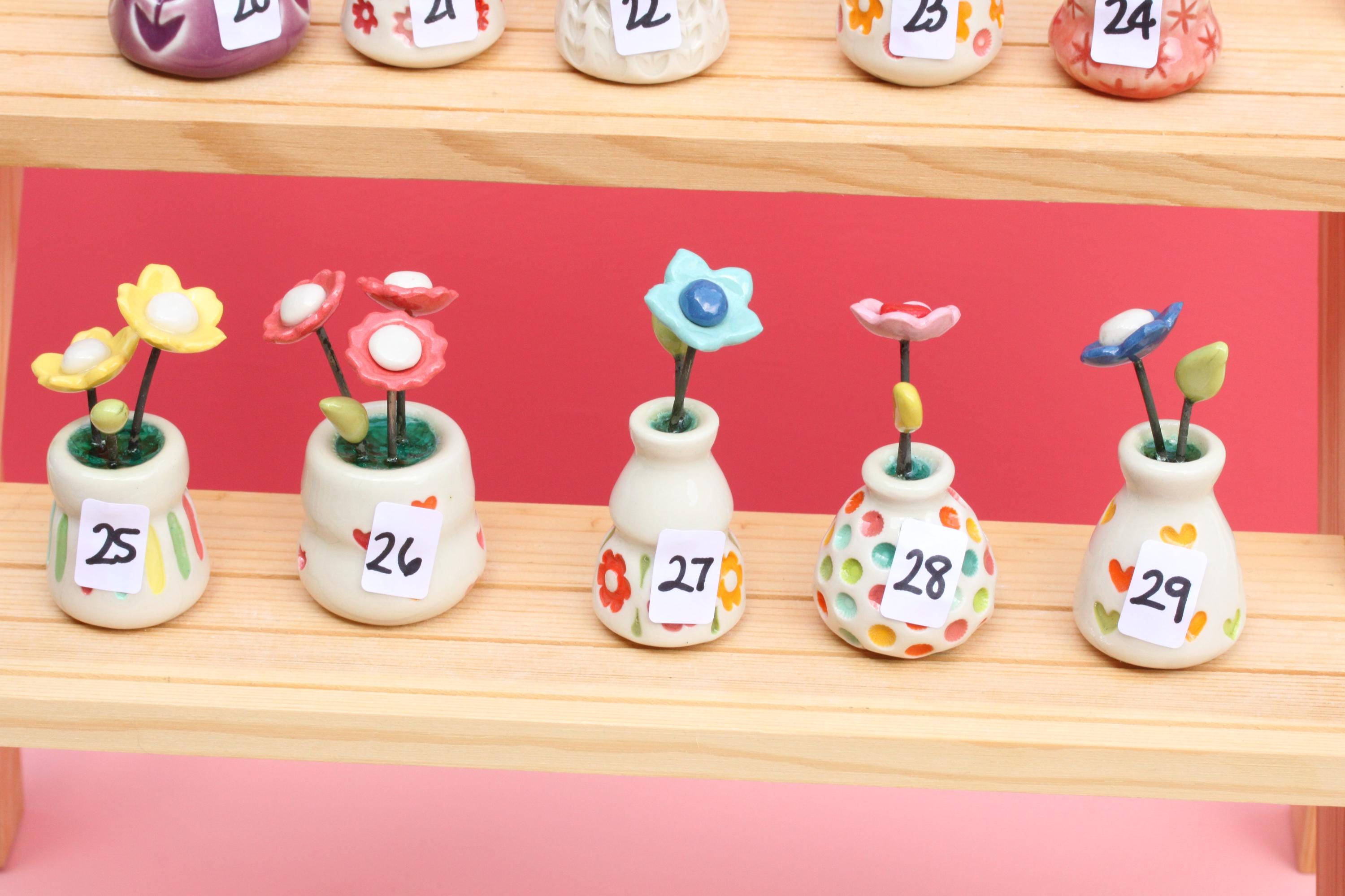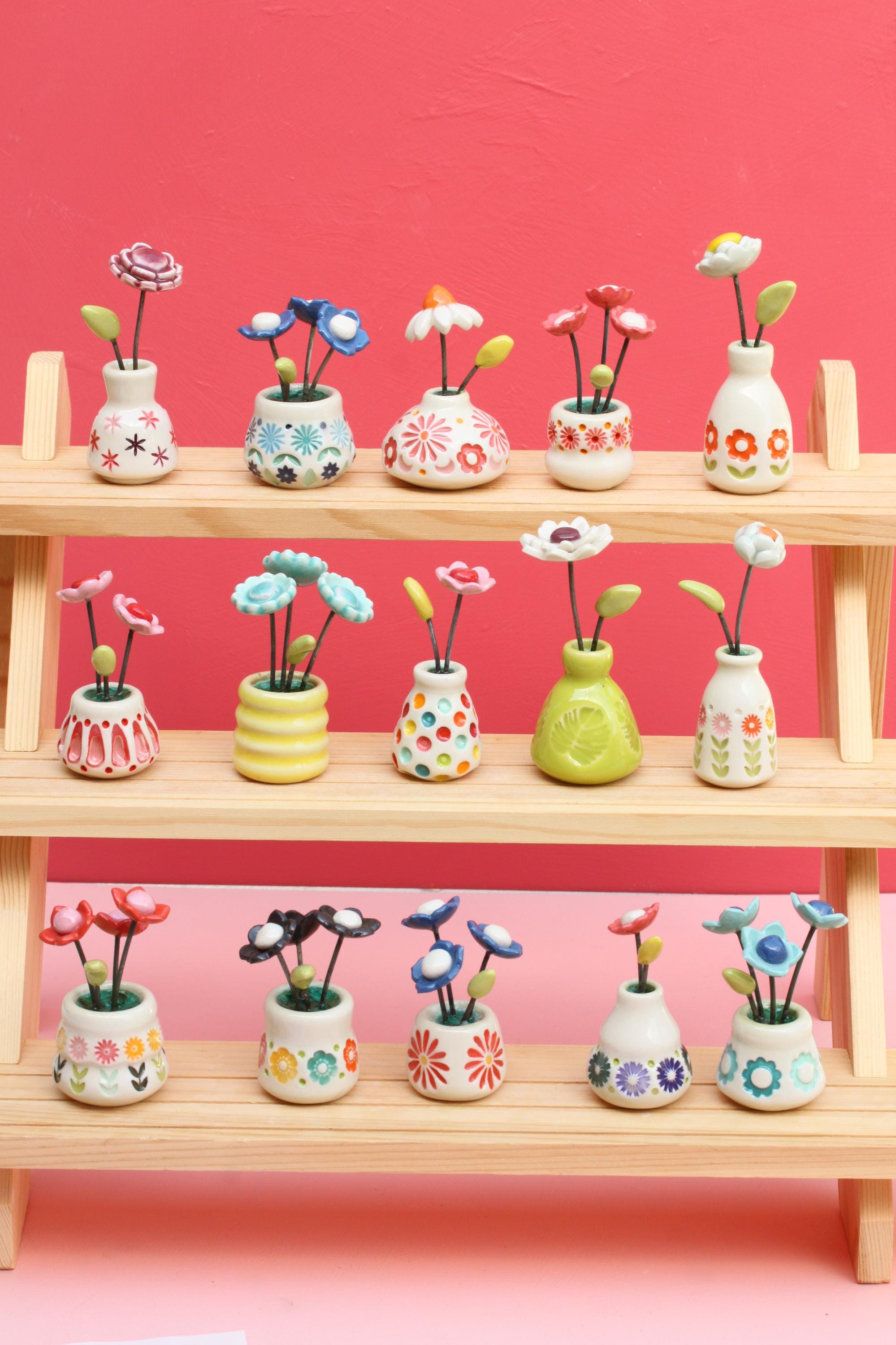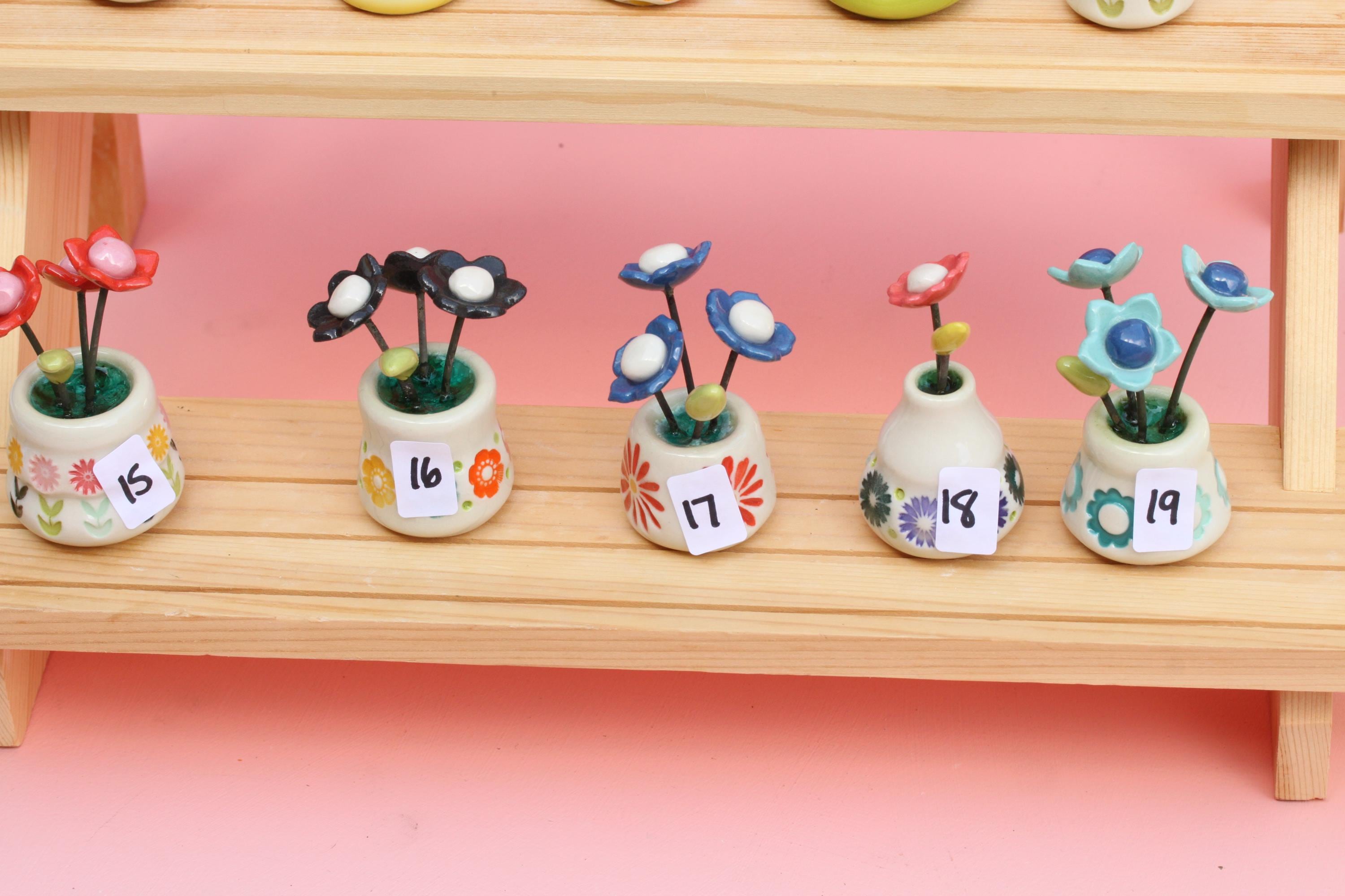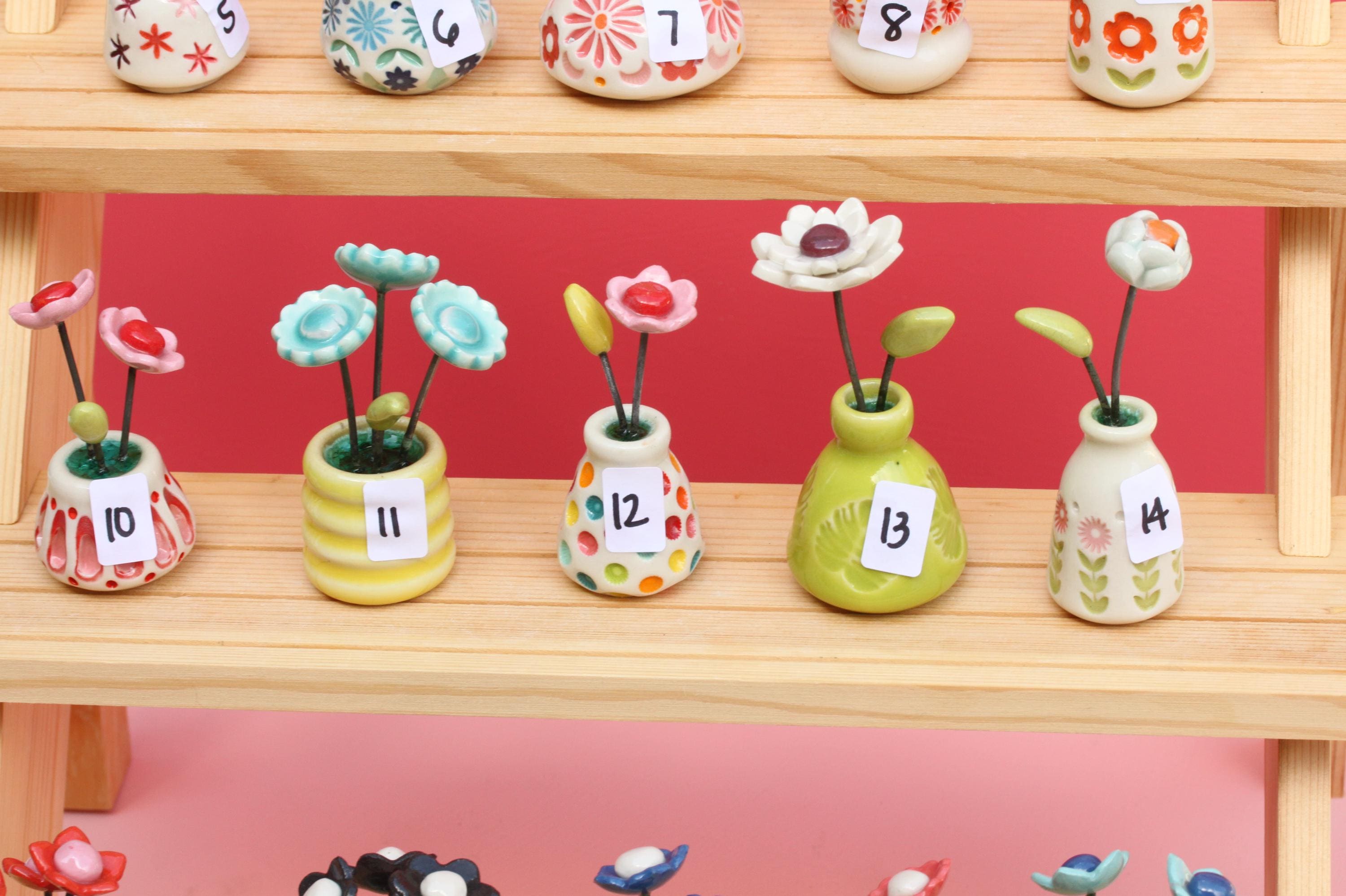 Mini pot with flowers // miniature vase with flowers // mini ceramics