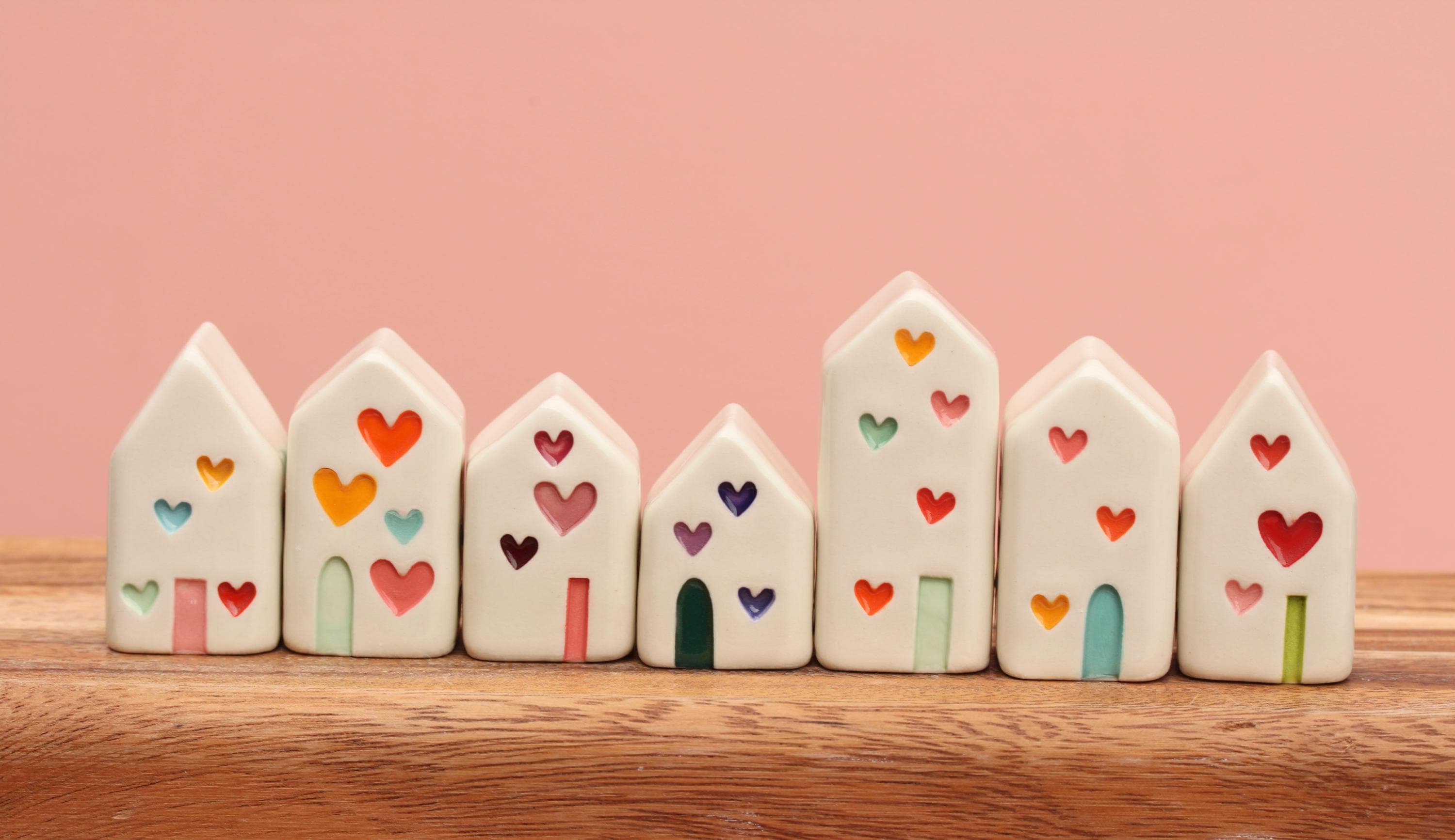 Little Heart houses// boho decor // tiny house //little clay house // small valentines house