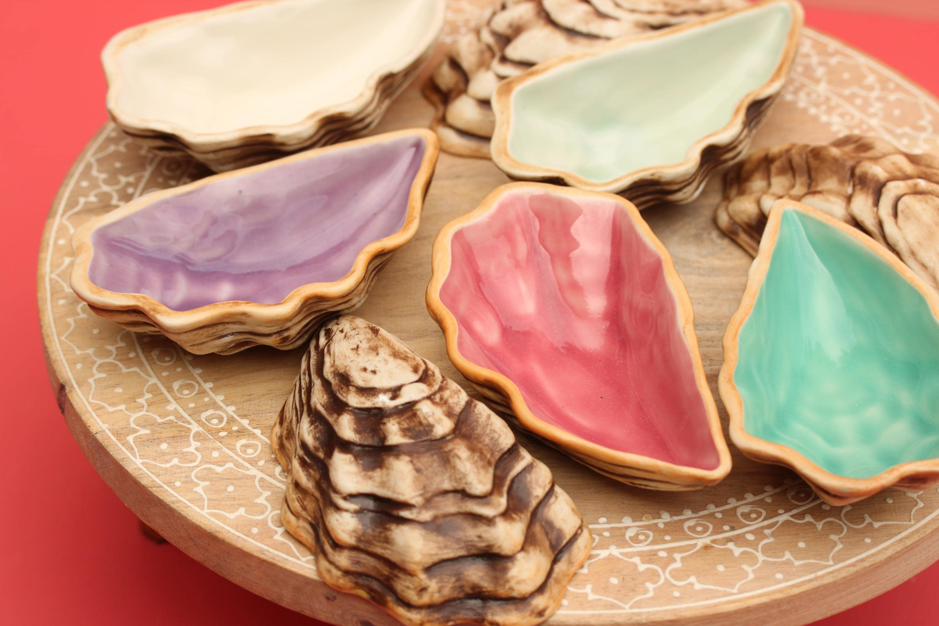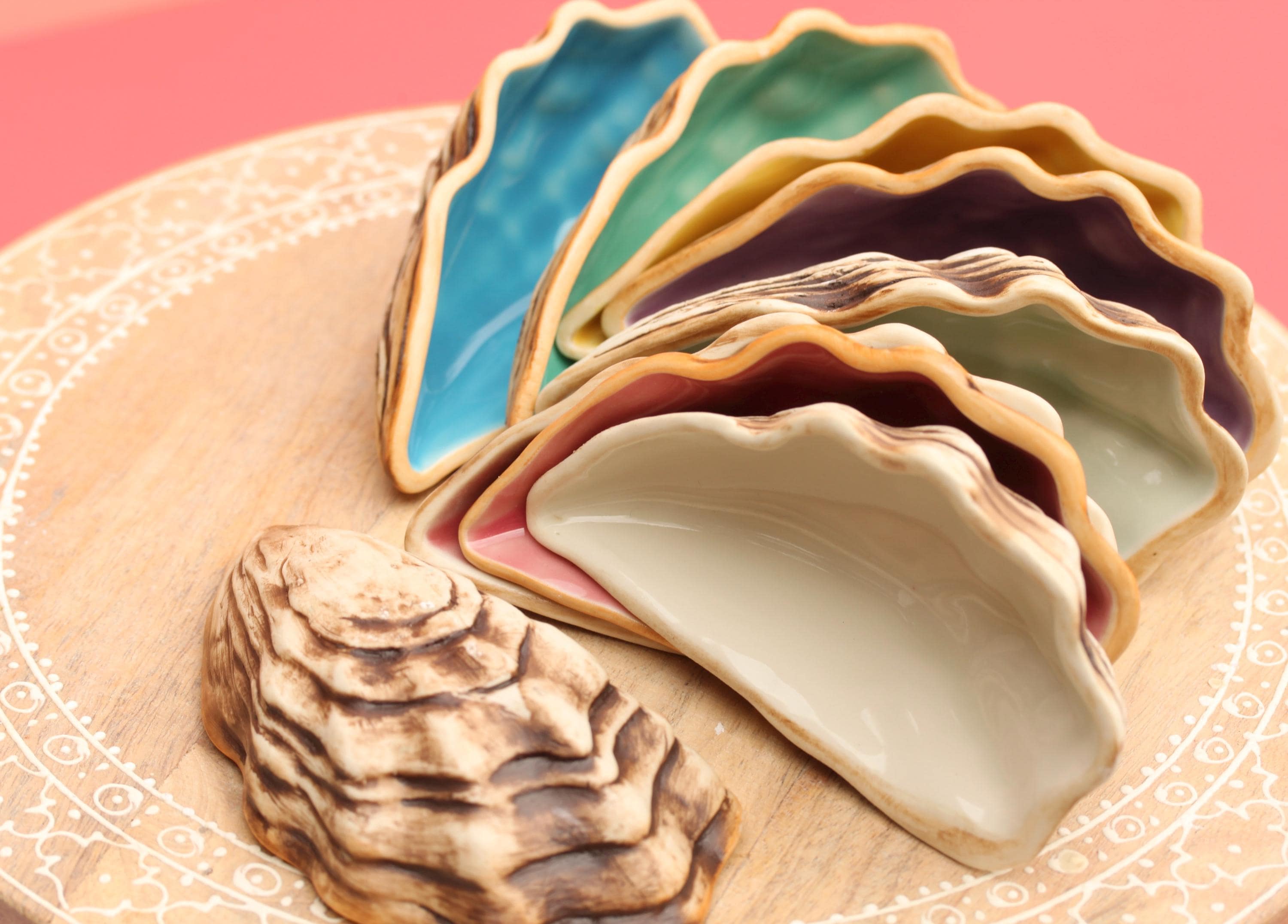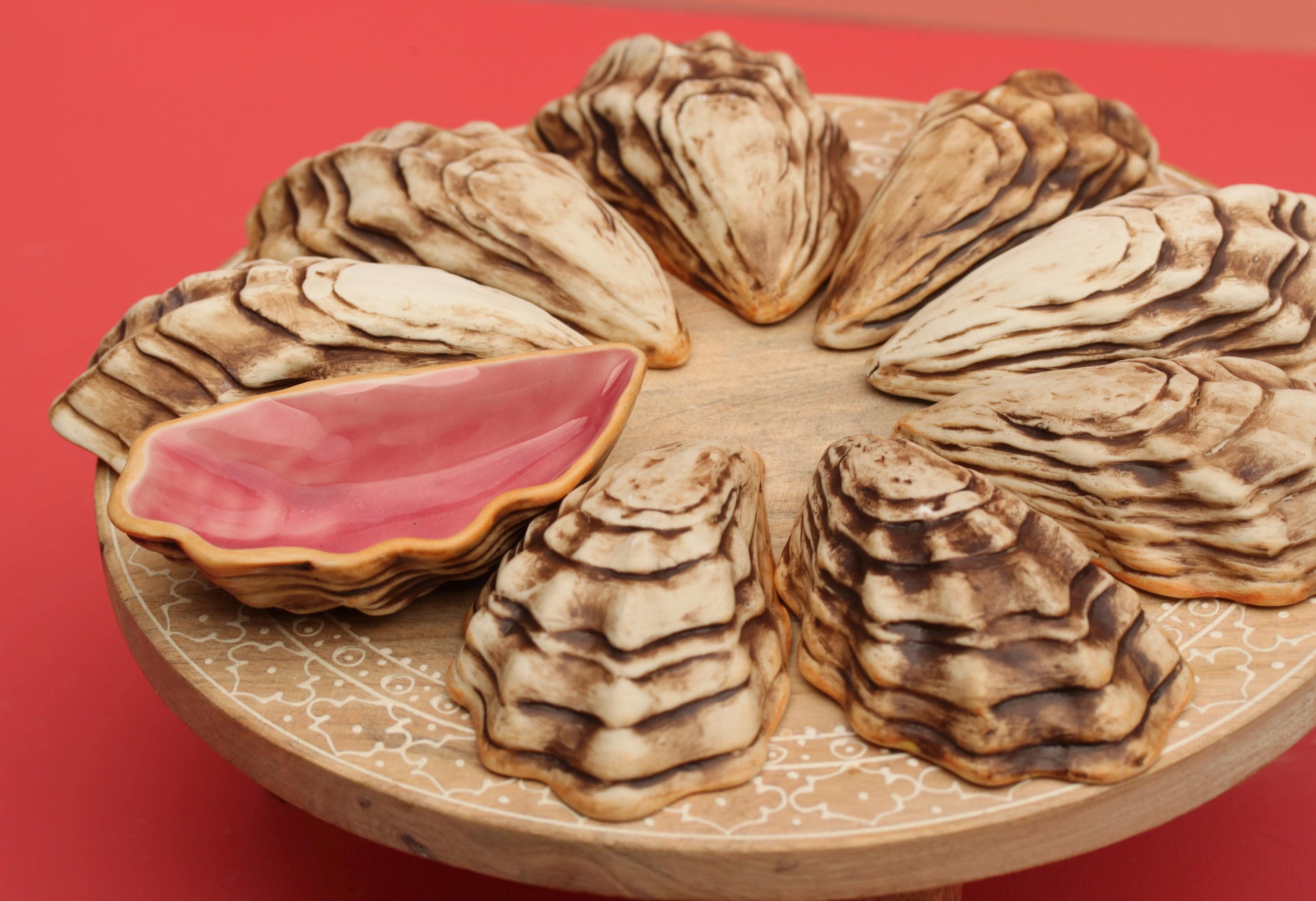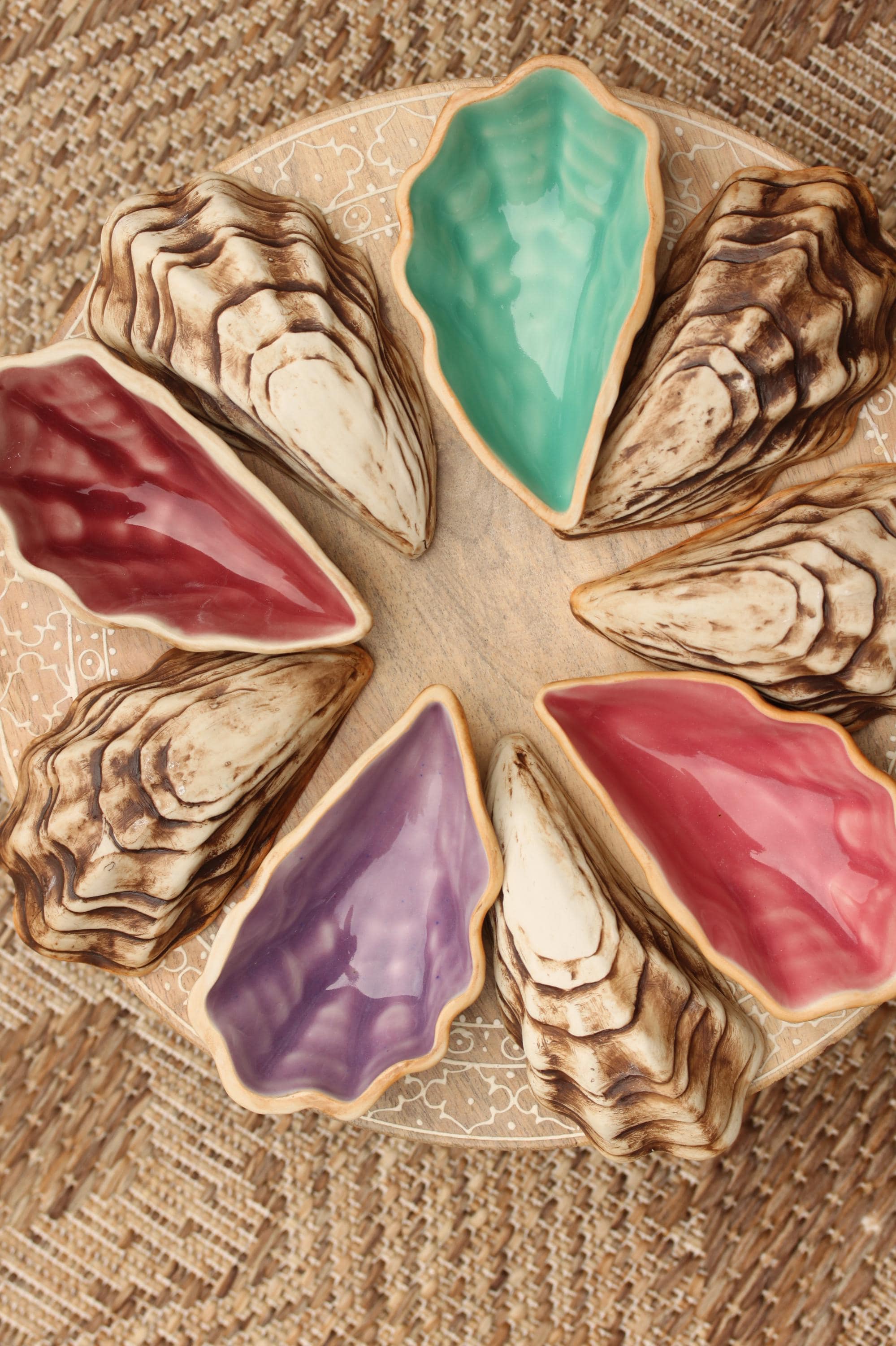 Listing is for one ceramic oyster dish, choose your favorite. Use for jewelry, salt, or an appetizer dish.