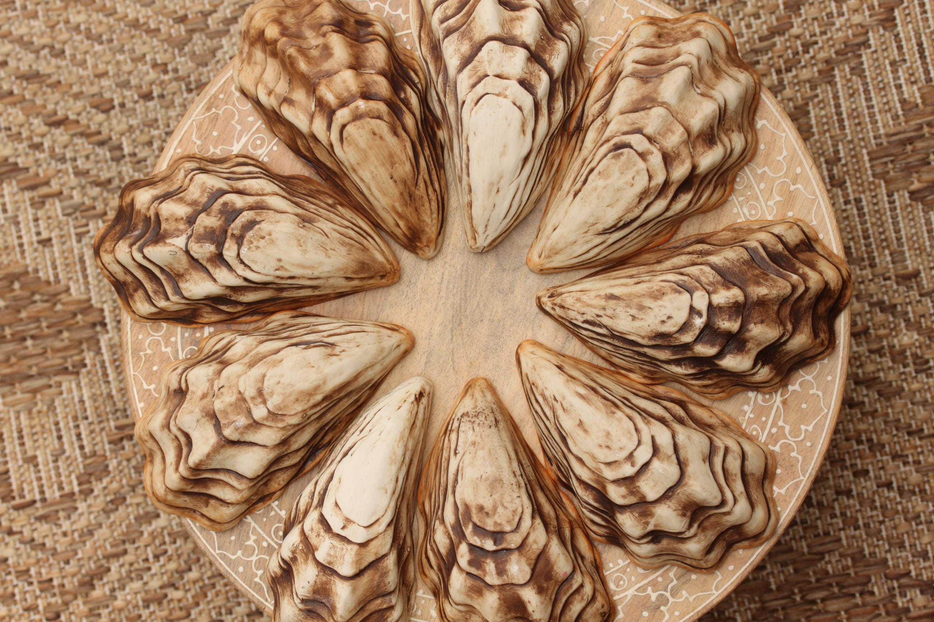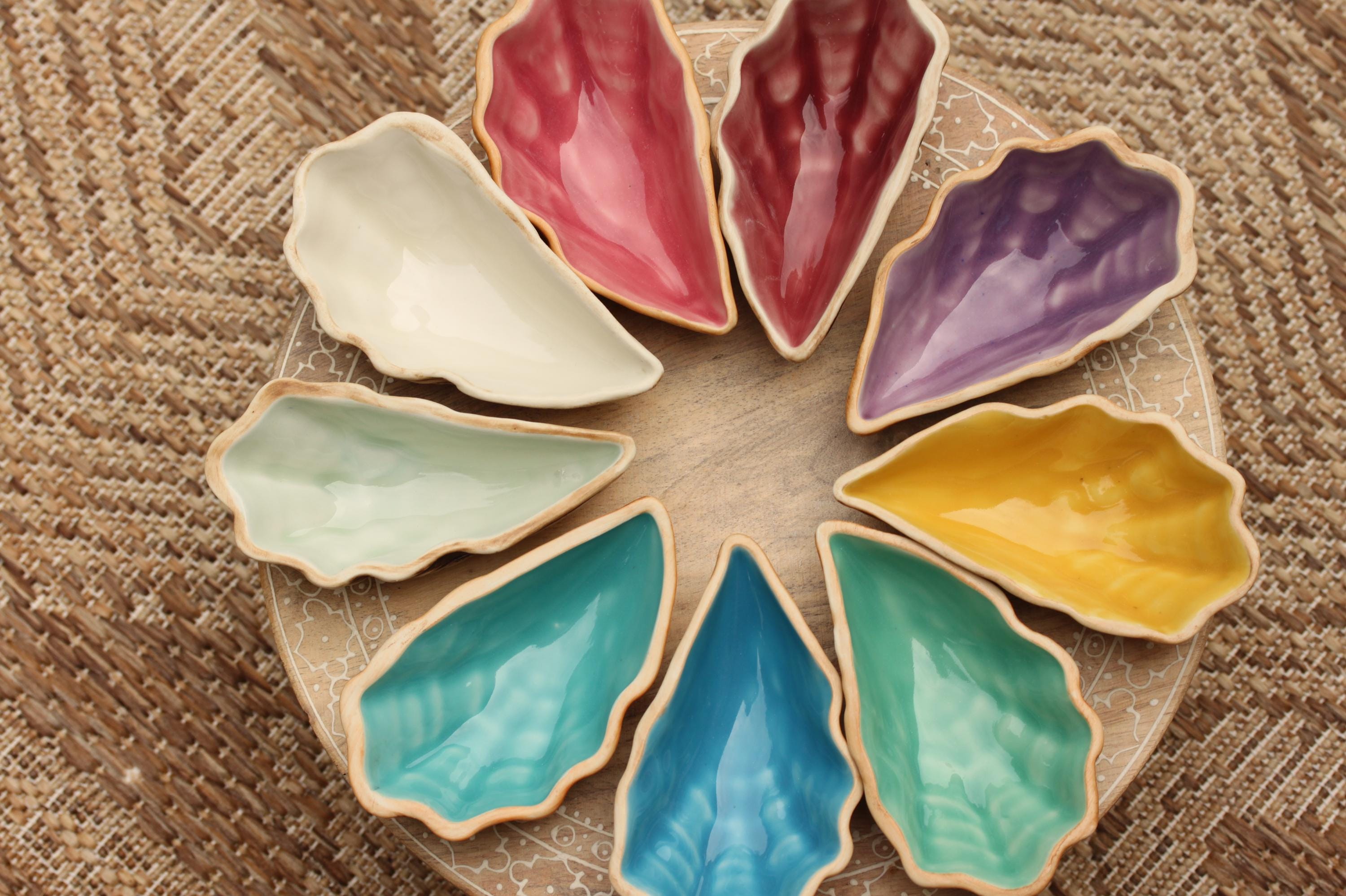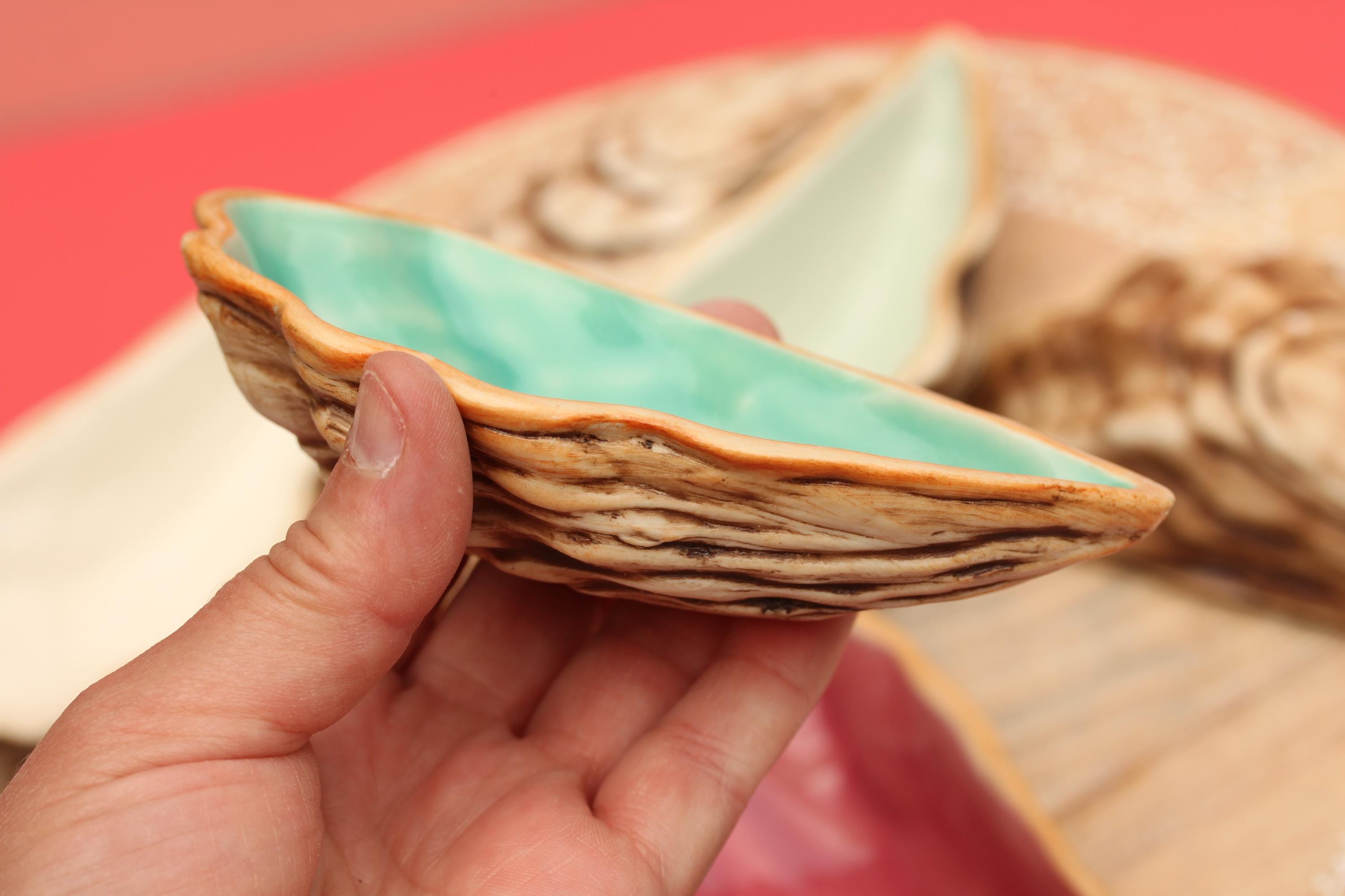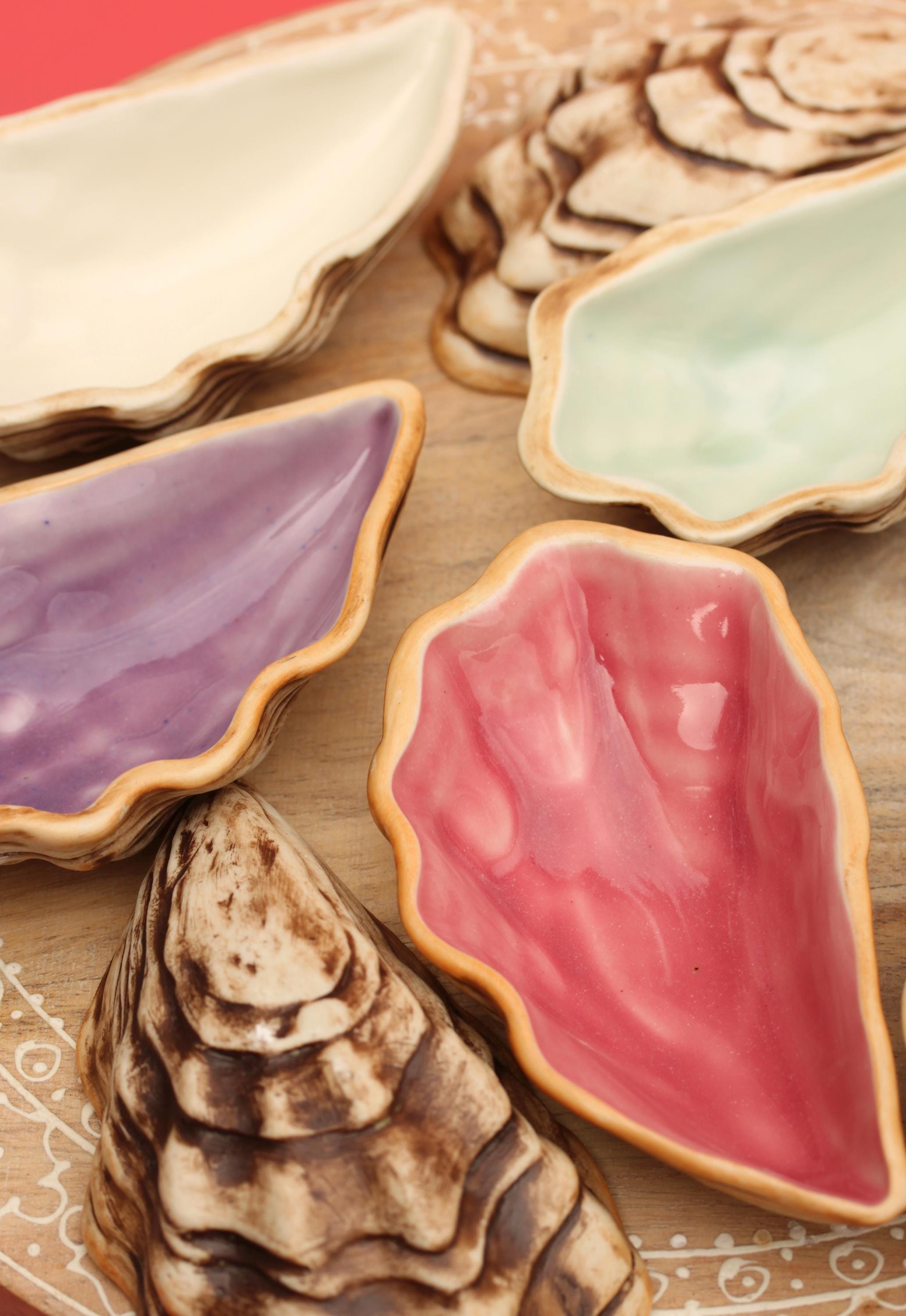 Listing is for one ceramic oyster dish, choose your favorite. Use for jewelry, salt, or an appetizer dish.