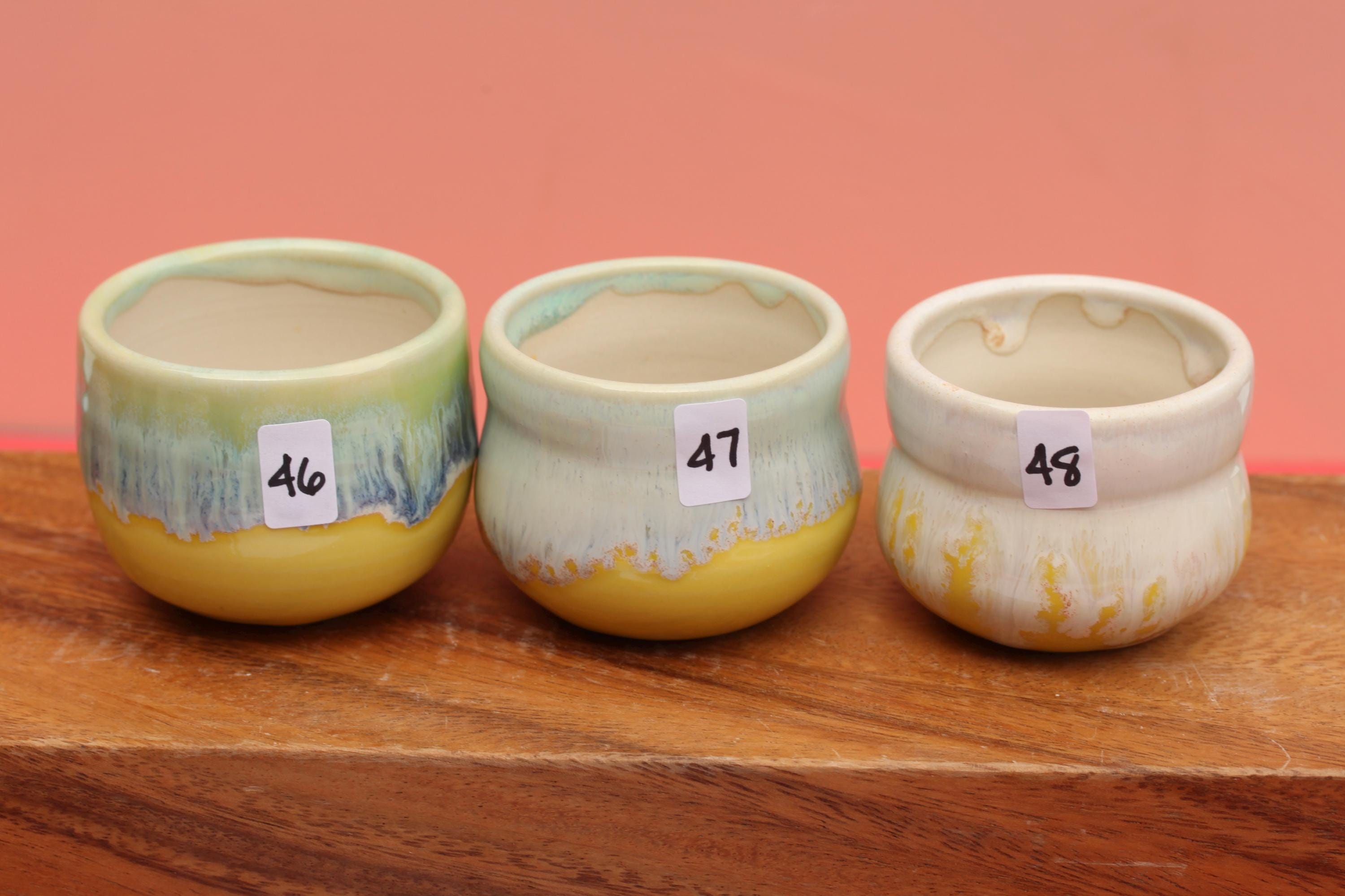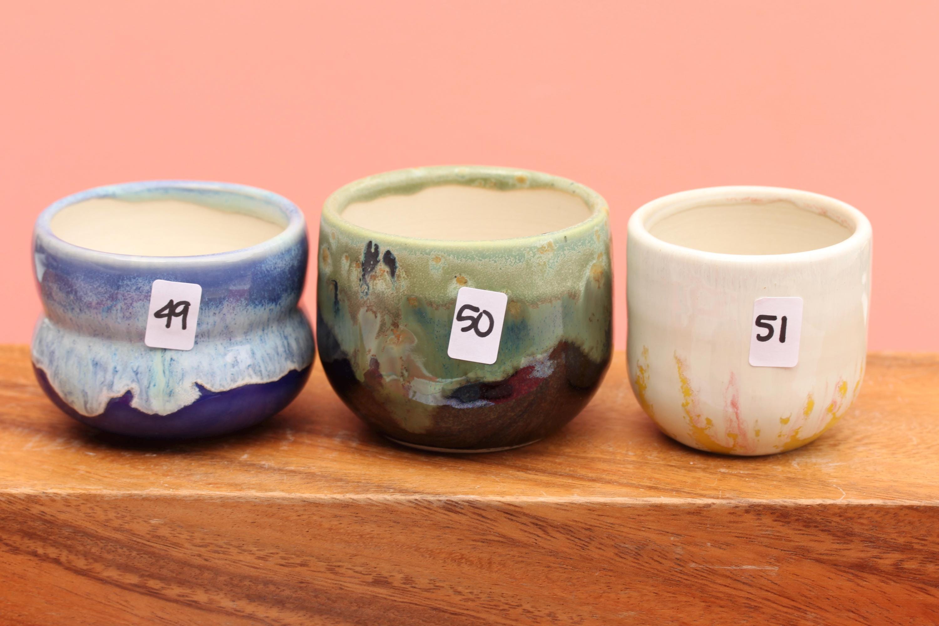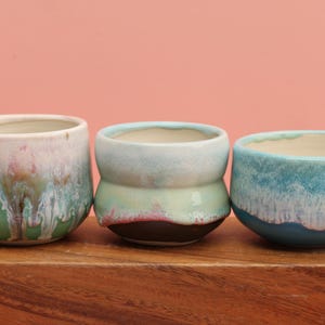 This little planter is wheel thrown from porcelain, add a succulent and you have a great gift for the person who's got everything:) Layers of reactive glaze create the vivid colors and hole have been added for drainage. This does NOT come with a saucer. It can be used indoors and outdoors and dishwasher safe. Pick your favorite from the drop-down menu, the listing is for one planter.