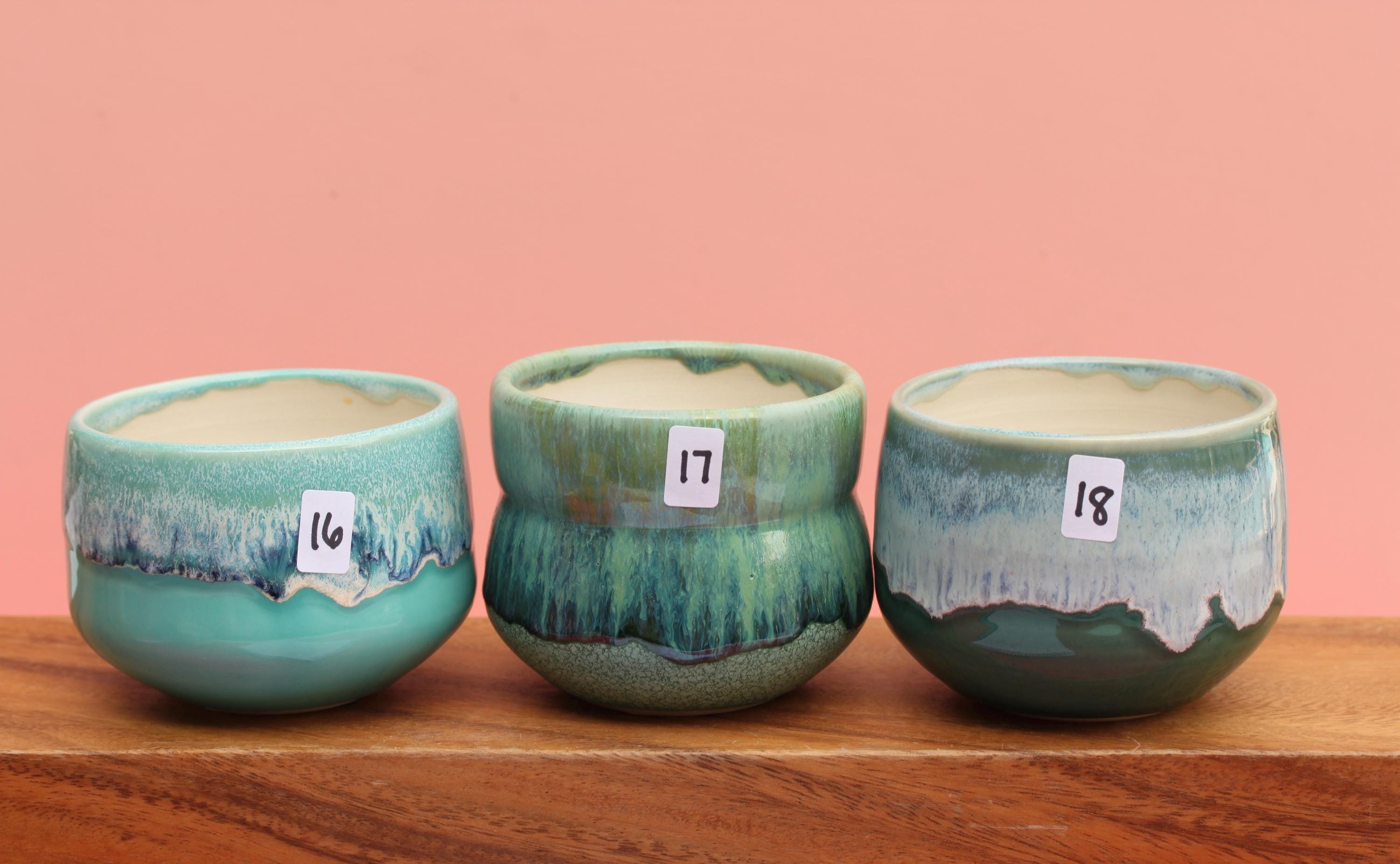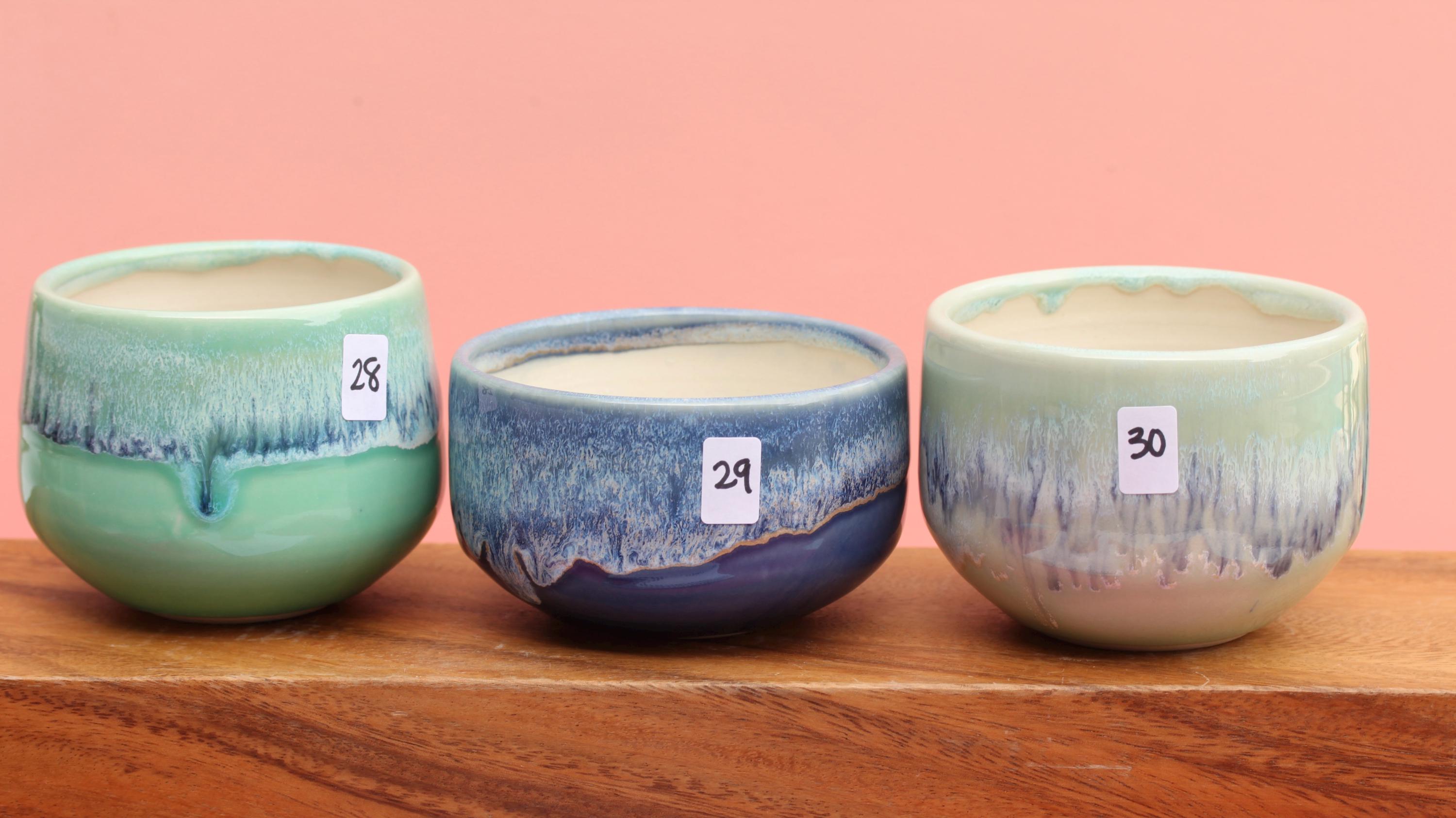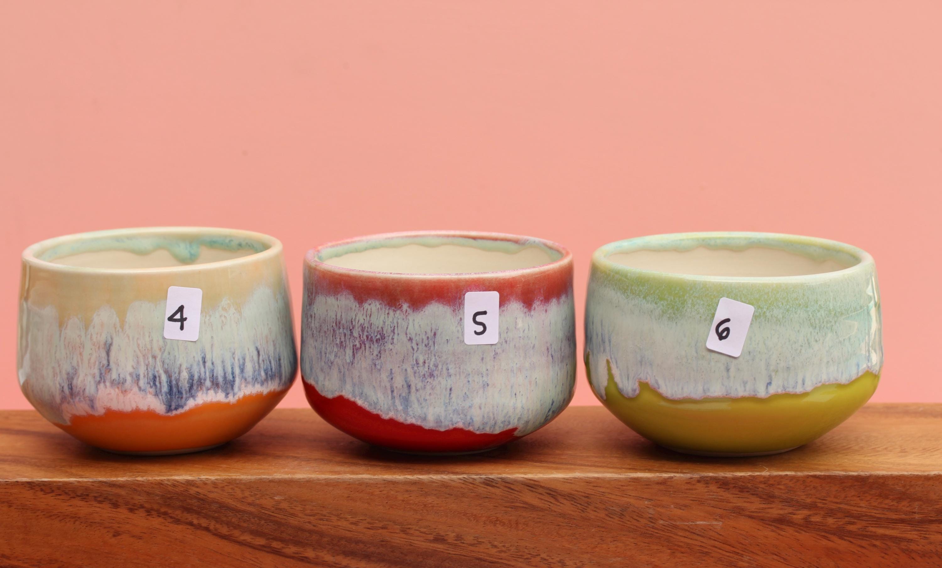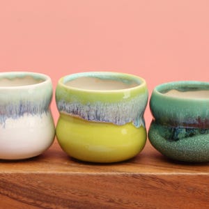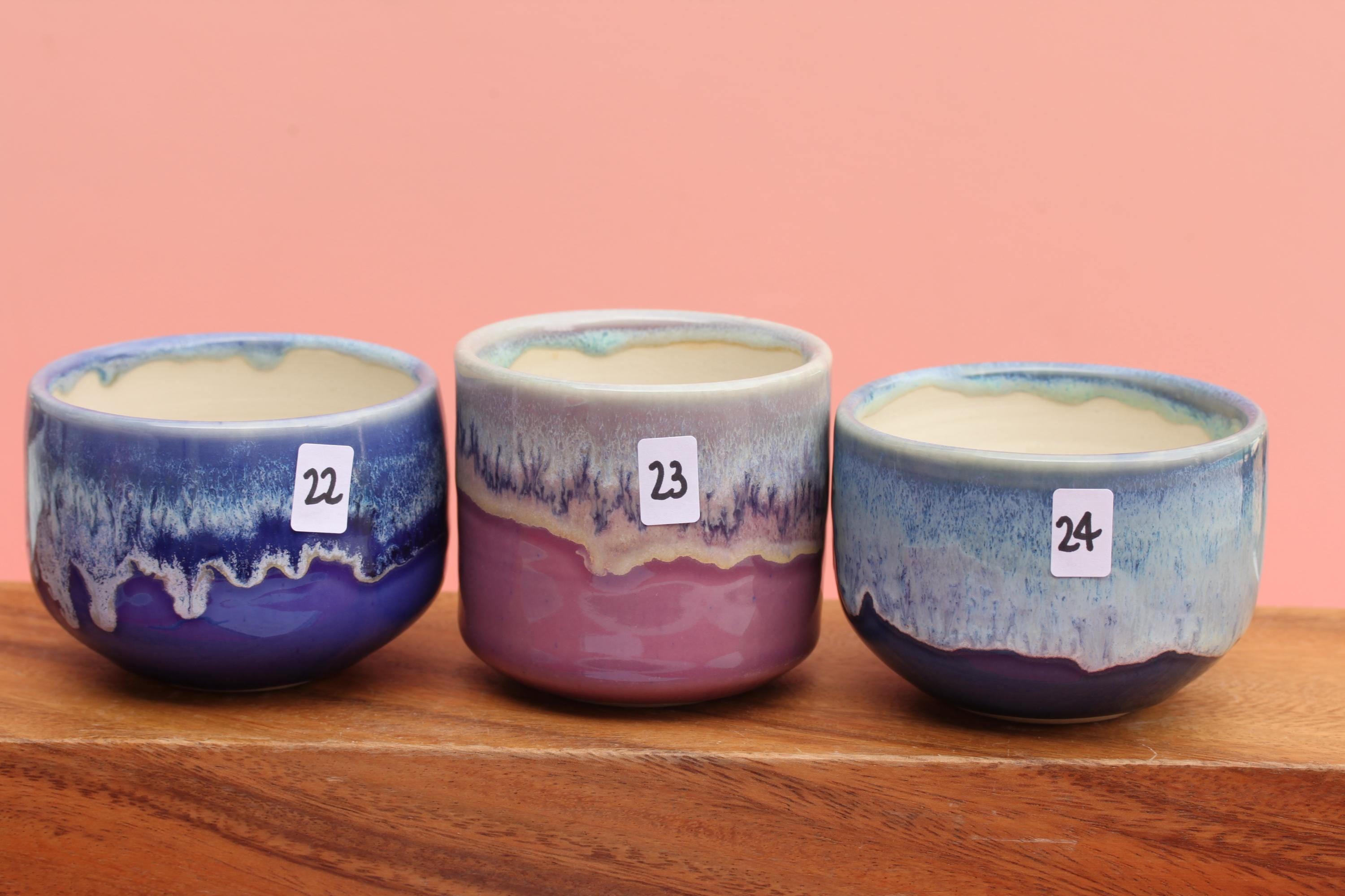 This little planter is wheel thrown from porcelain, add a succulent and you have a great gift for the person who's got everything:) Layers of reactive glaze create the vivid colors and hole have been added for drainage. This does NOT come with a saucer. It can be used indoors and outdoors and dishwasher safe. Pick your favorite from the drop-down menu, the listing is for one planter.