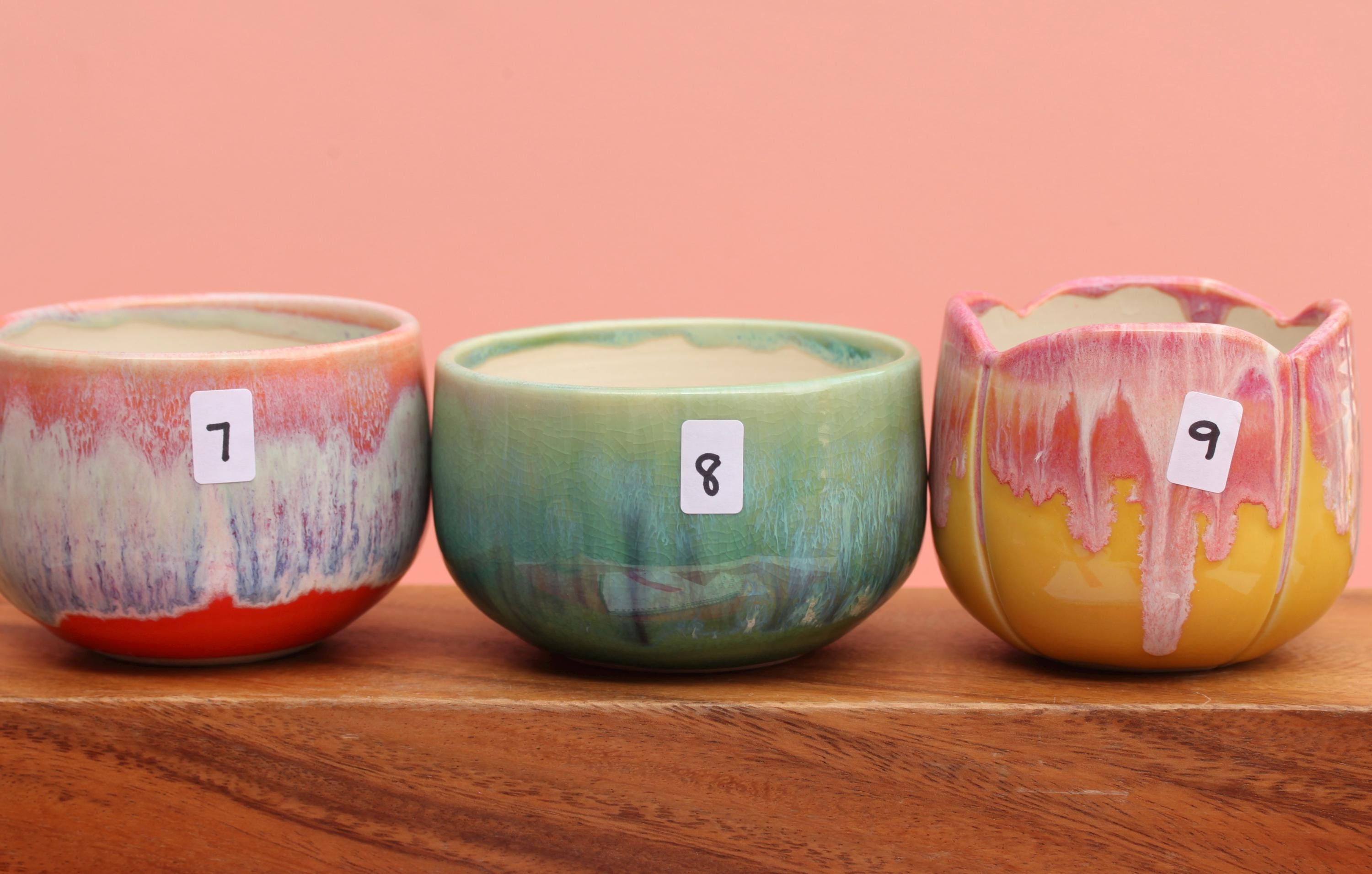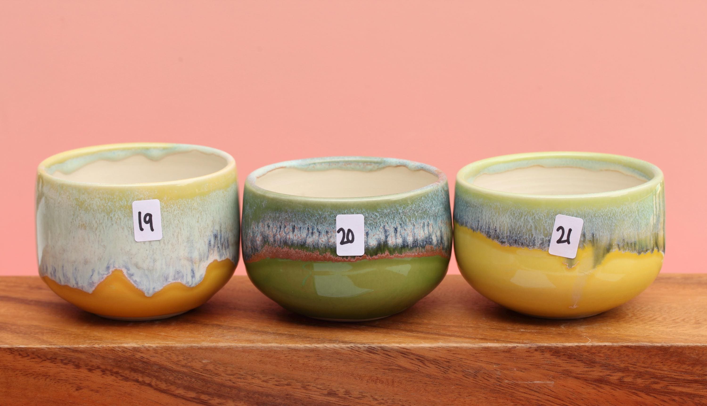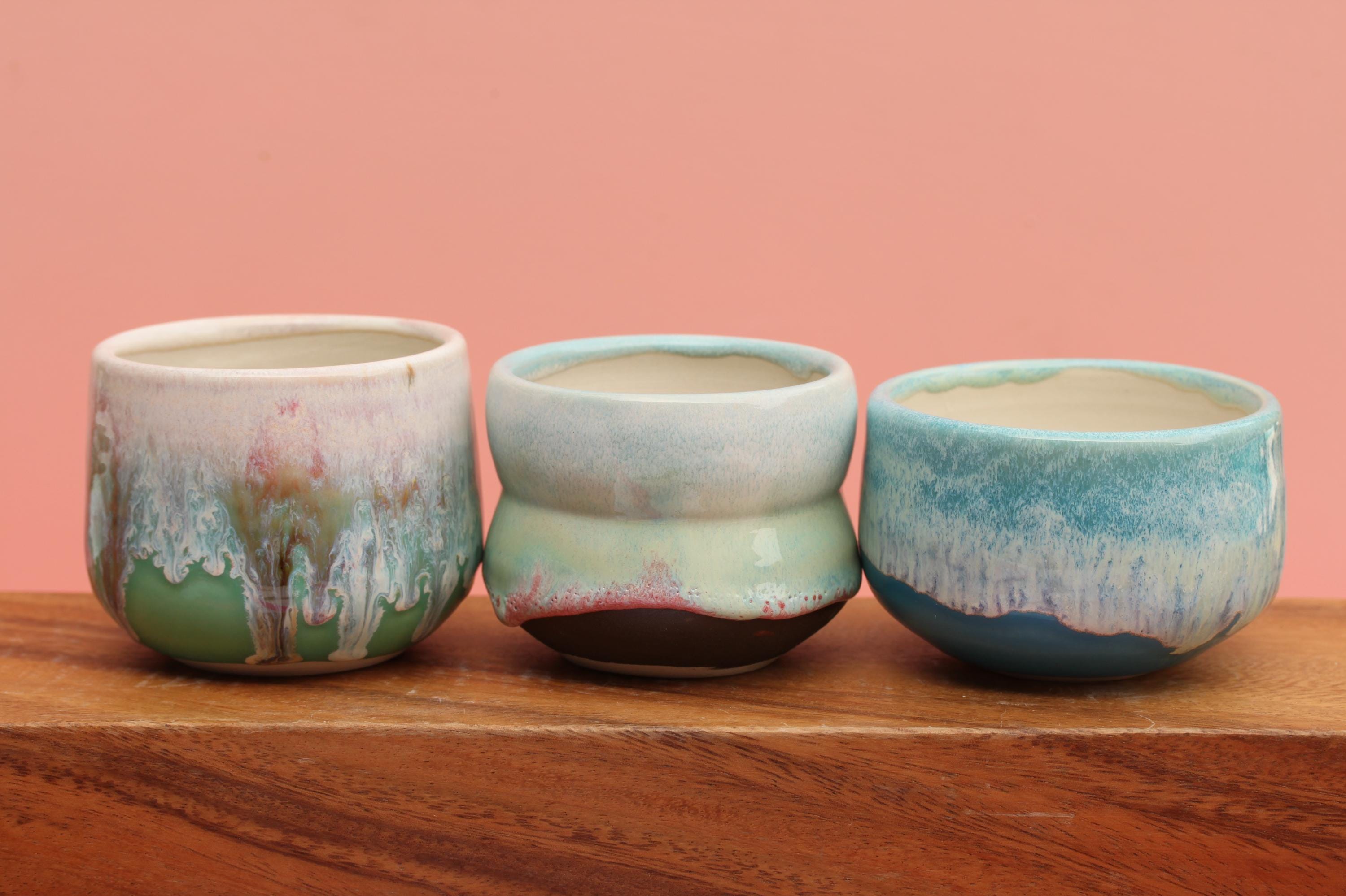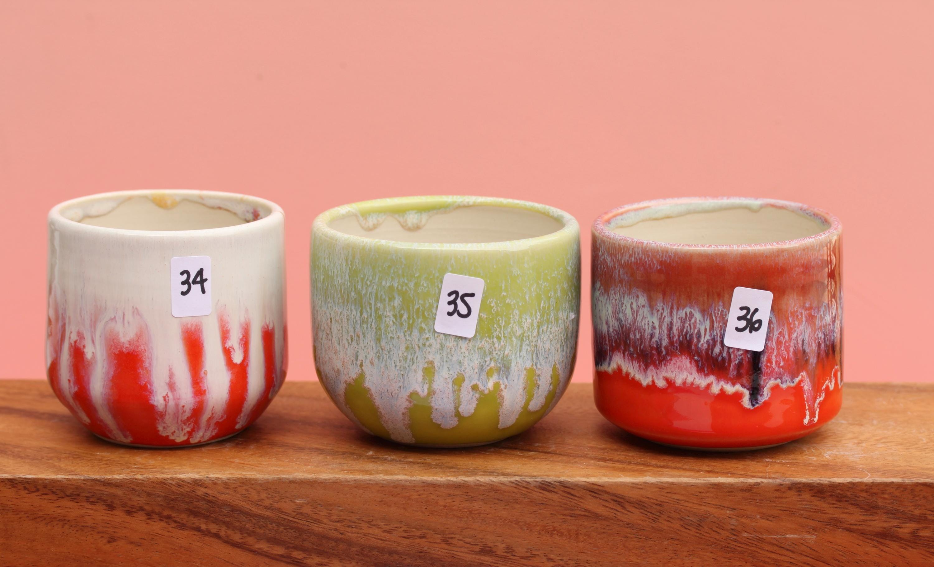 This little planter is wheel thrown from porcelain, add a succulent and you have a great gift for the person who's got everything:) Layers of reactive glaze create the vivid colors and hole have been added for drainage. This does NOT come with a saucer. It can be used indoors and outdoors and dishwasher safe. Pick your favorite from the drop-down menu, the listing is for one planter.