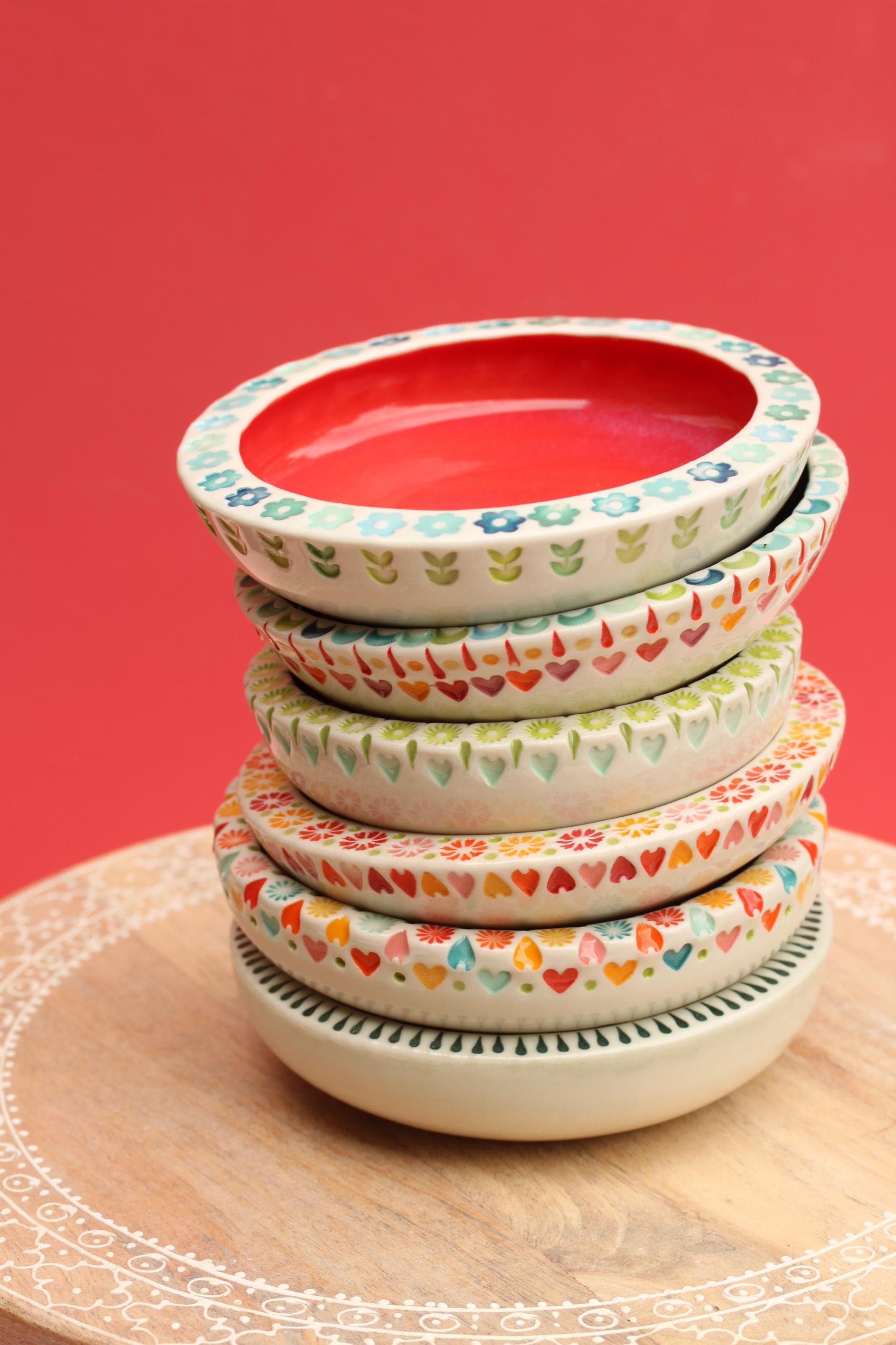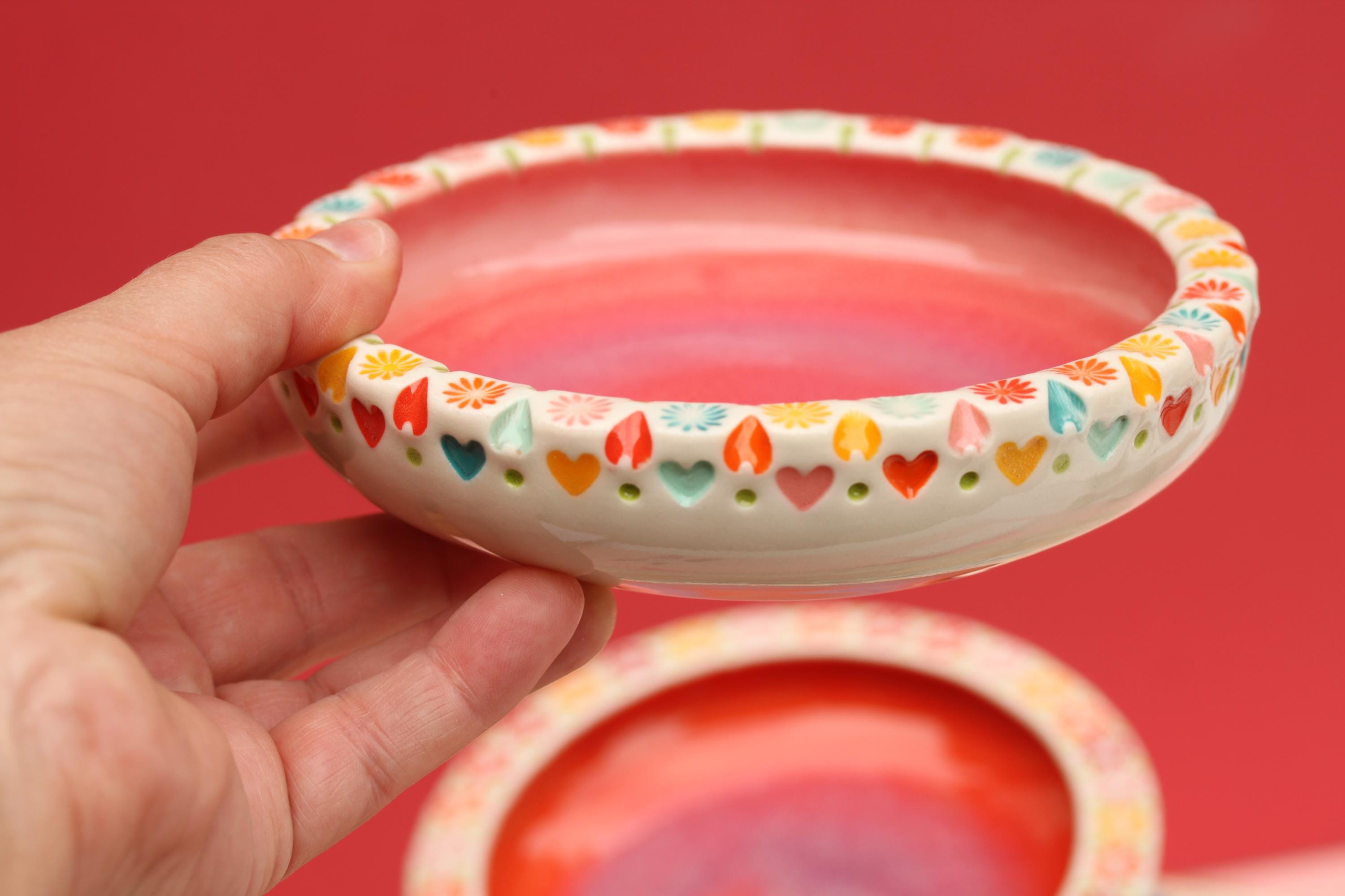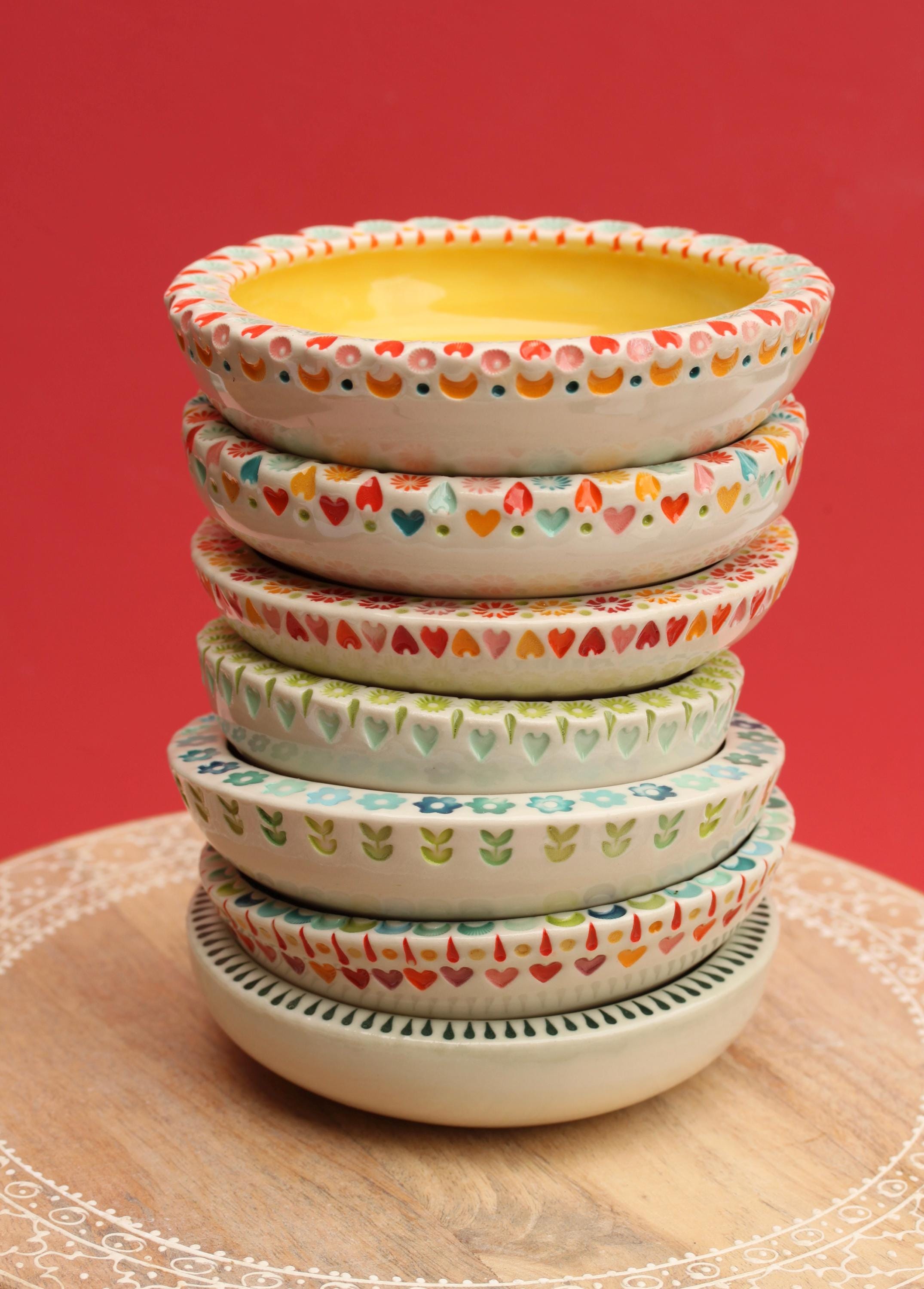 colorful stamped dish // ceramic dish // coastal decor // colorful pottery