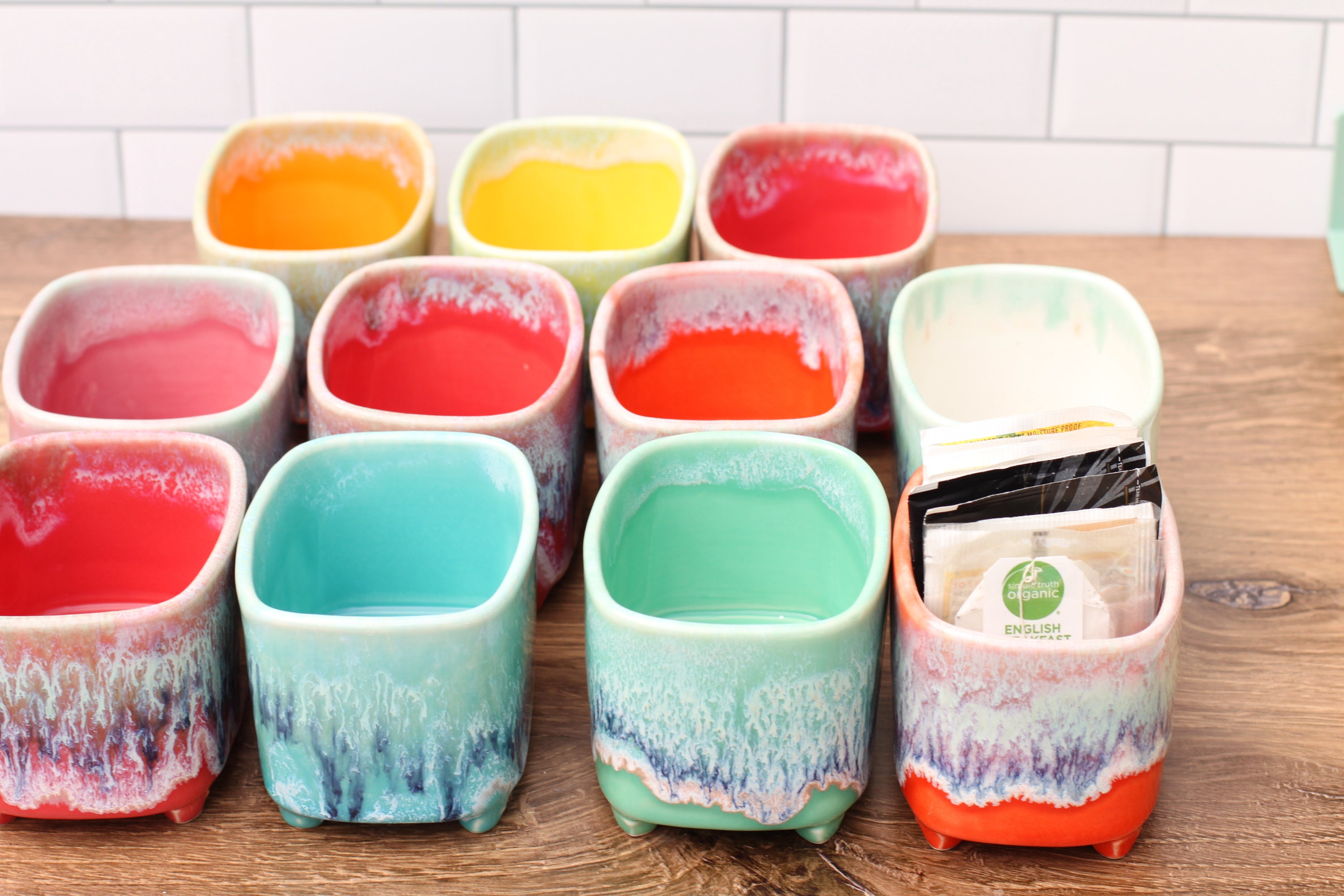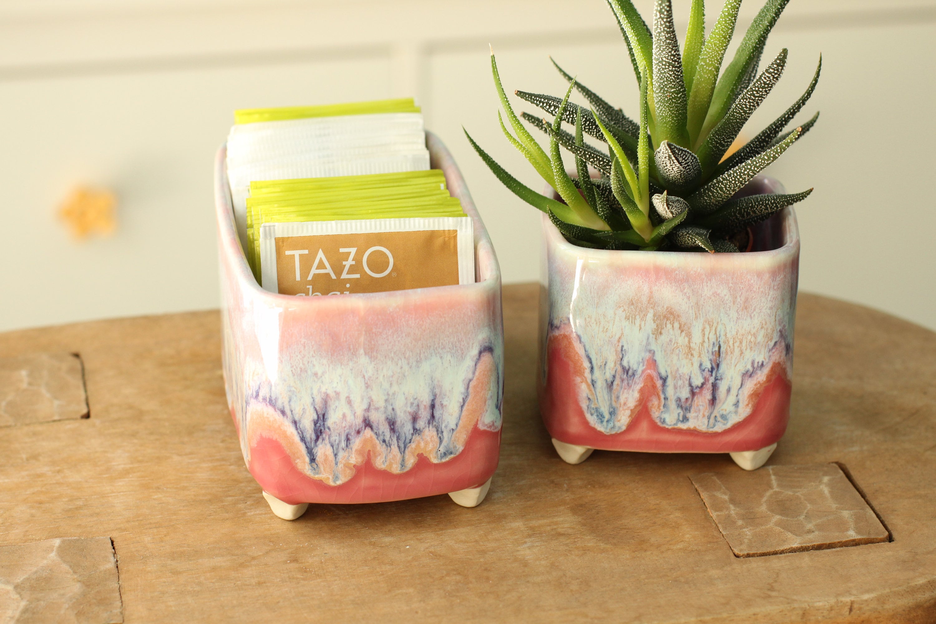 handmade footed container// tea storage // colorful succulent planter // mothers day tea gift
