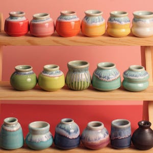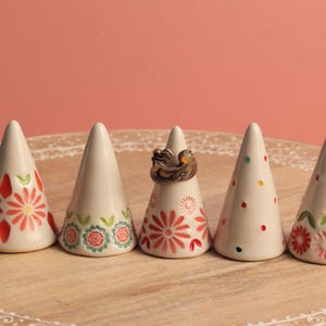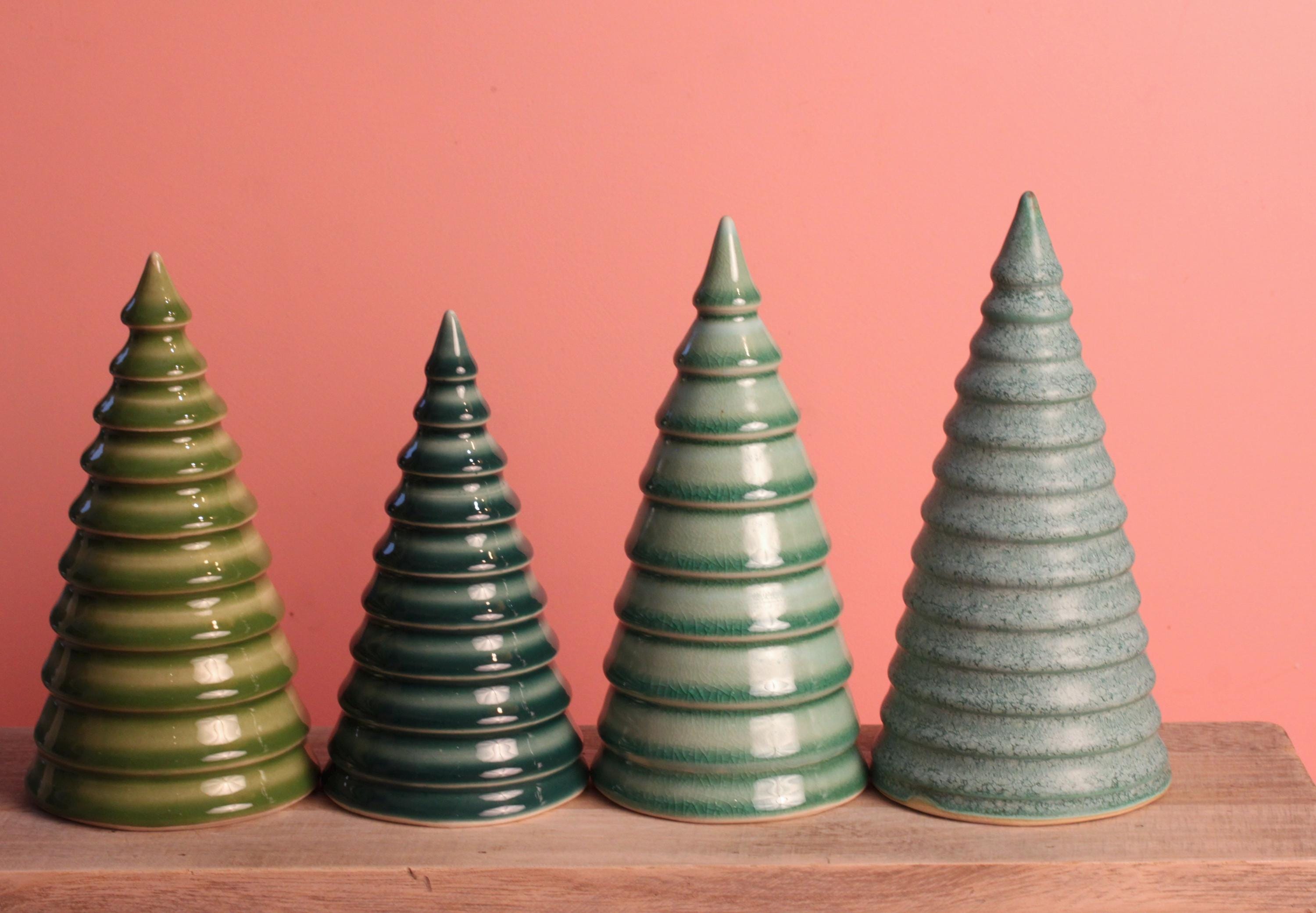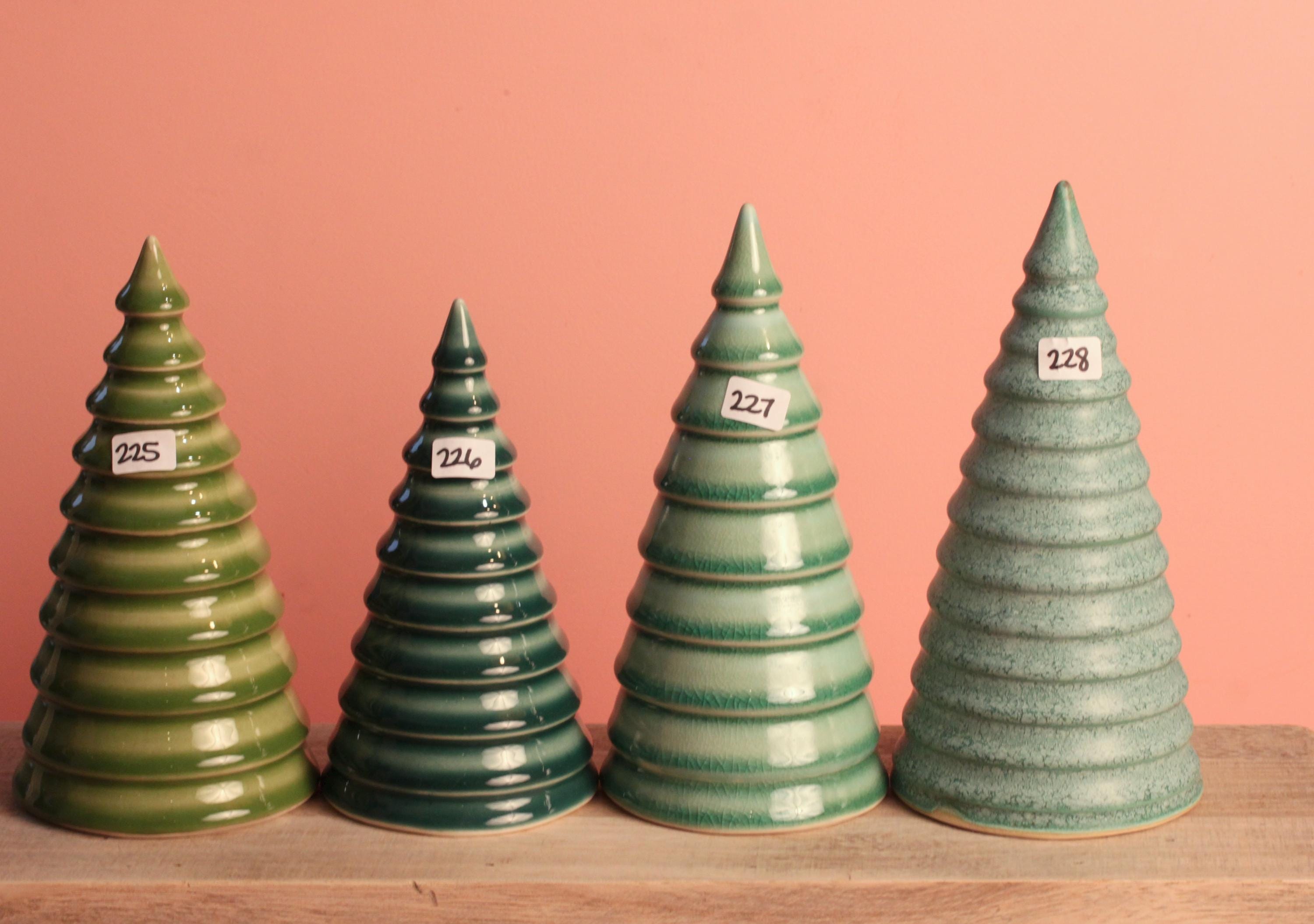 A handmade tree to make the holidays a little more colorful. Made from stoneware or porcelain on a pottery wheel then carefully glazed with colorful glazes. These are hollow with an open bottom.