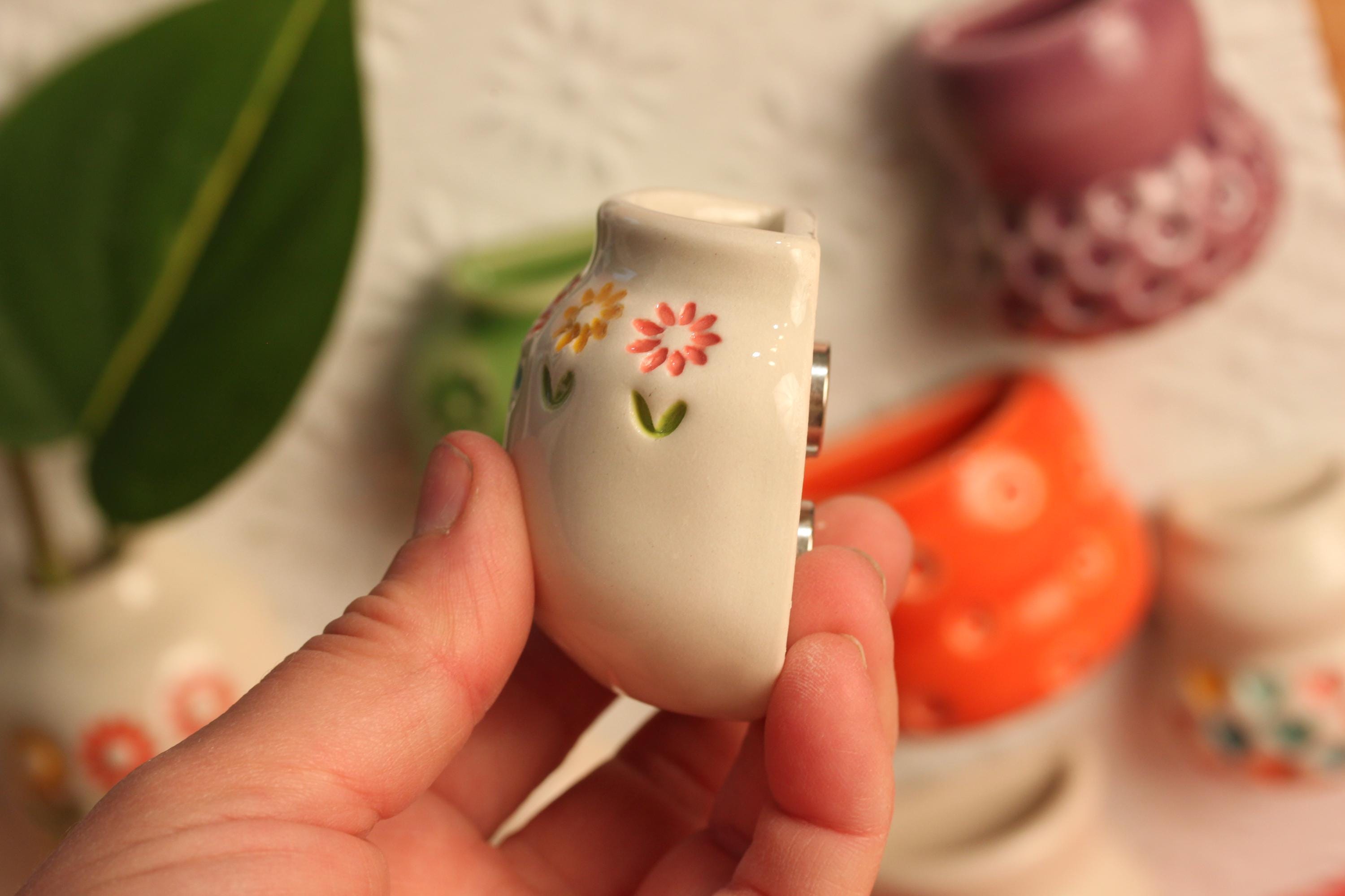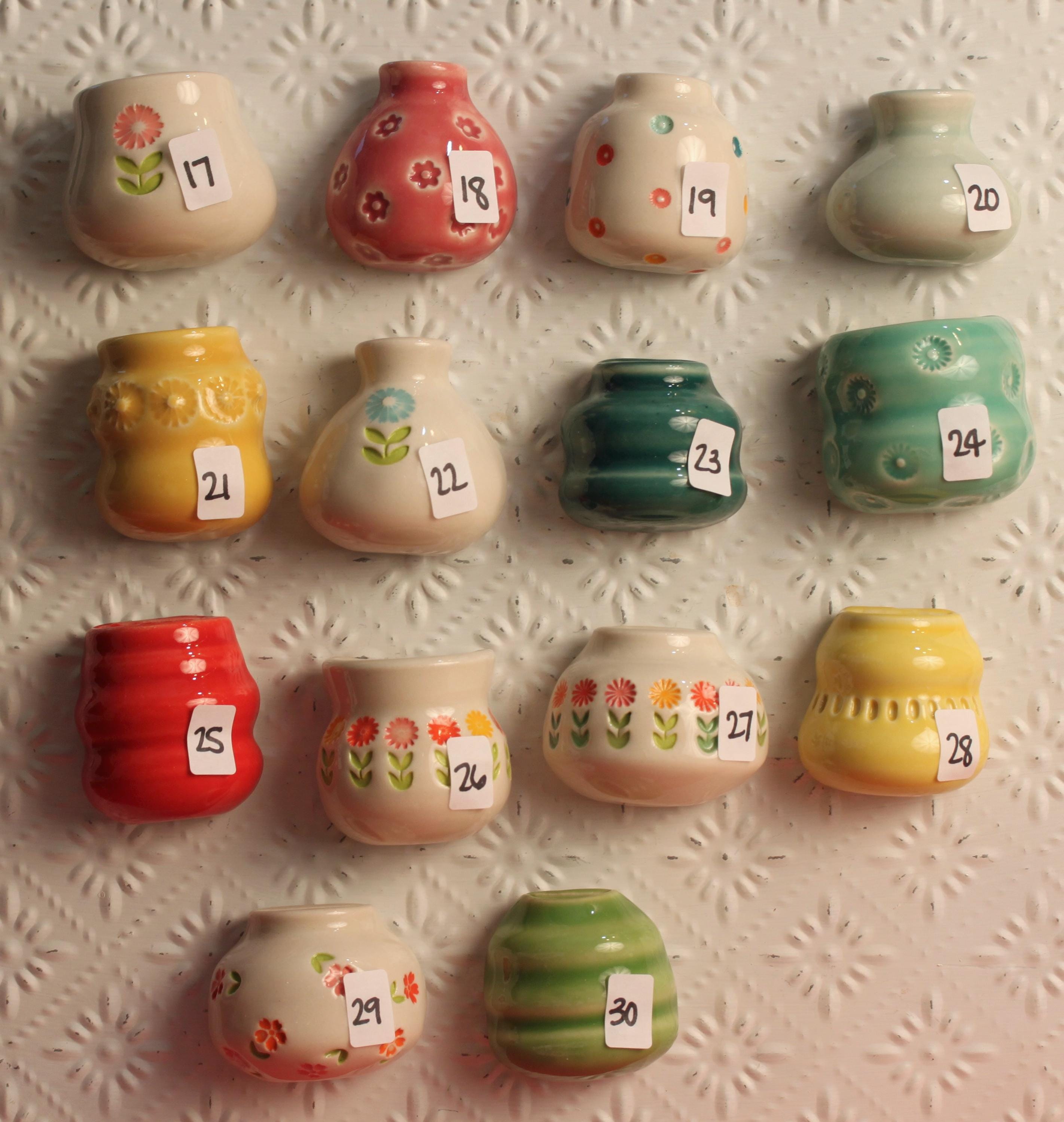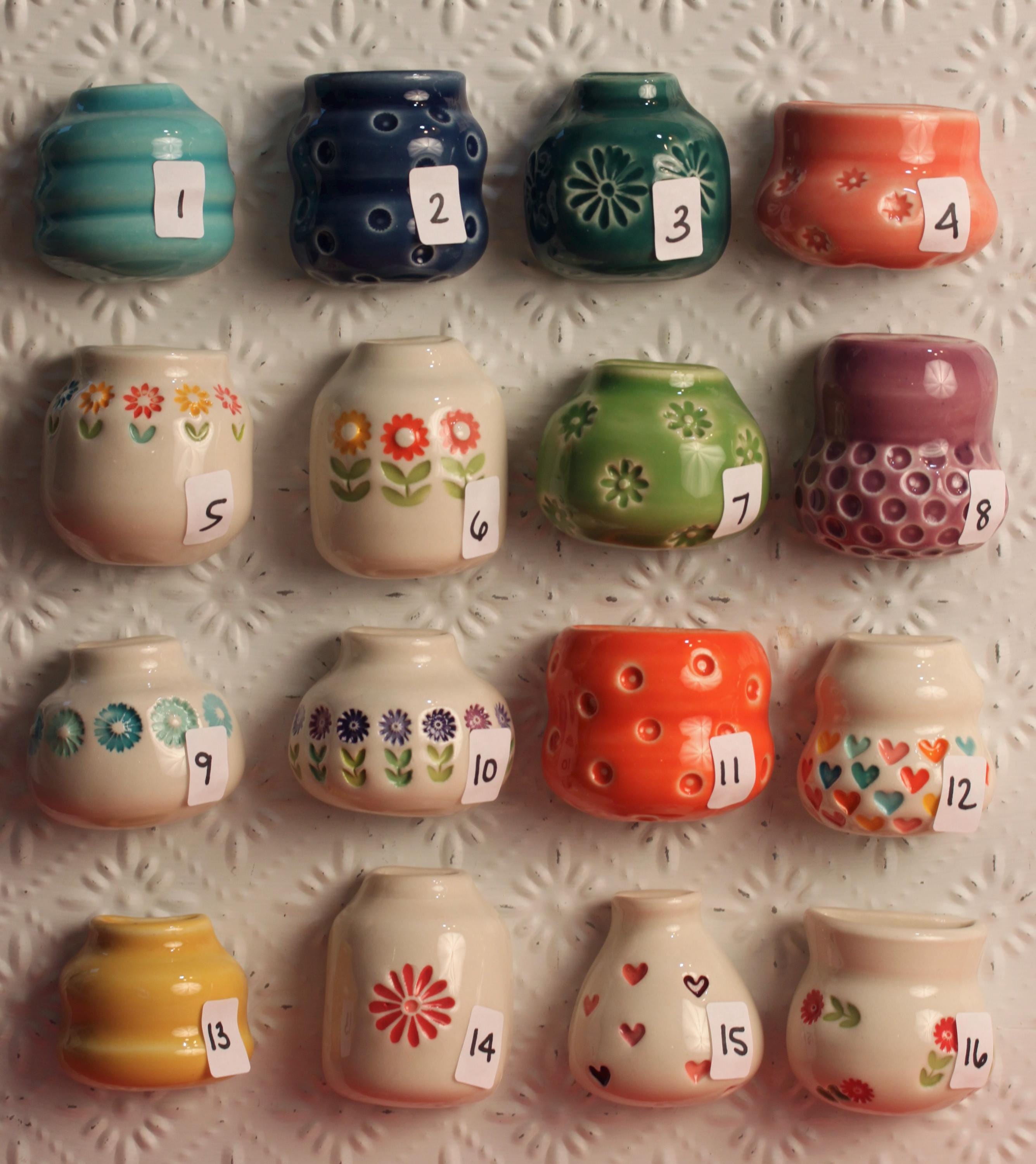 The vase is wheel thrown and slab built from porcelain and has combinations of glazing techniques. These aren't going anywhere, we've attached 2 SUPER strong magnets to the back.