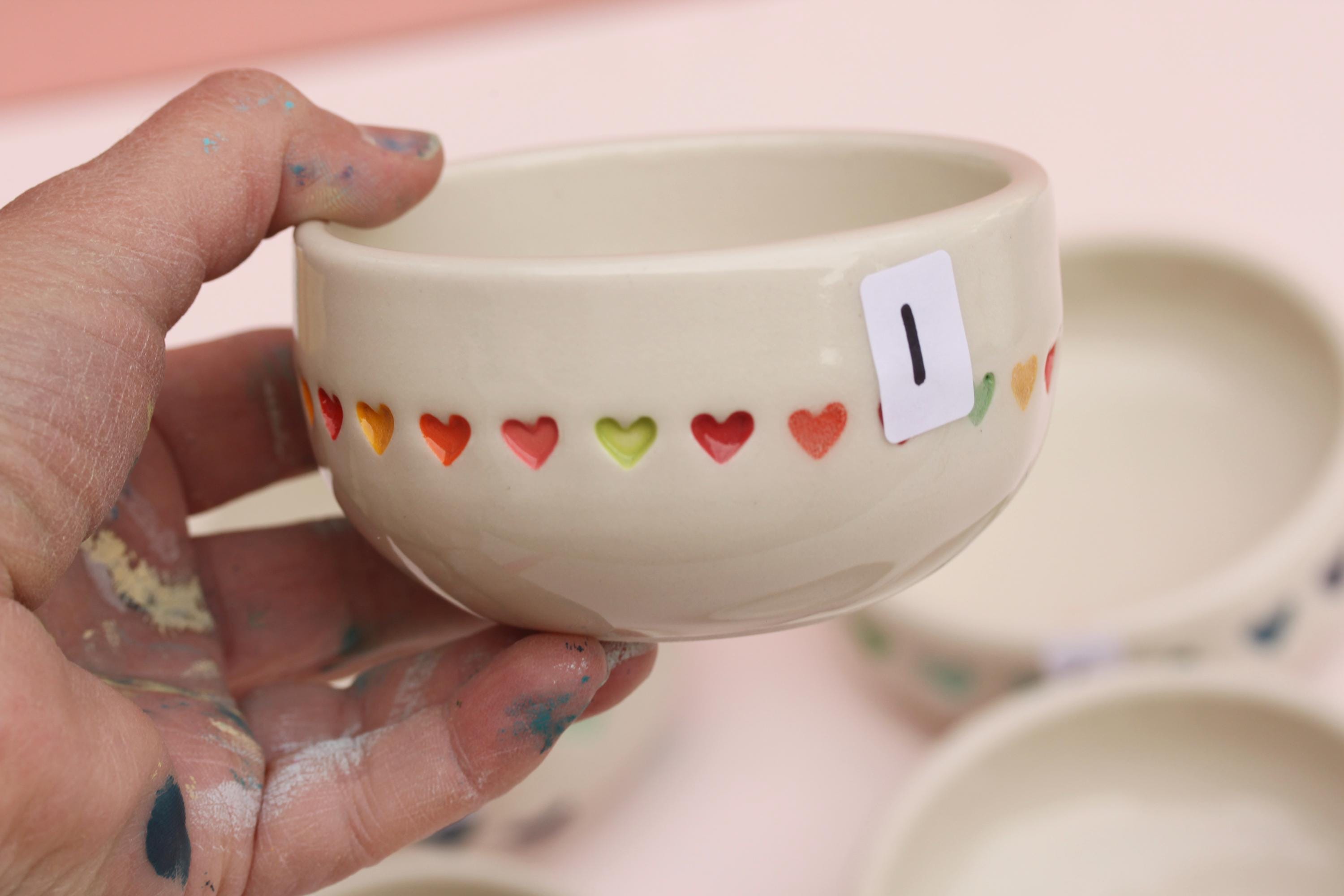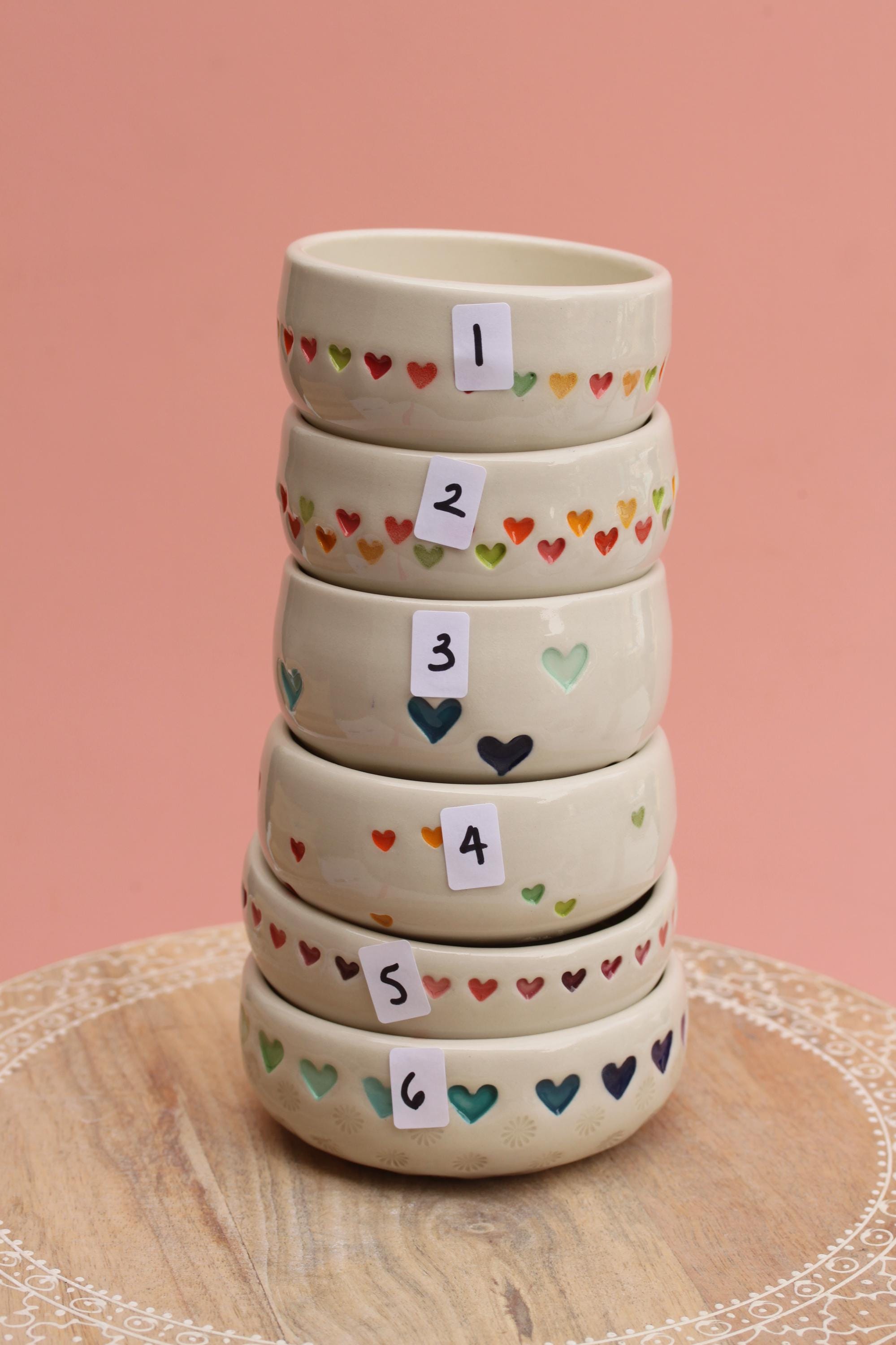 Made from white porcelain this bowl was wheel thrown, stamped, and carefully under glazed and finished in a glossy Clear glaze.