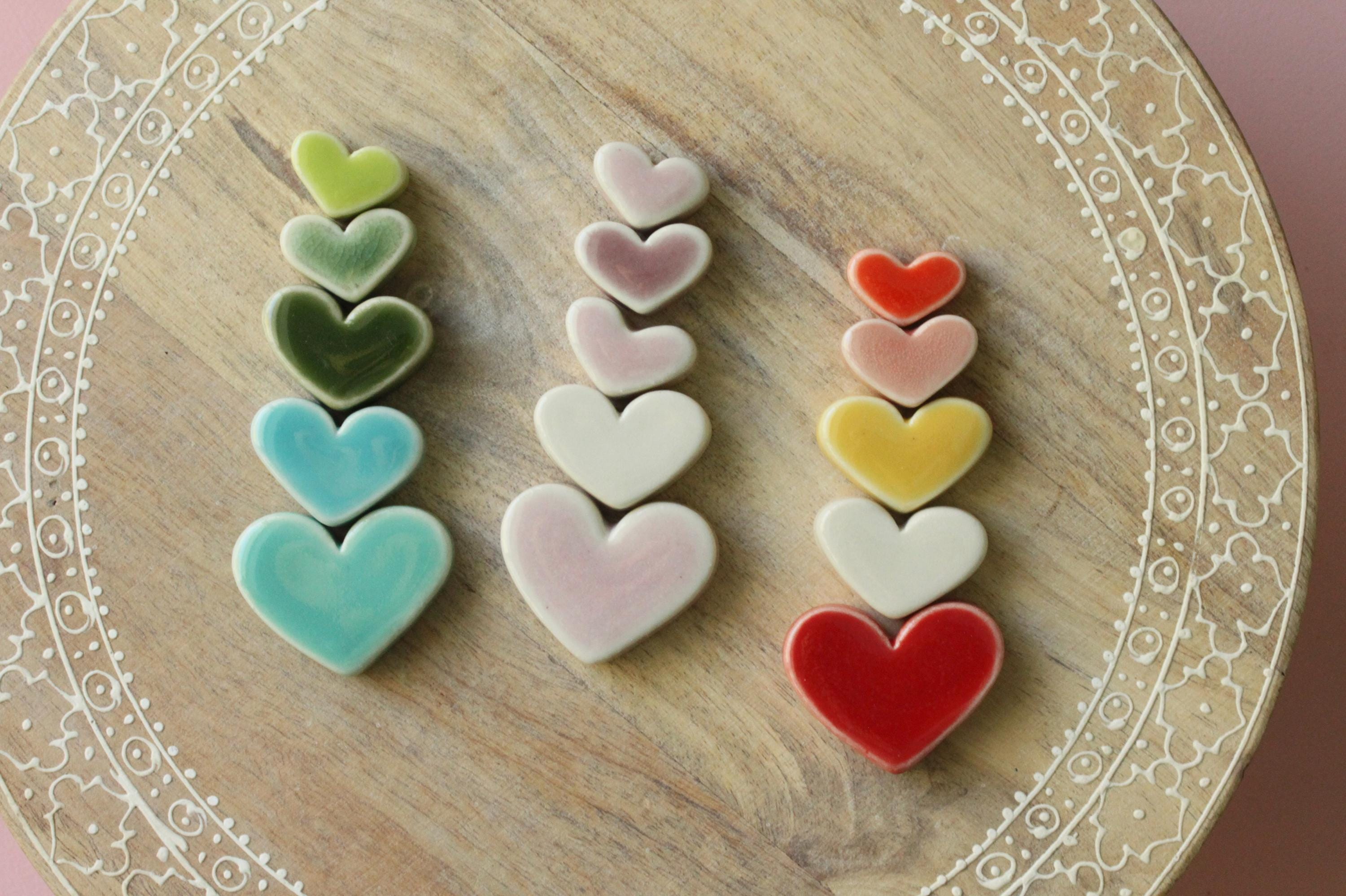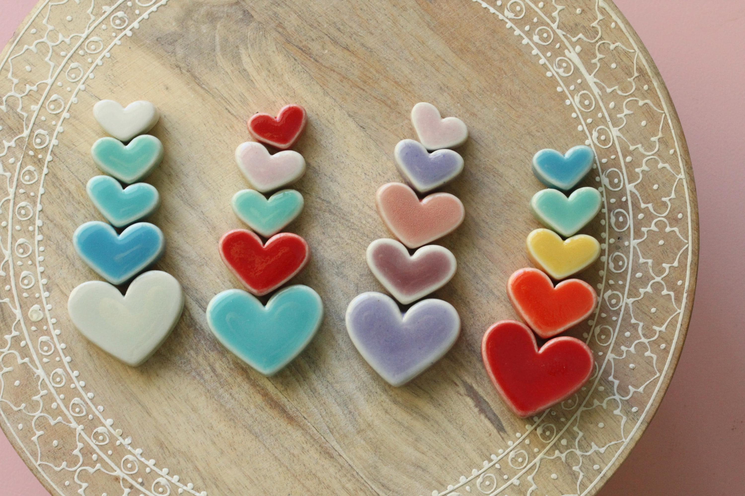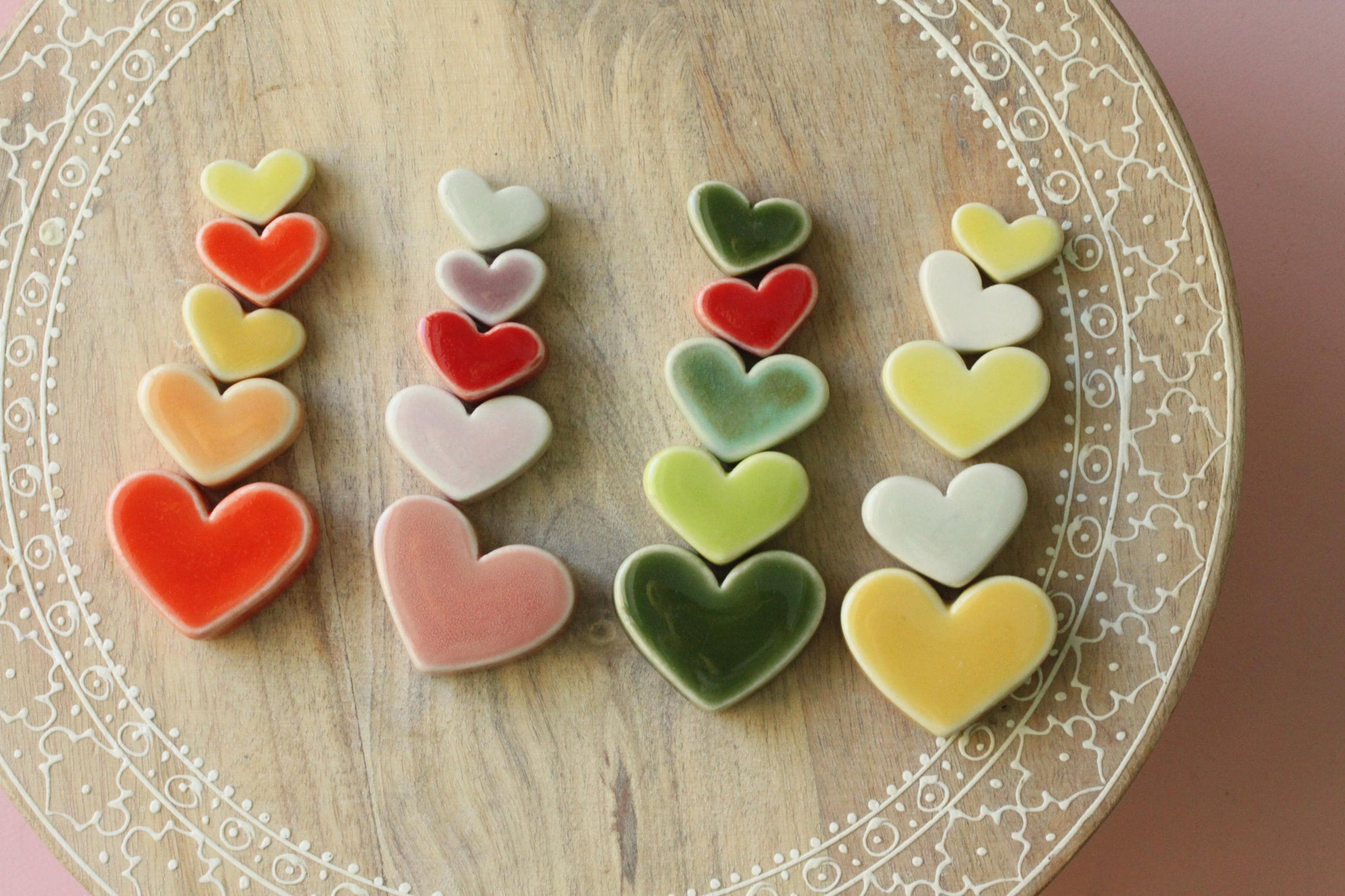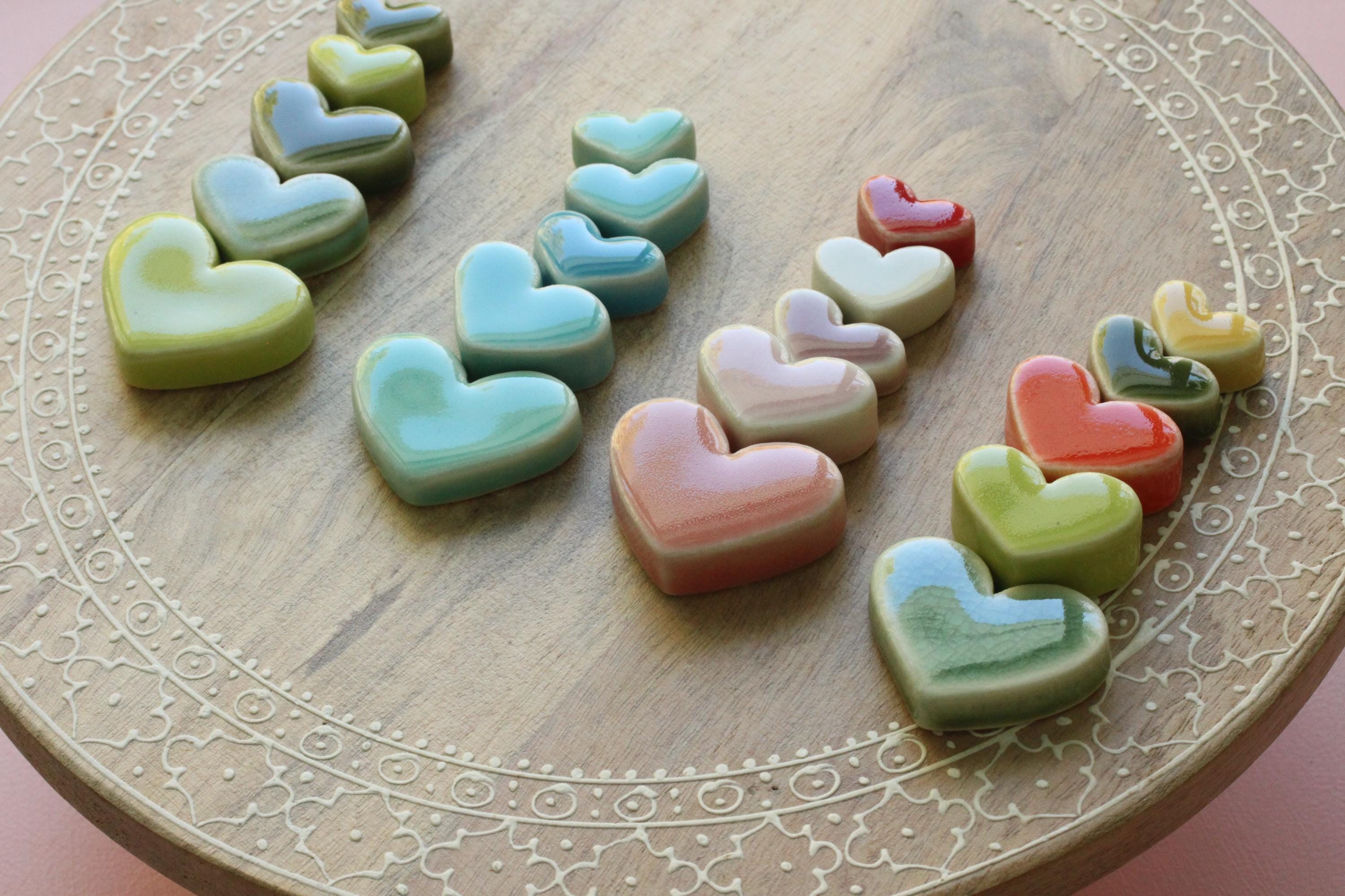 ceramic candy hearts, set of 5// porcelain heart// valentine decor// ceramic heart