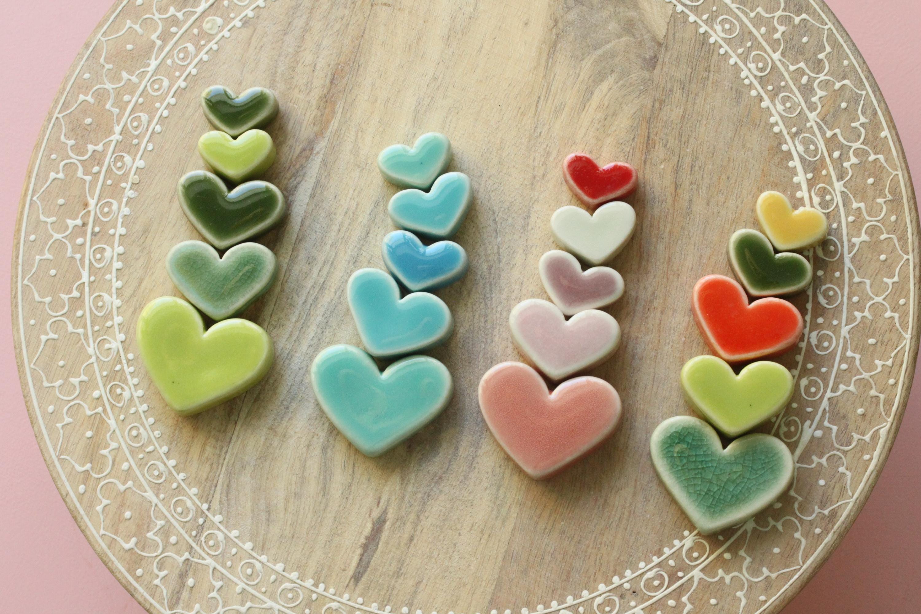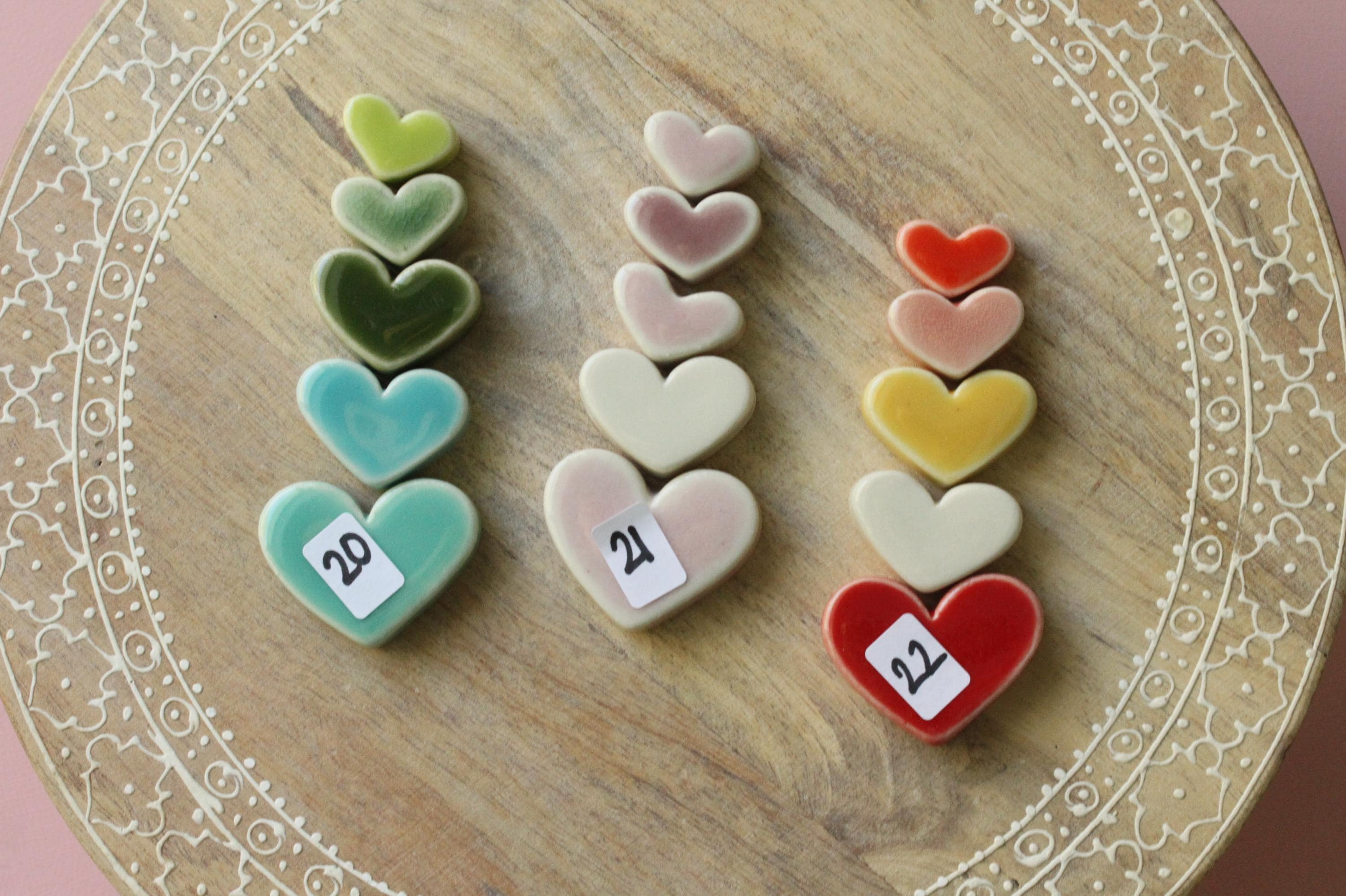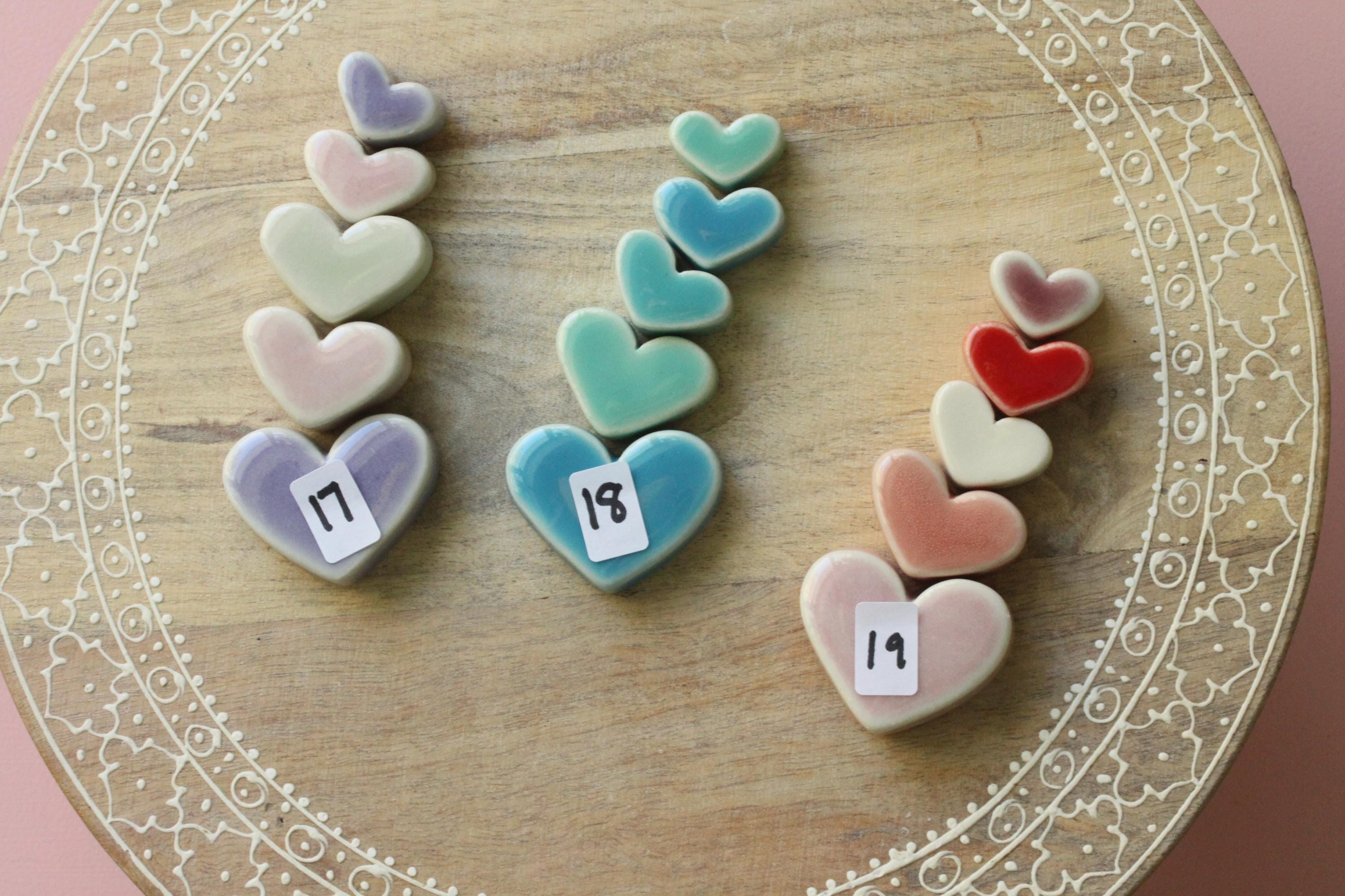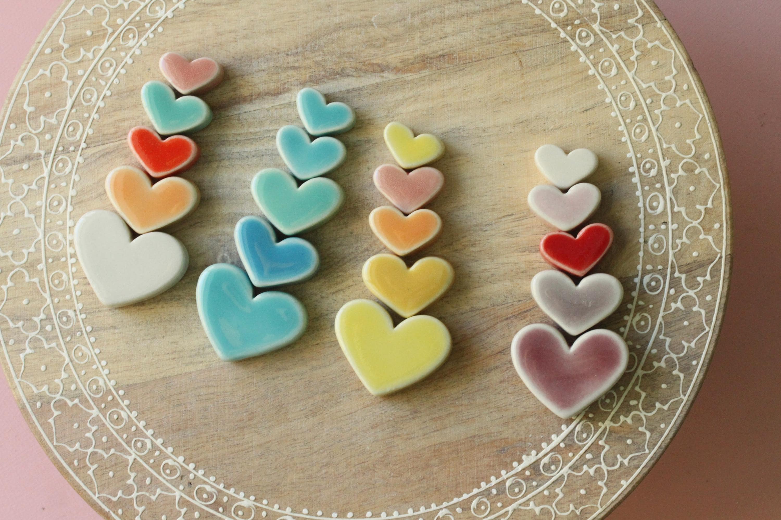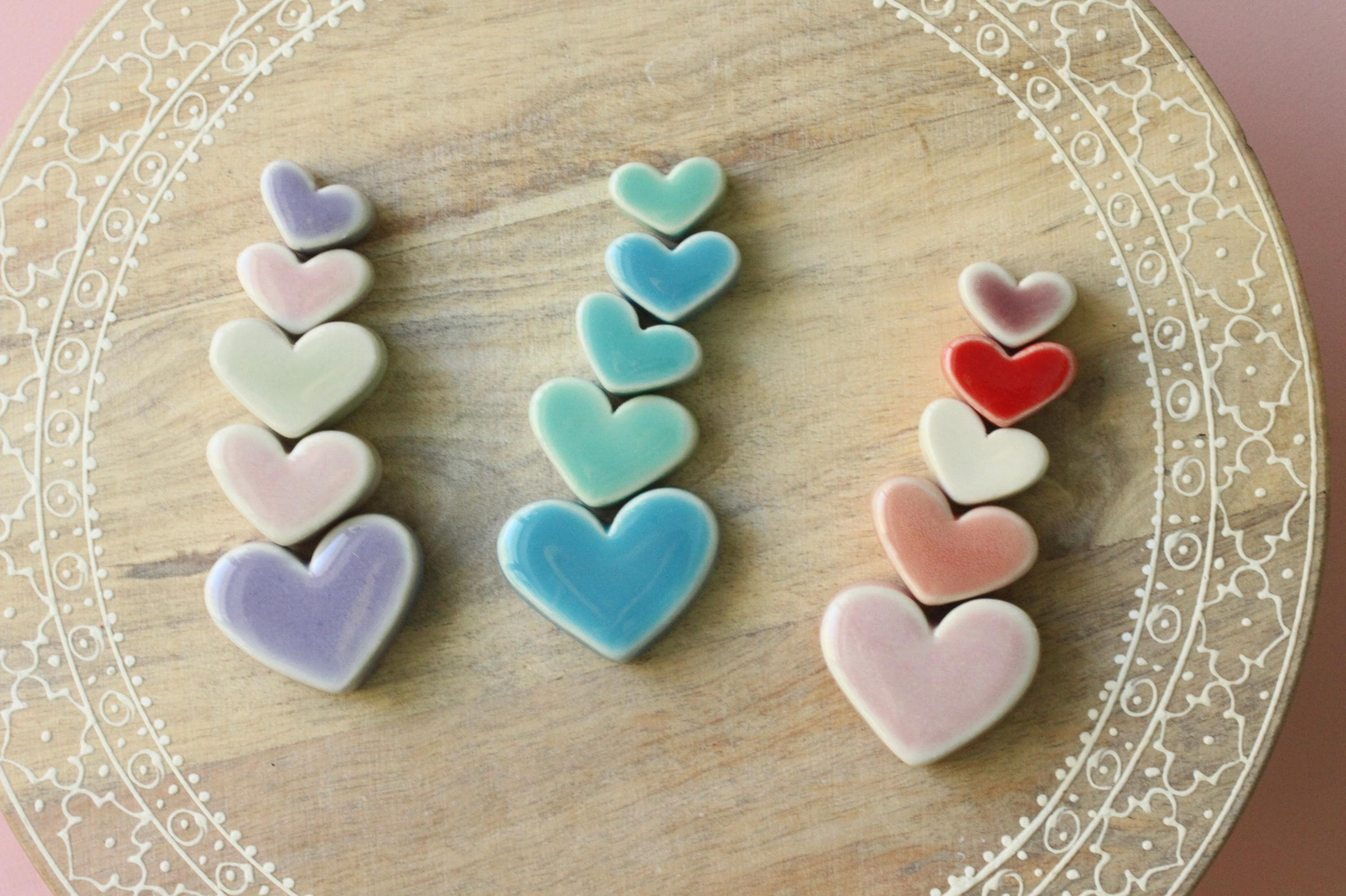 ceramic candy hearts, set of 5// porcelain heart// valentine decor// ceramic heart