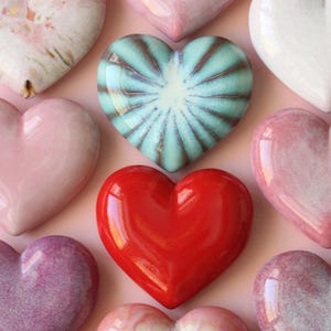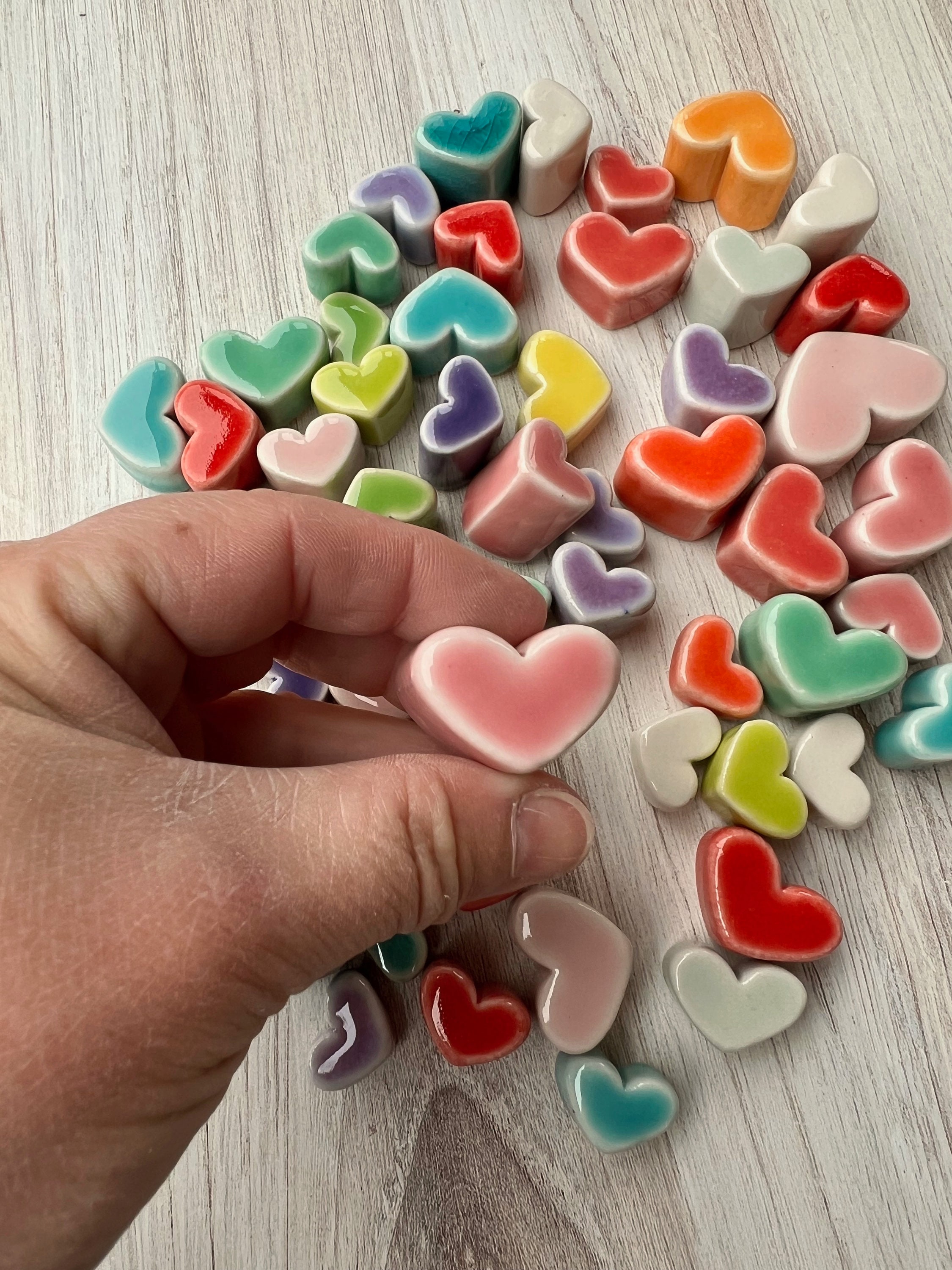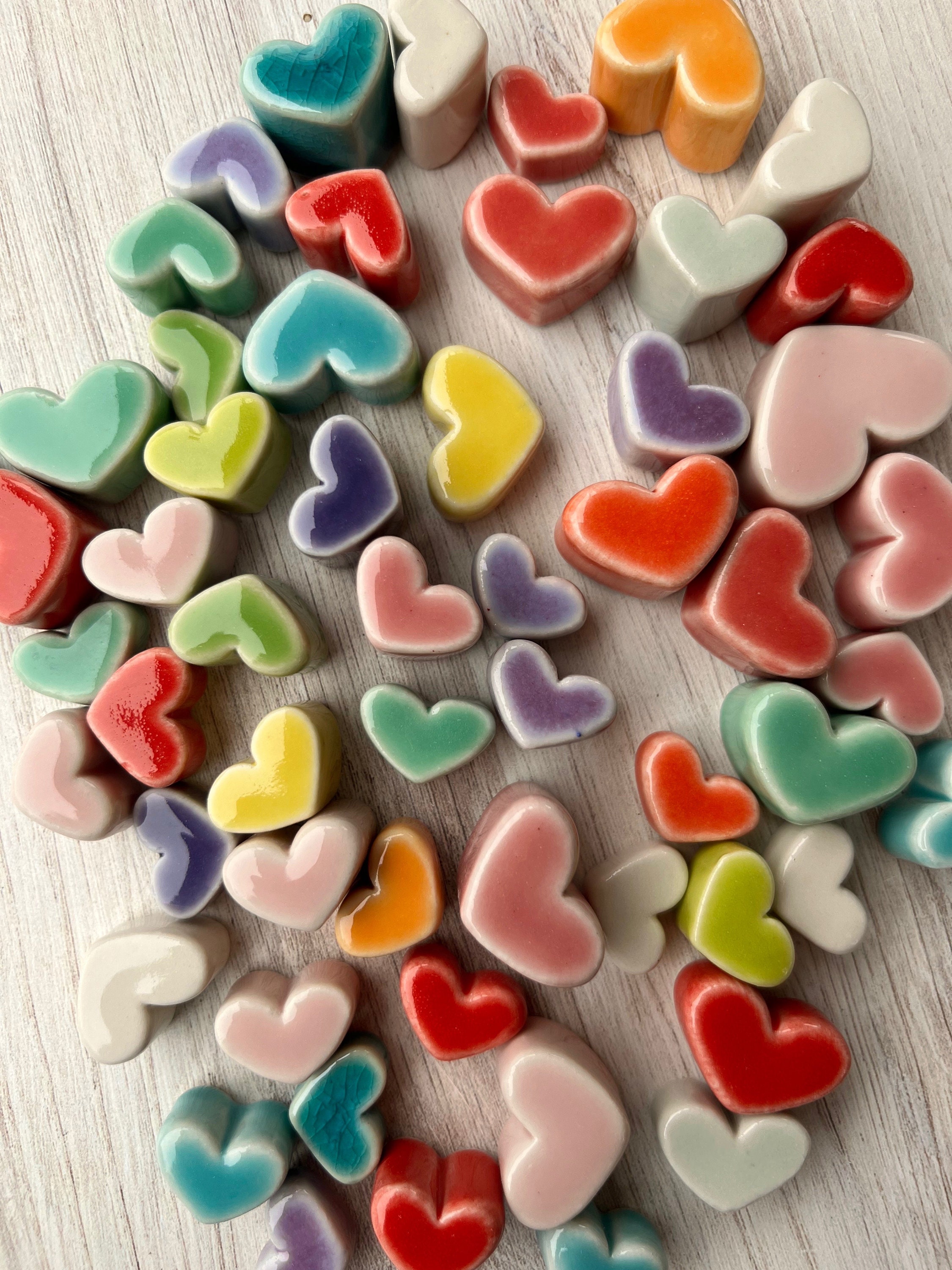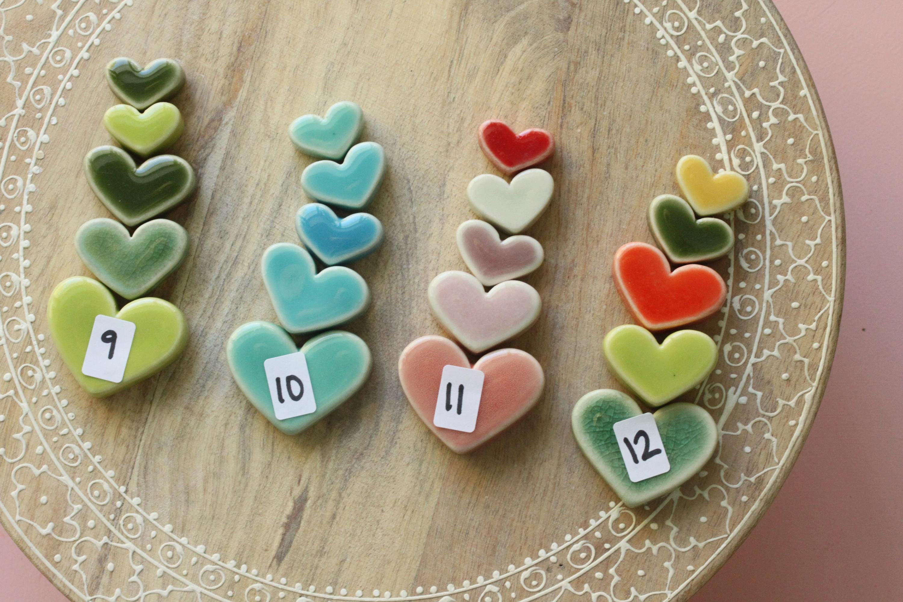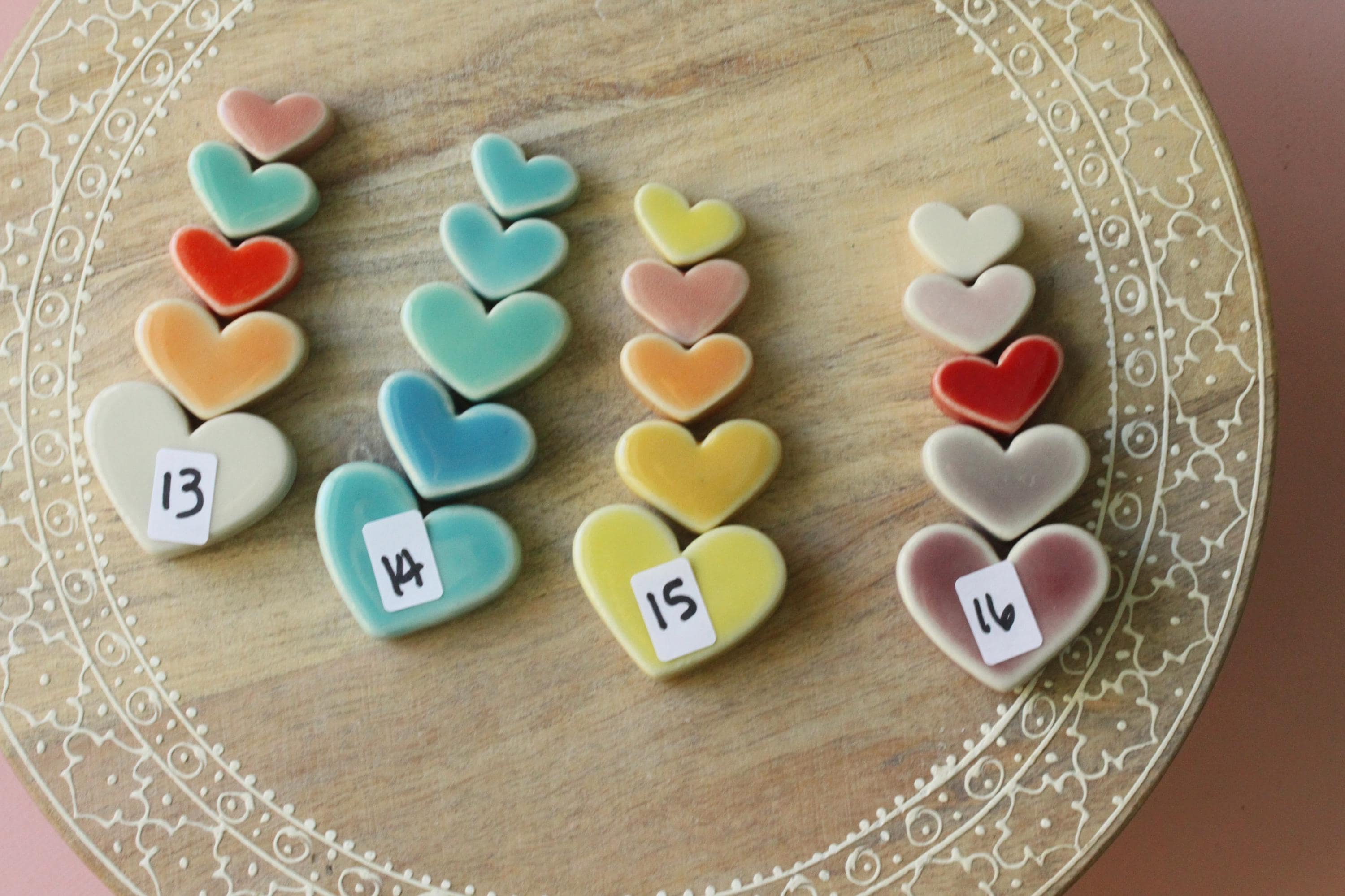 ceramic candy hearts, set of 5// porcelain heart// valentine decor// ceramic heart
