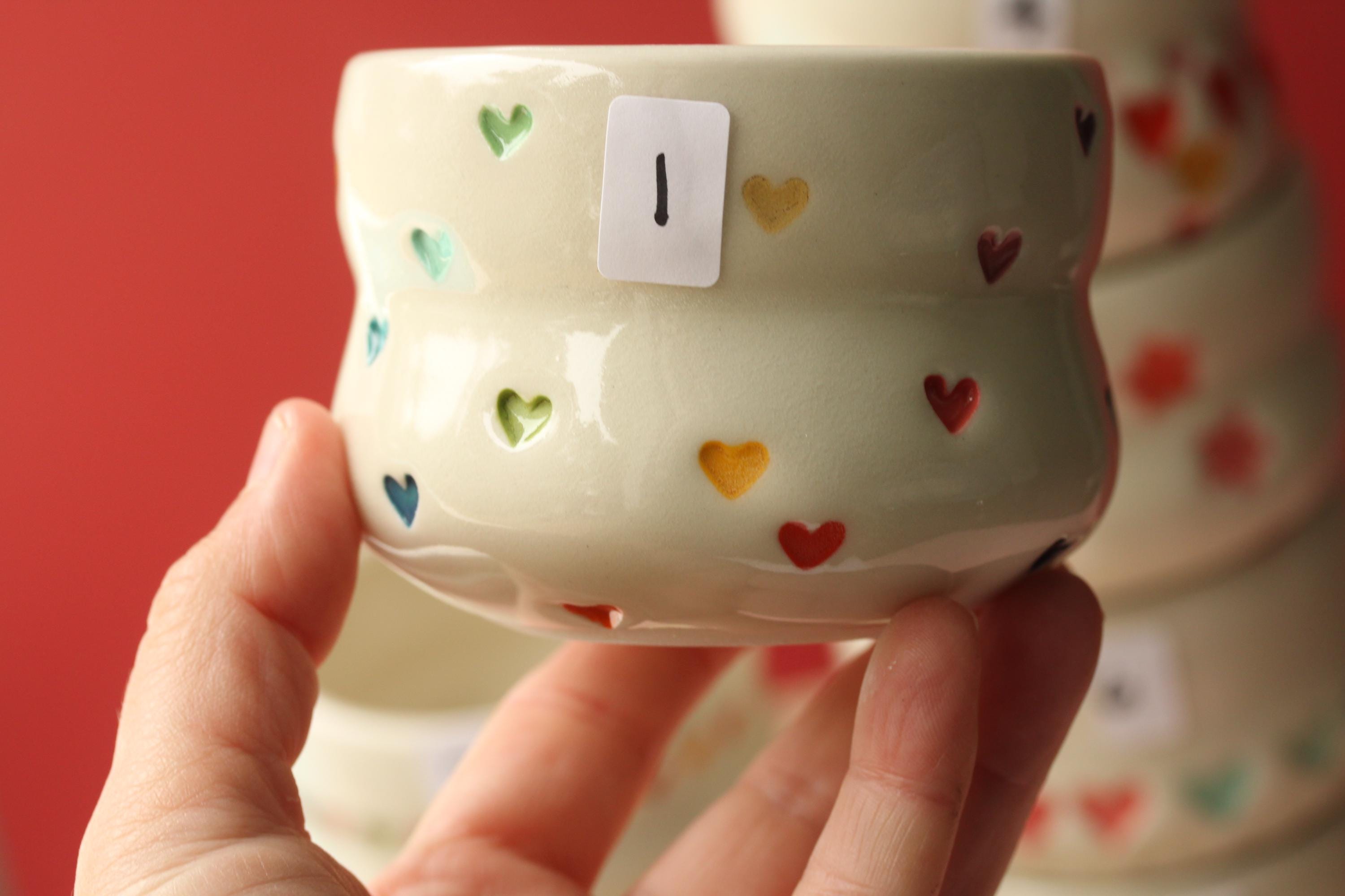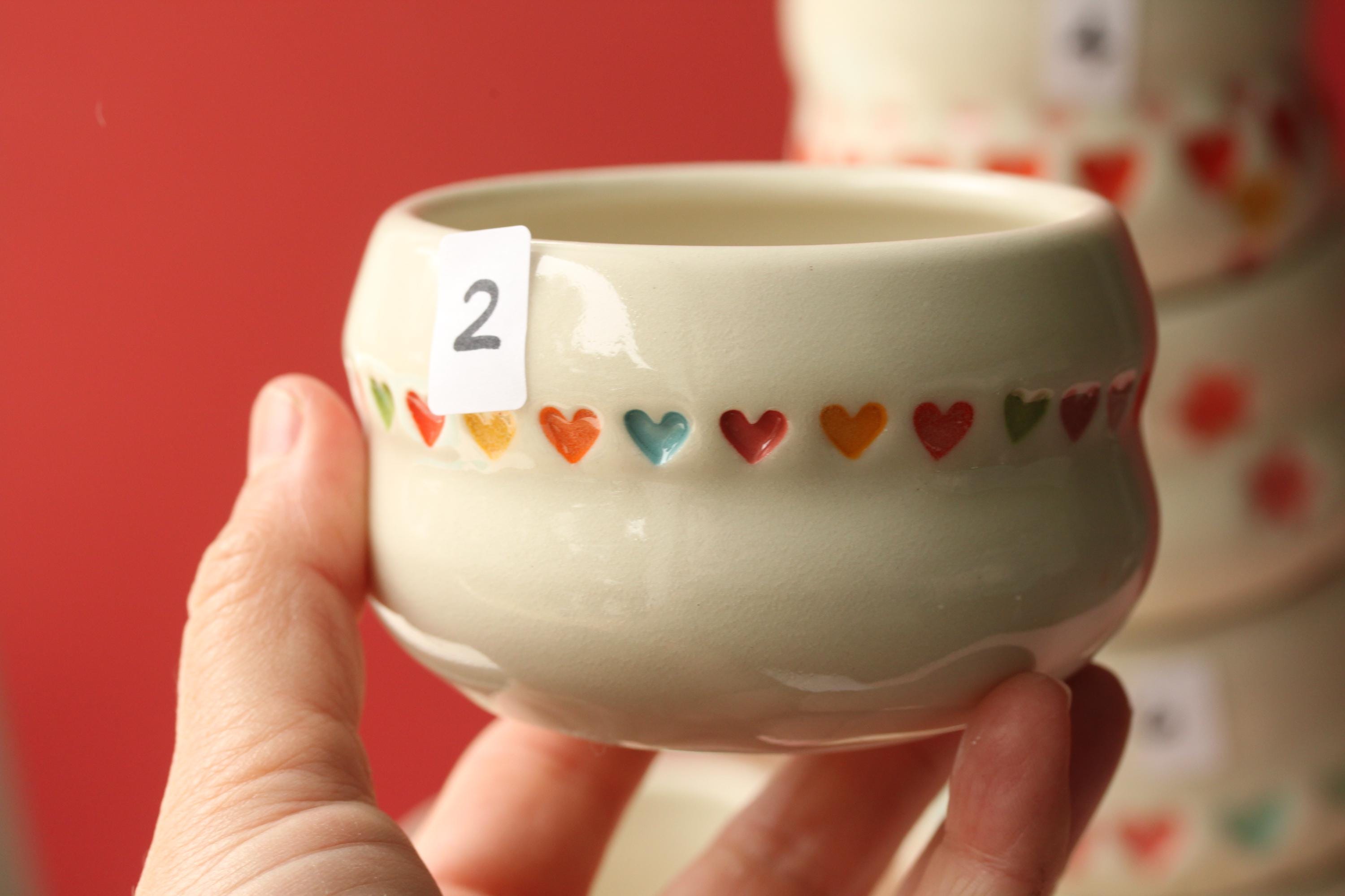 This little planter is wheel thrown from porcelain, add a succulent and you have a great gift for the person who's got everything:) Glazed with colorful hearts and finished in a glossy clear glaze, a hole have been added for drainage. This does NOT come with a saucer. It can be used indoors and outdoors and dishwasher safe. Pick your favorite from the drop-down menu, the listing is for one planter.