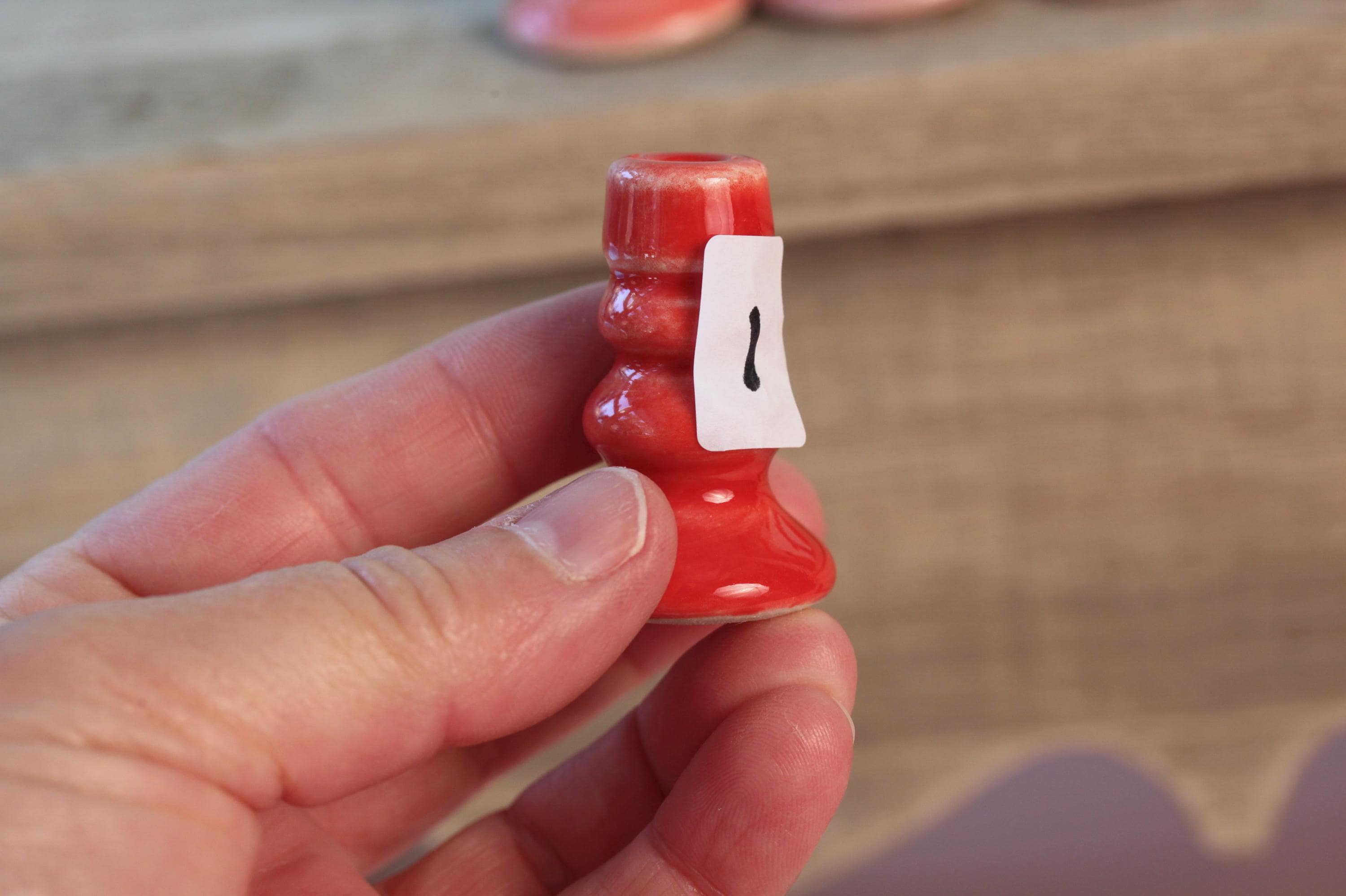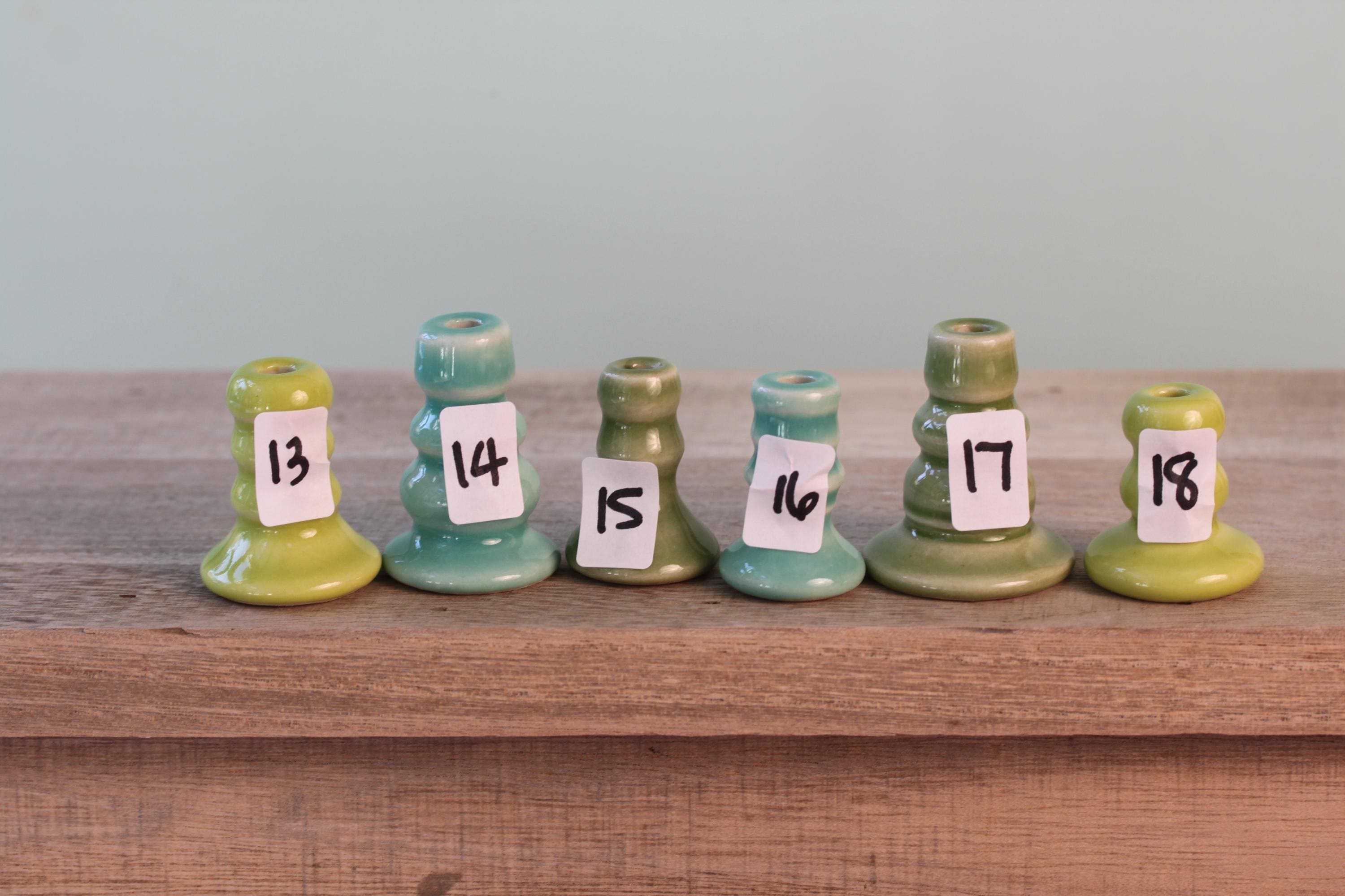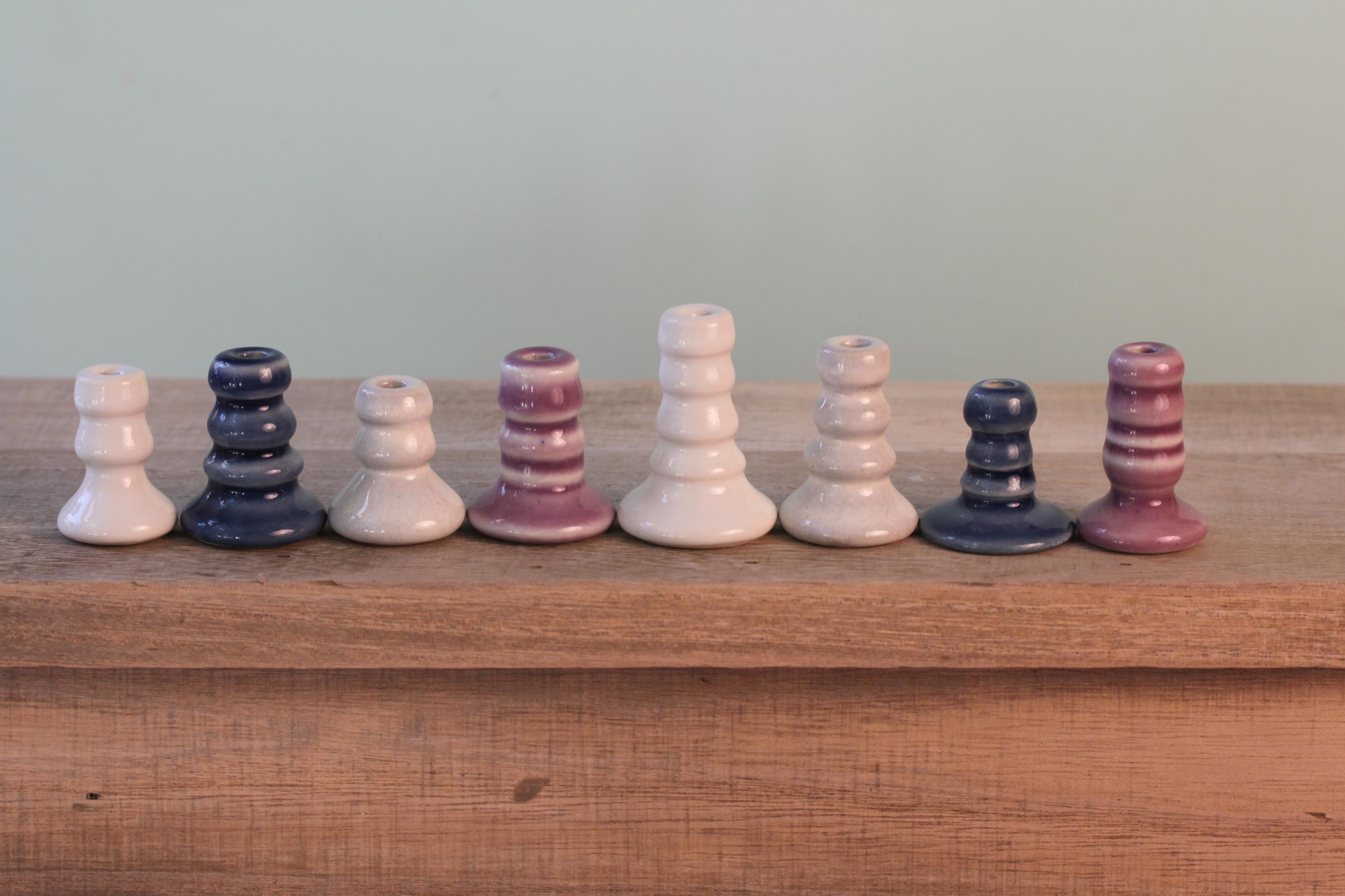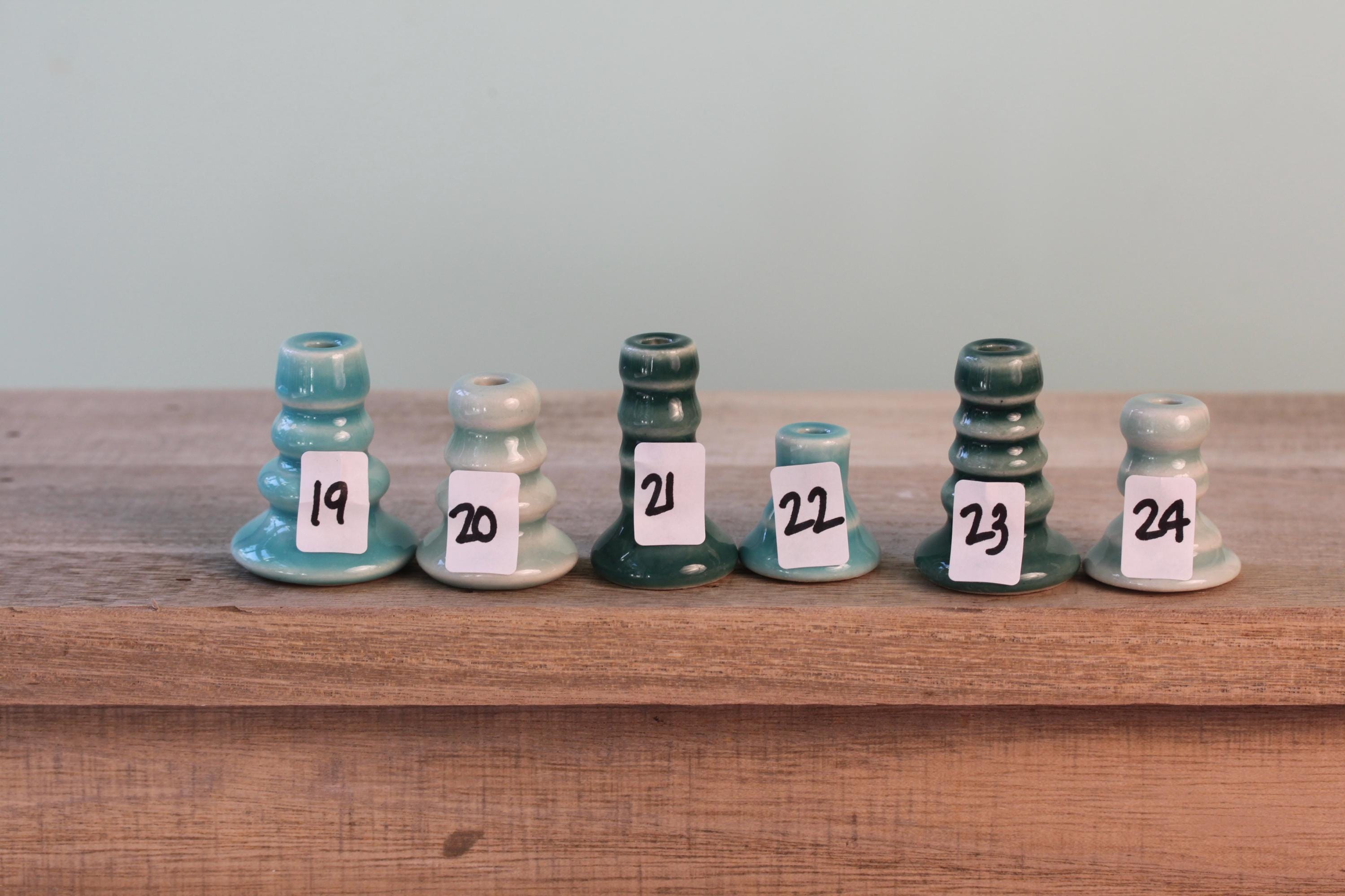 Listing is for one mini candle stick holder. This is a wheel thrown porcelain candle stick glazed in one of our in house colorful glazes. Each comes with one black candle, these are birthday candles to help with scale and they can be lit but won't last long:).