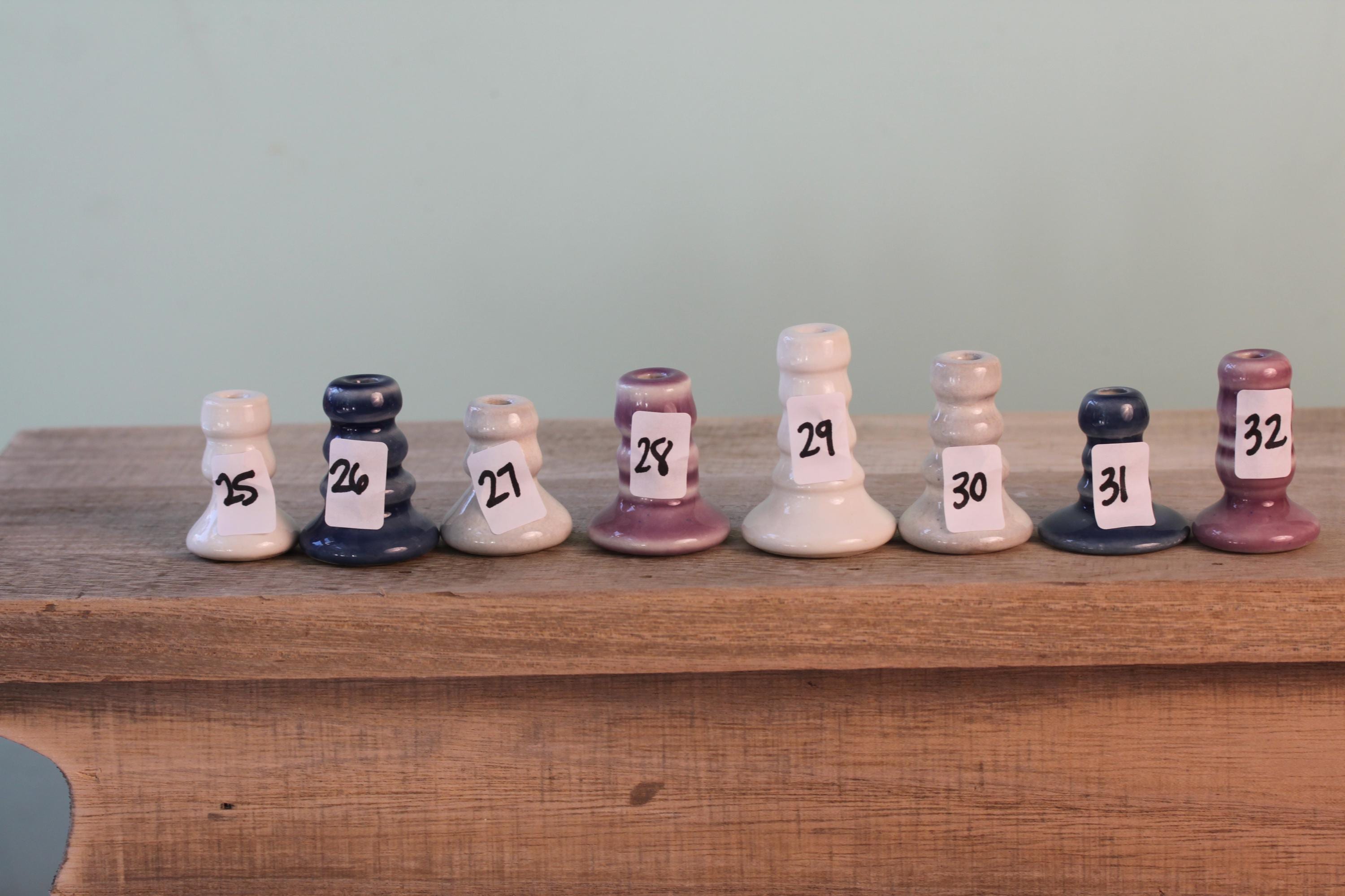 Factoring in the 12% shrinkage rate of our clay.... I did my best to get the candles to fit well and the do but melting the end of the candle quickly and inserting it into the base should stabilize them perfectly.