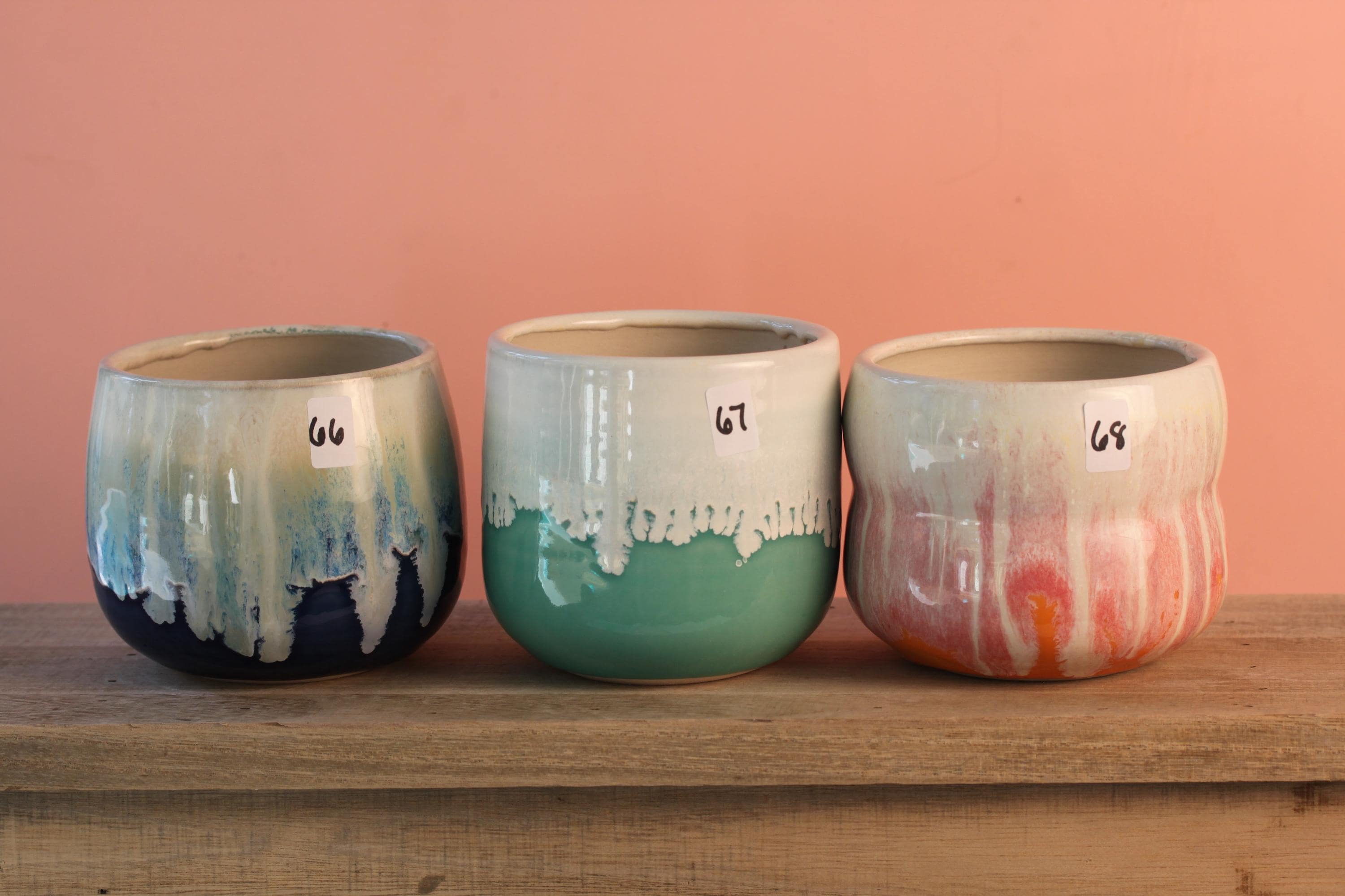 3 1/4-4 1/2" colorful planter, no coaster // ceramic plant pot