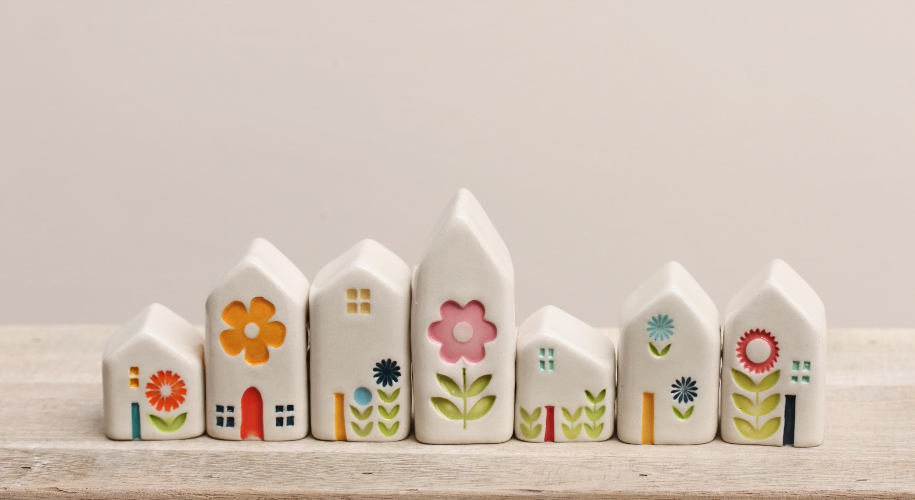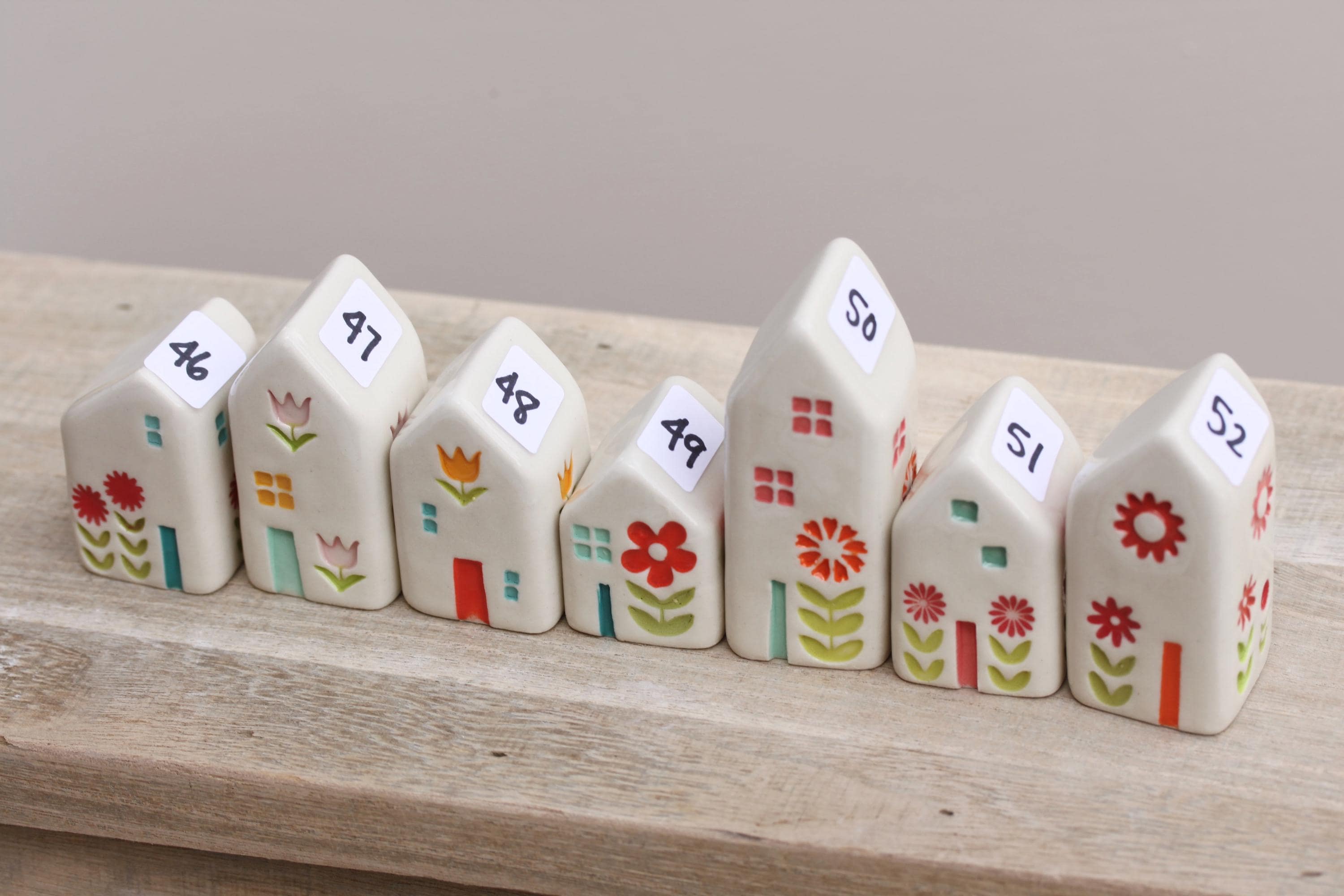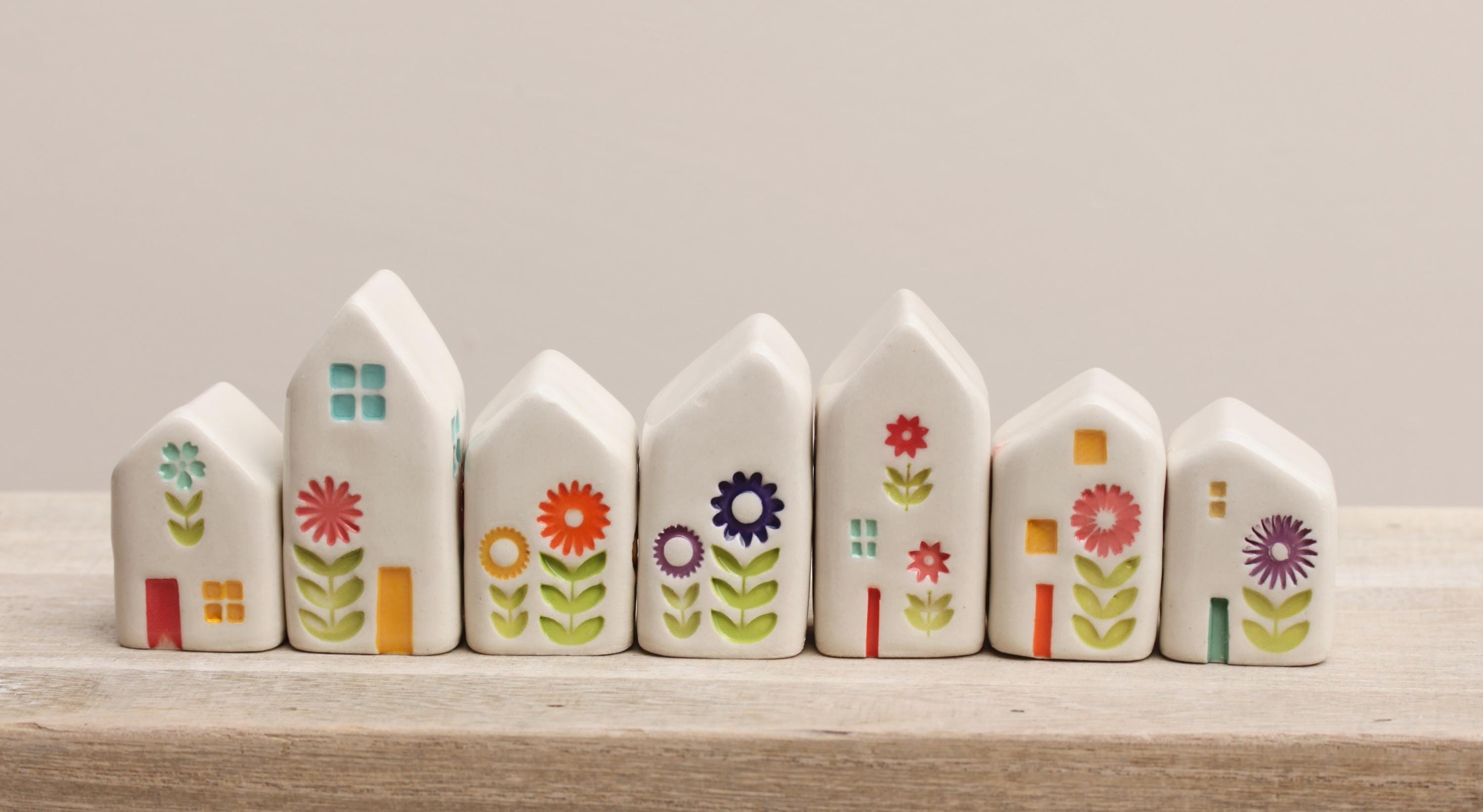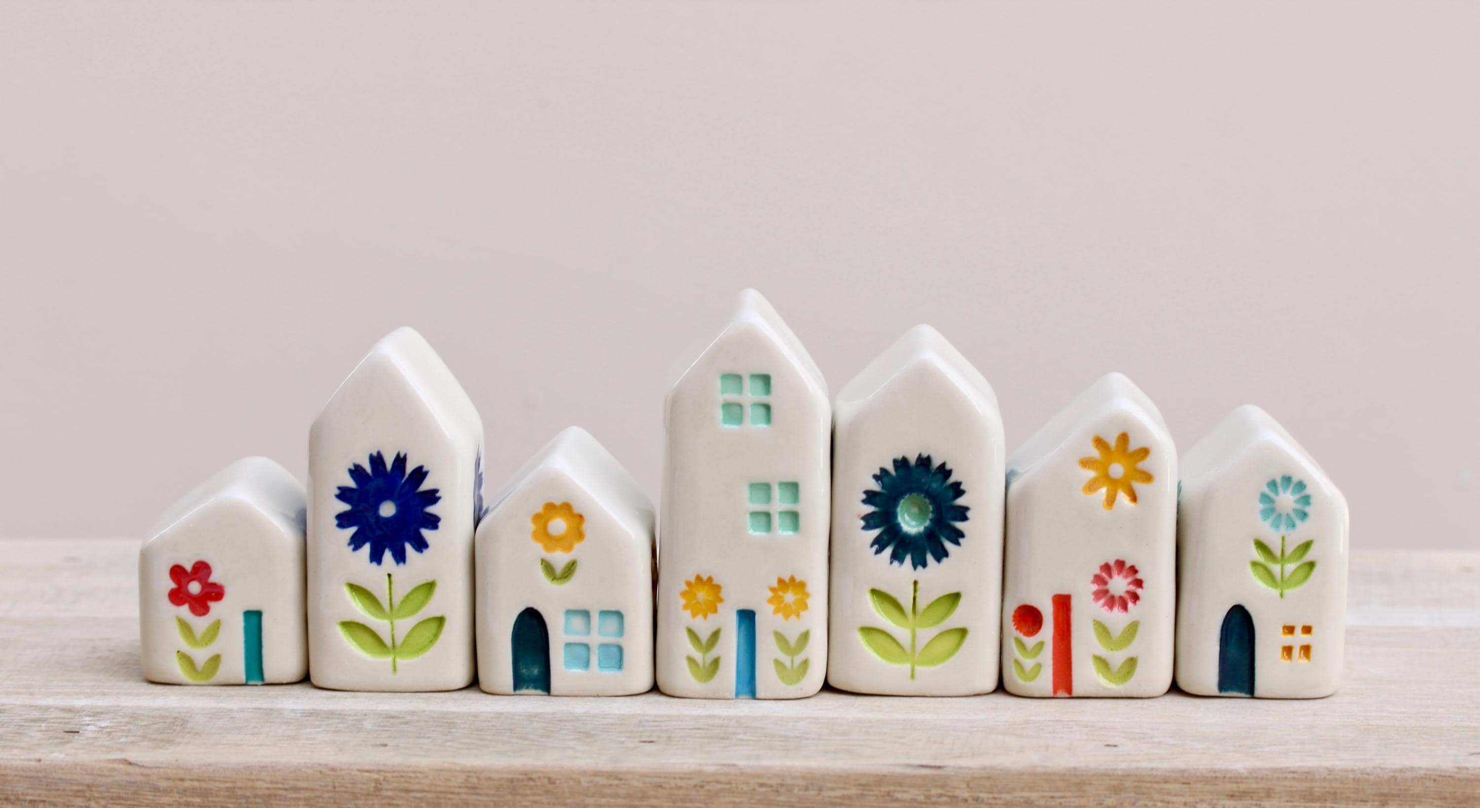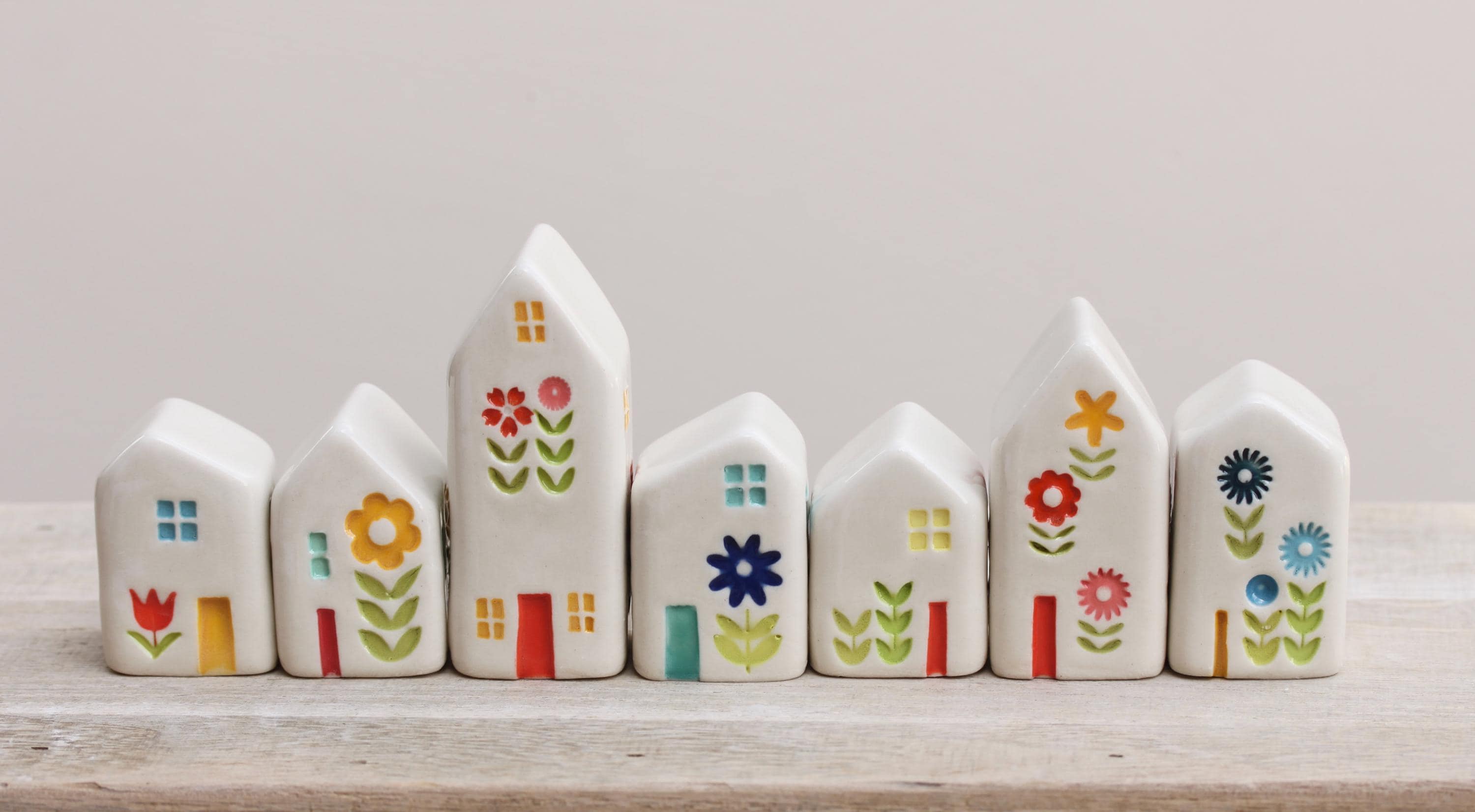 Mini Folk Flower House: Handmade Porcelain Tiny House - Boho Decor
