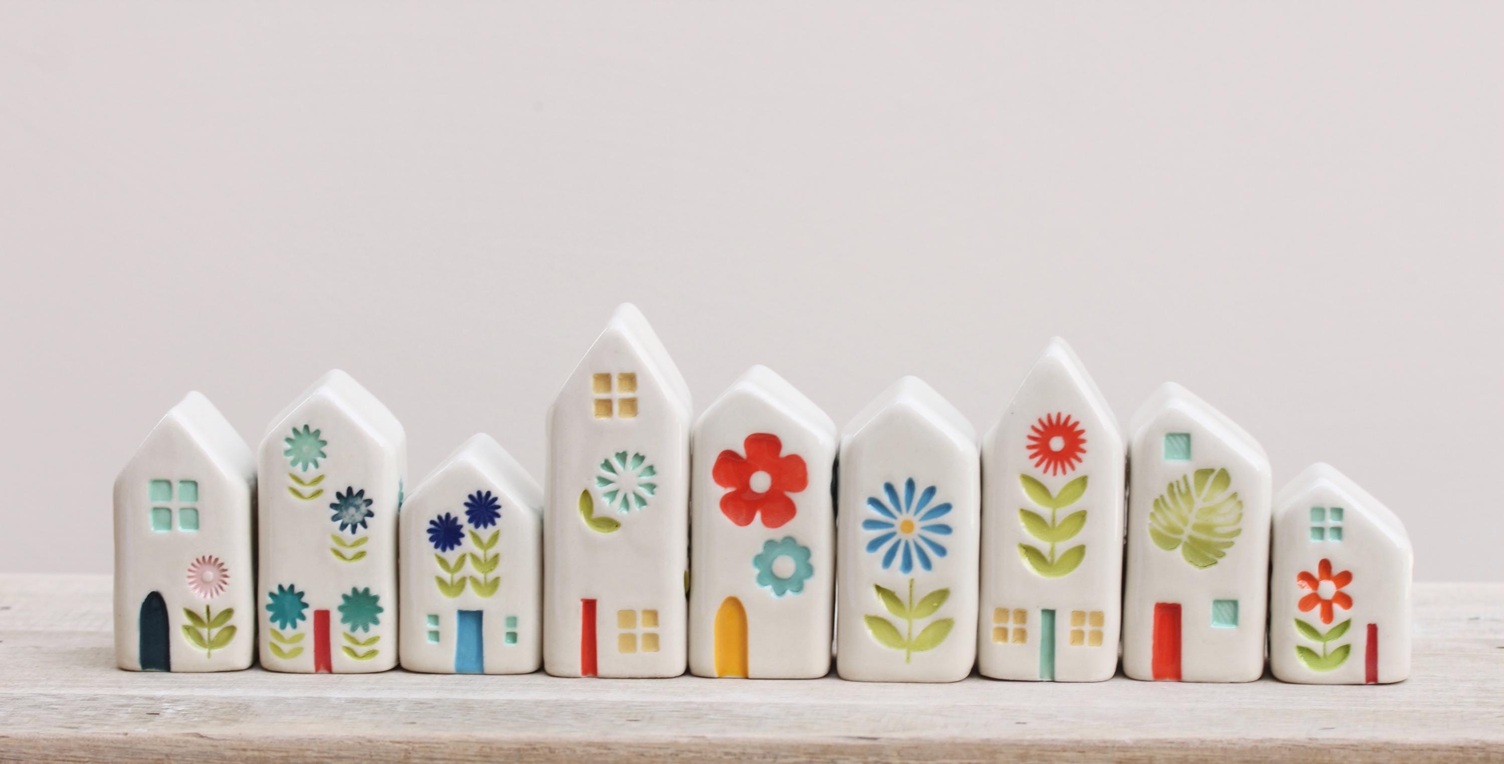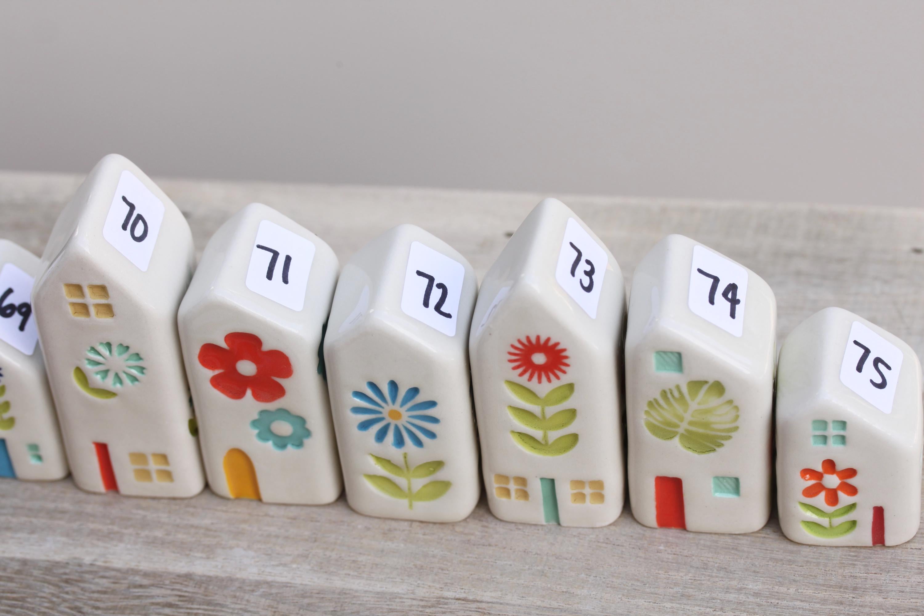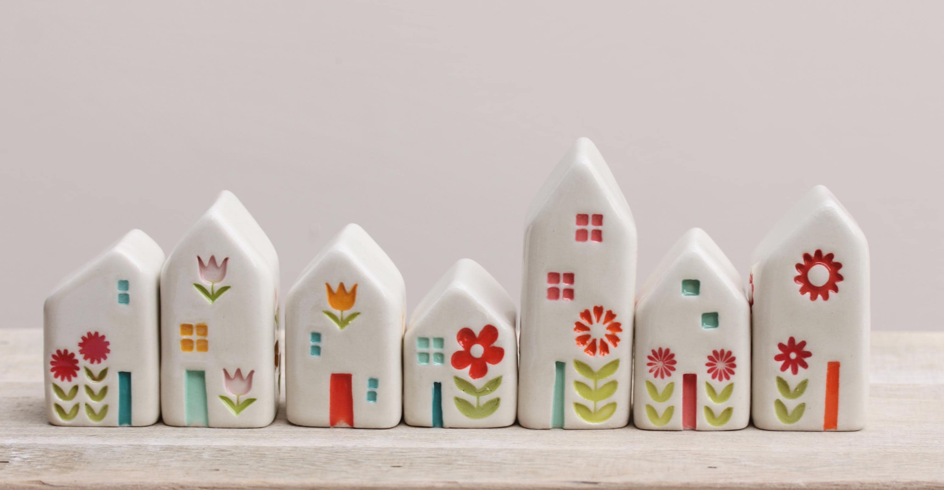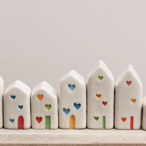 A little colorful handmade house is sure to brighten your space. Group them to make a village or start a fairy garden with one.