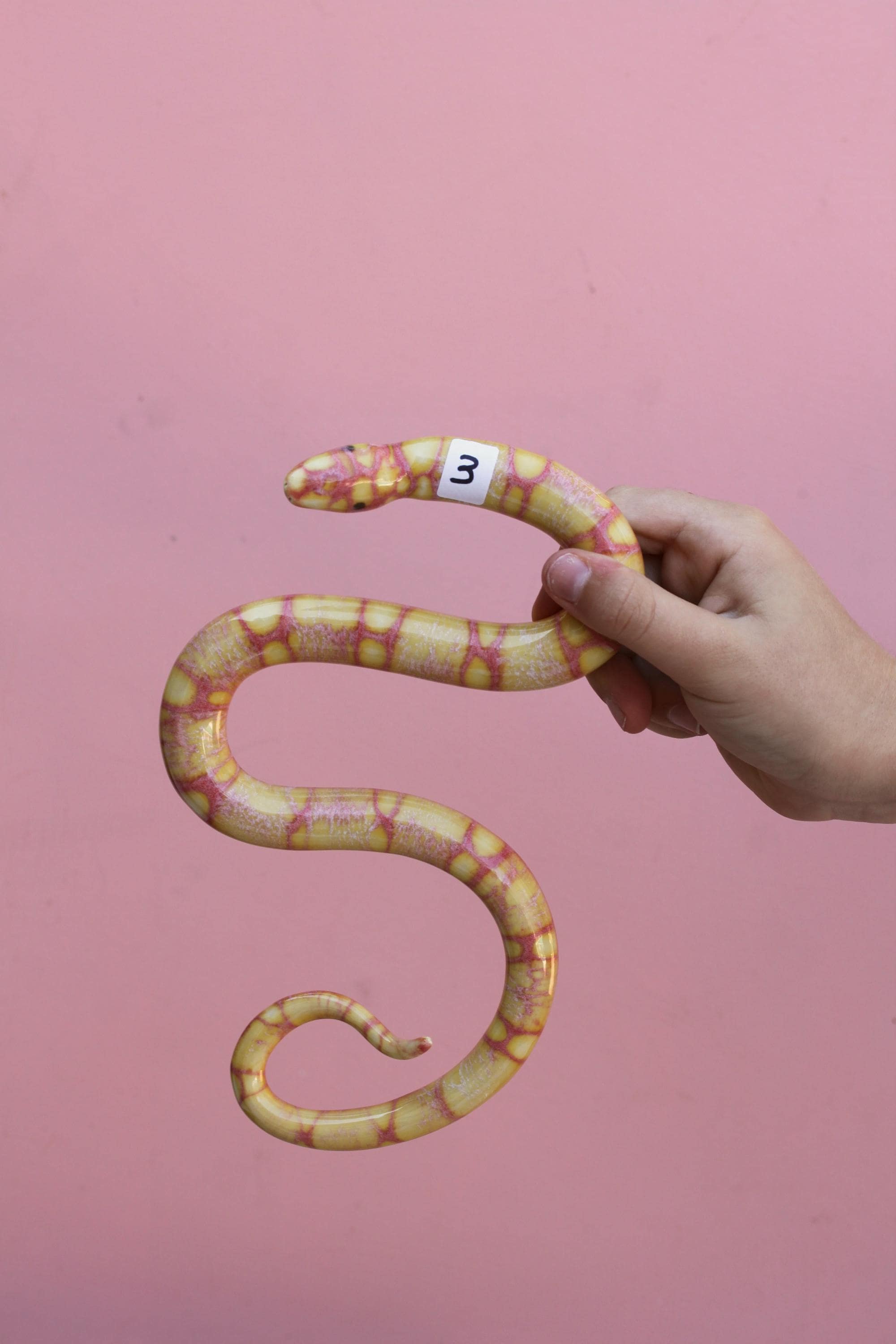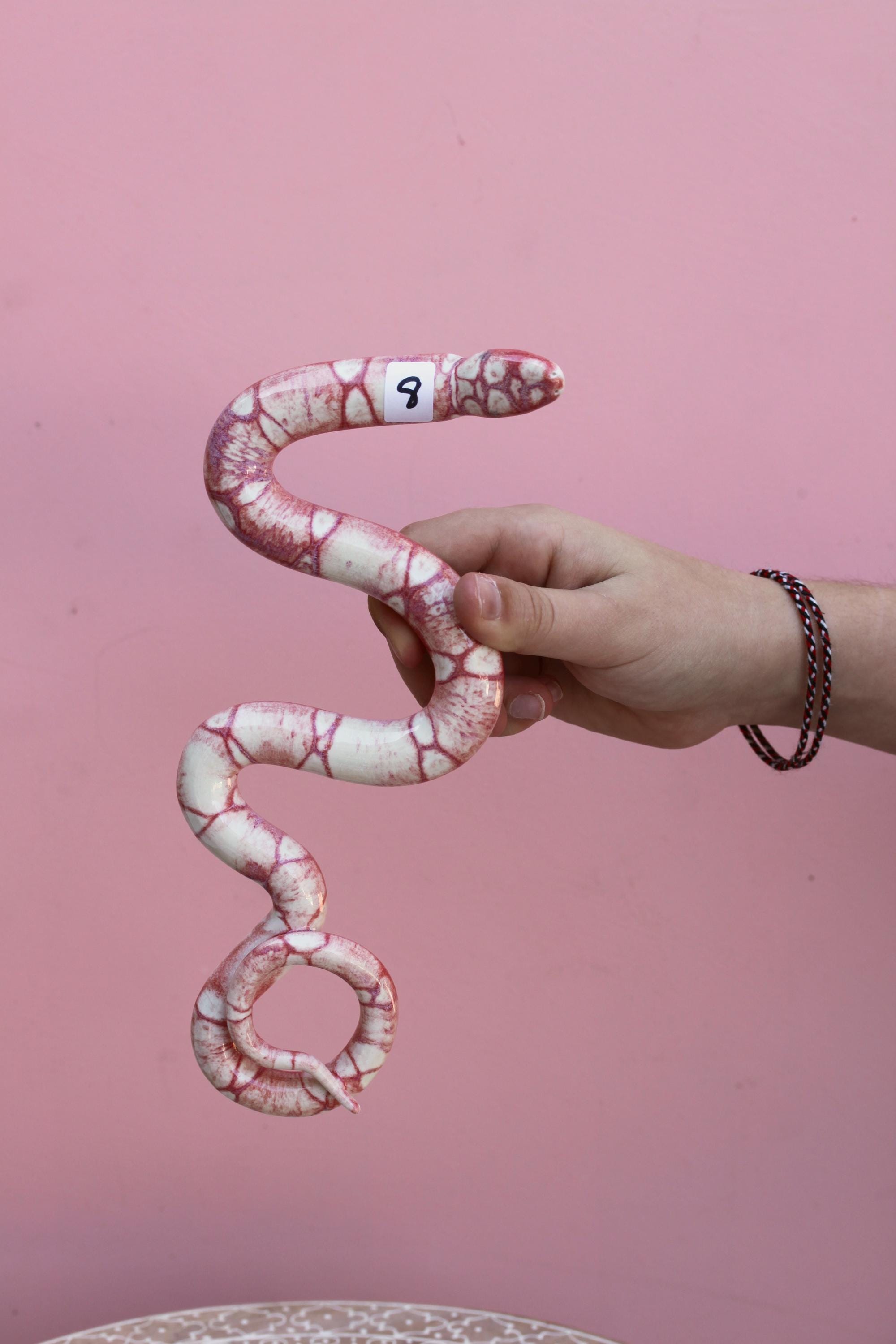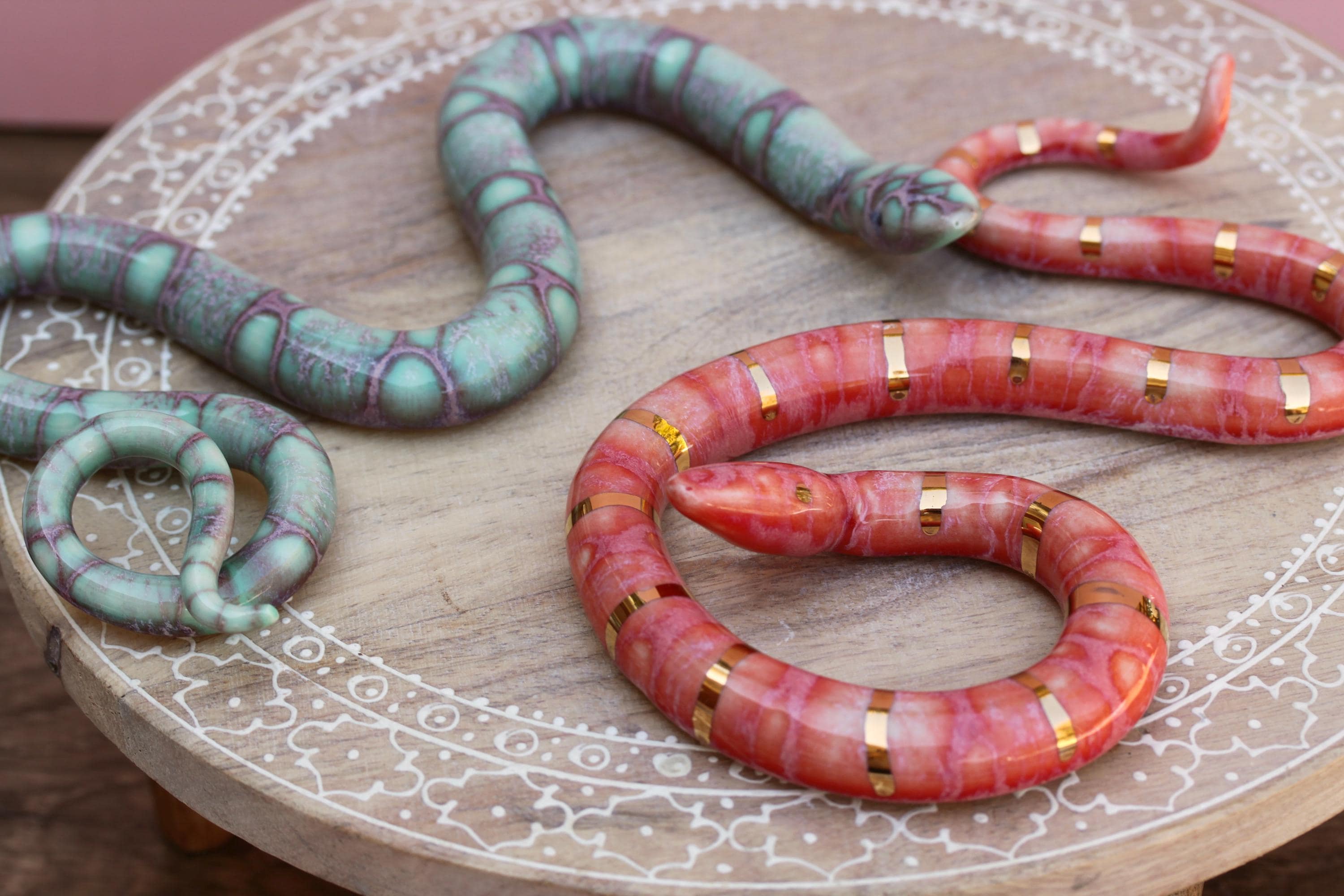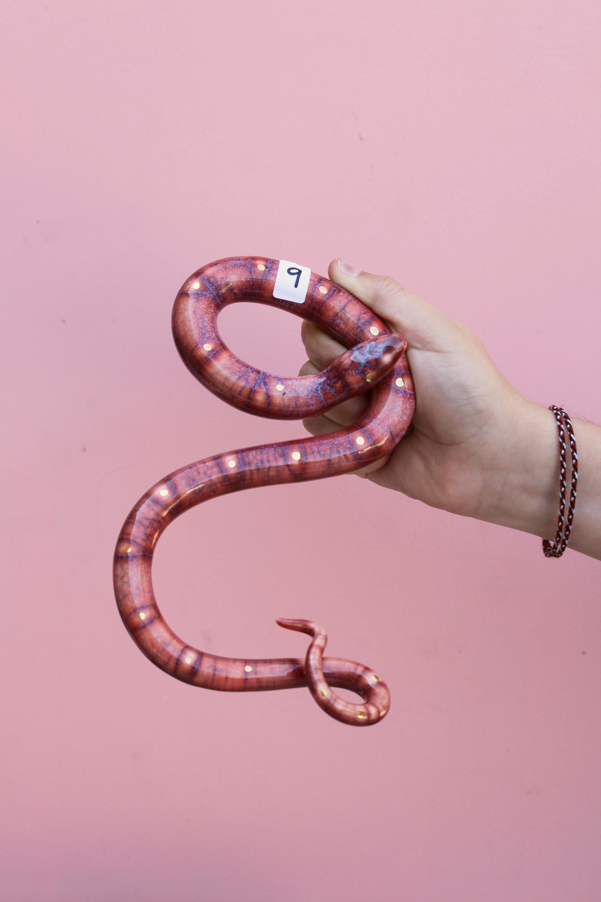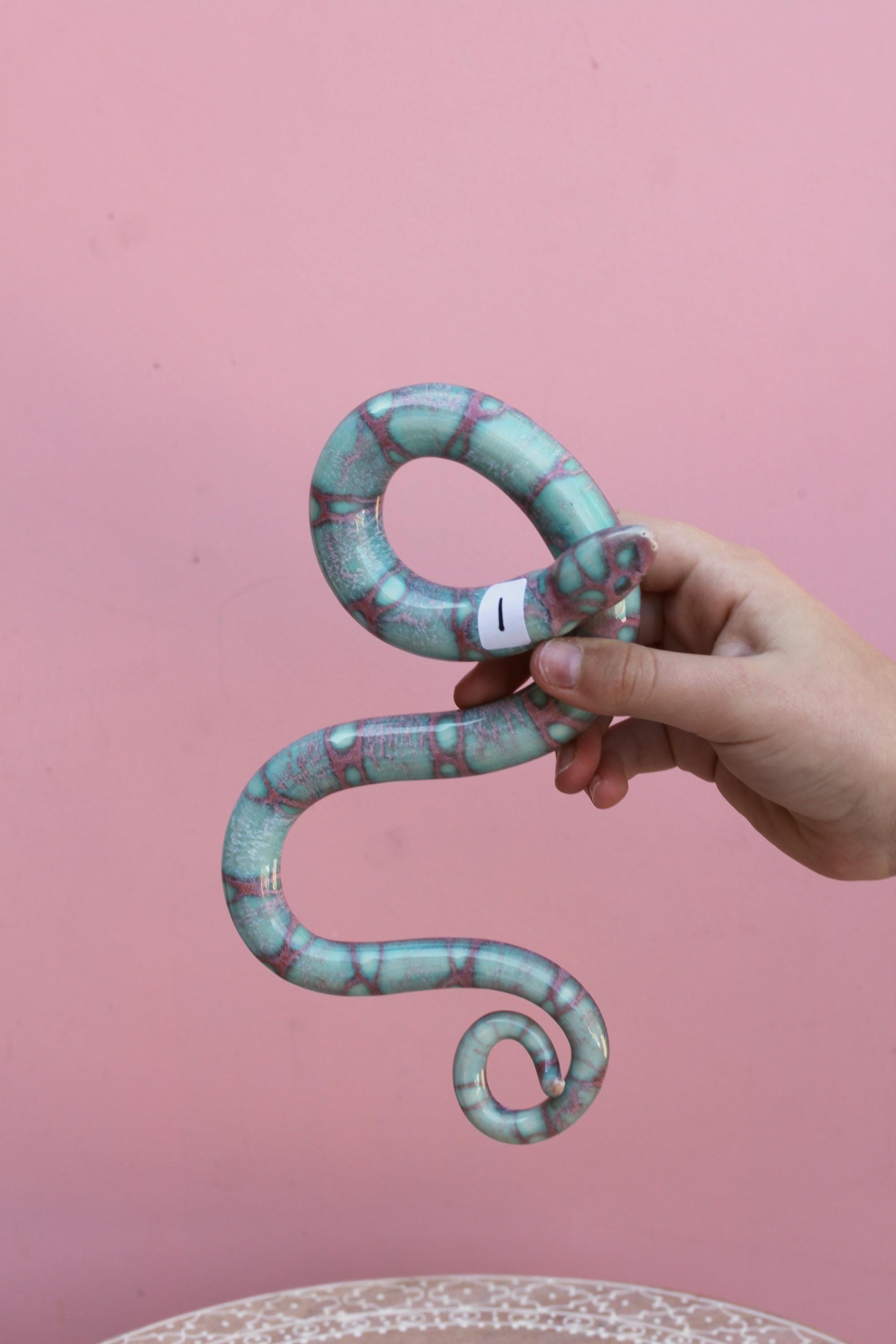 The listing is for one colorful porcelain snake choose your favorite. These are hand built from porcelain and glazes with layers of reactive glazes. 9 & 10 have a 24K gold luster added and went through a 3rd kiln firing.