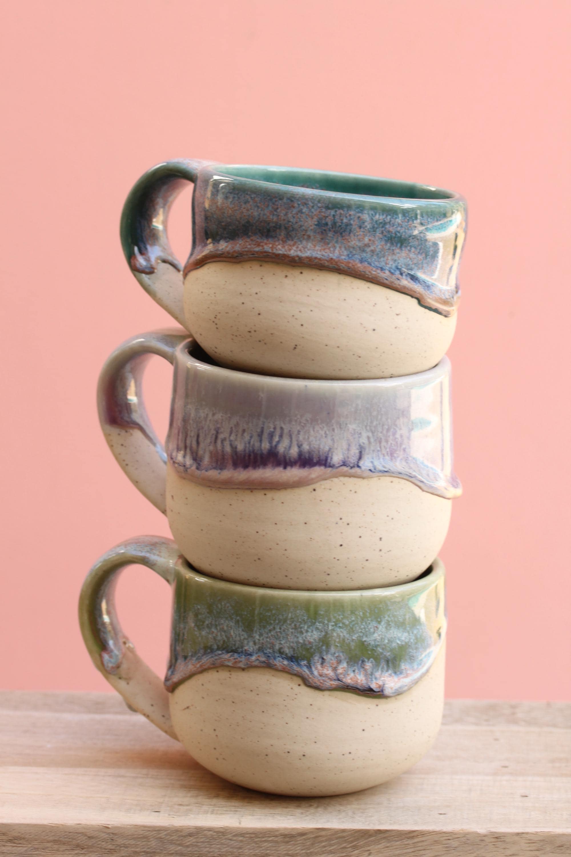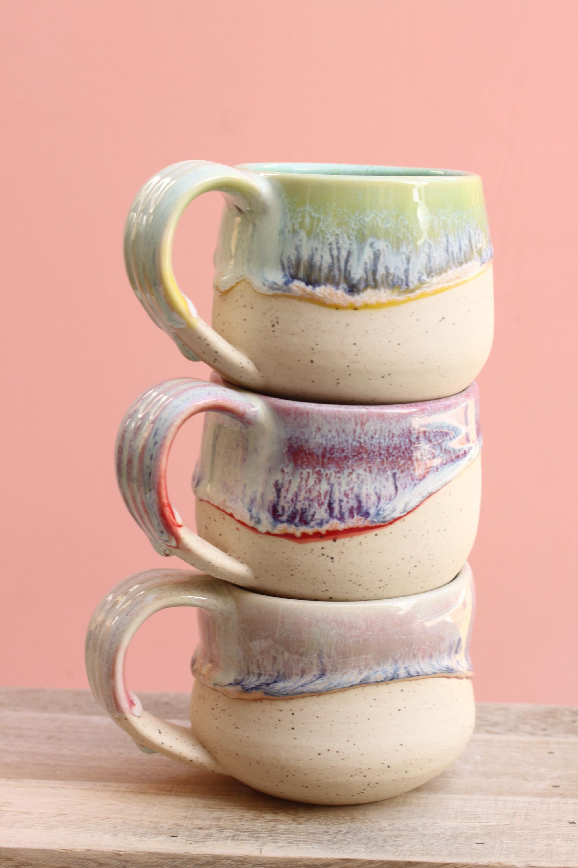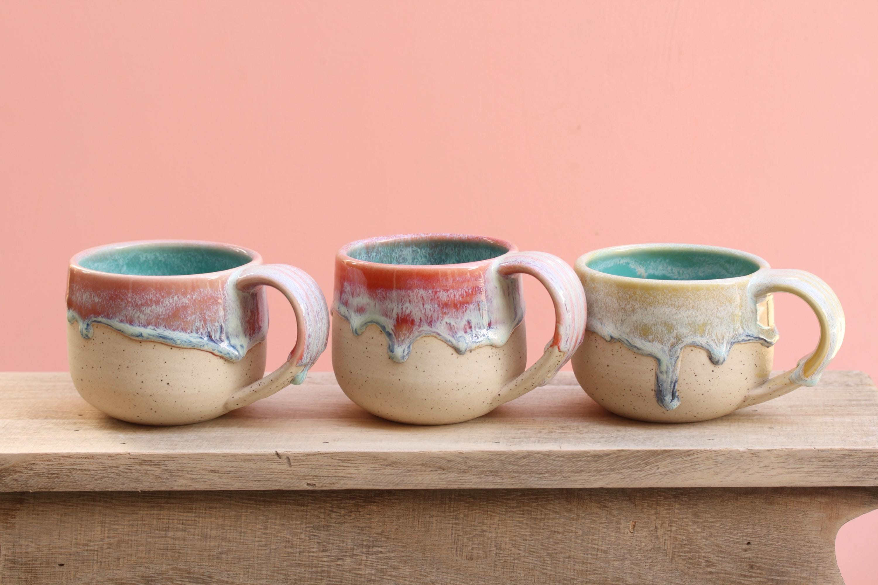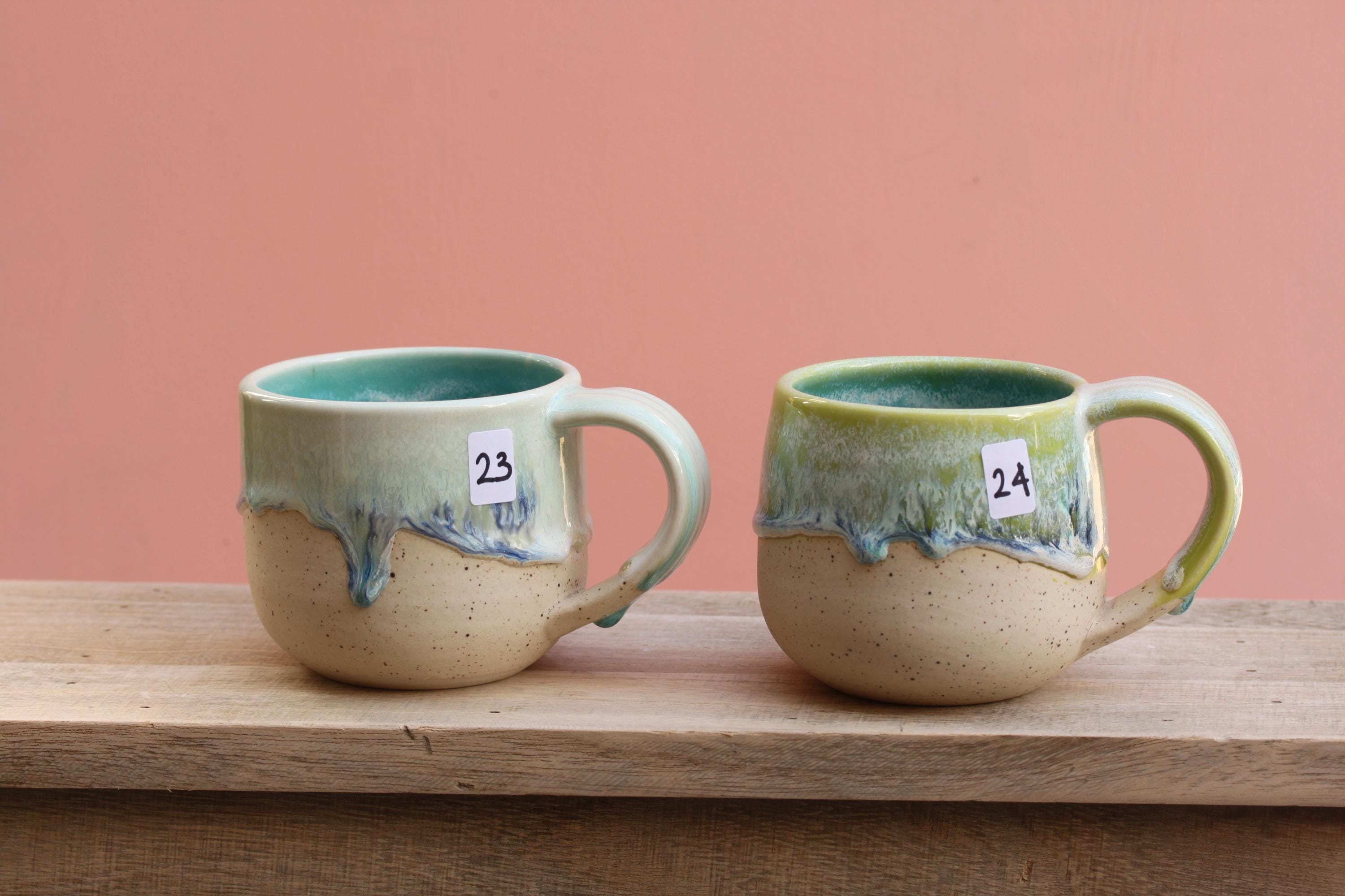 Listing is for one mug, choose your favorite ounces for each listed below. Enjoy your morning coffee or afternoon tea out of this sweet hand made mug, or make it a unique gift for Christmas or someone's birthday! Listing is for one mug in your choice of color. Interiors are all aqua. These have a wide handle which has become my favorite to use!