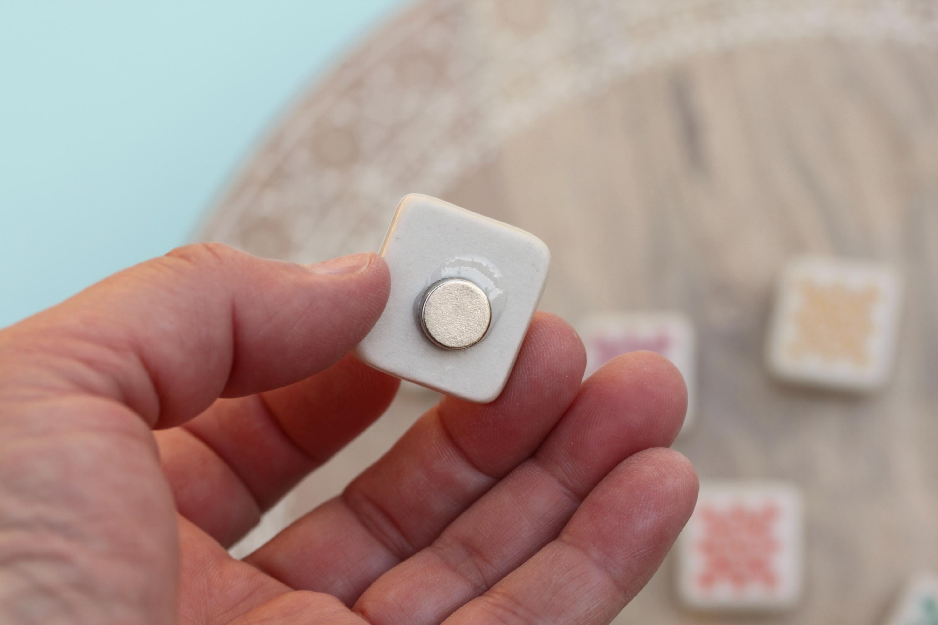 Listing is for one handmade magnet, choose your favorite. Handmade from porcelain, finished in a glossy clear glaze.