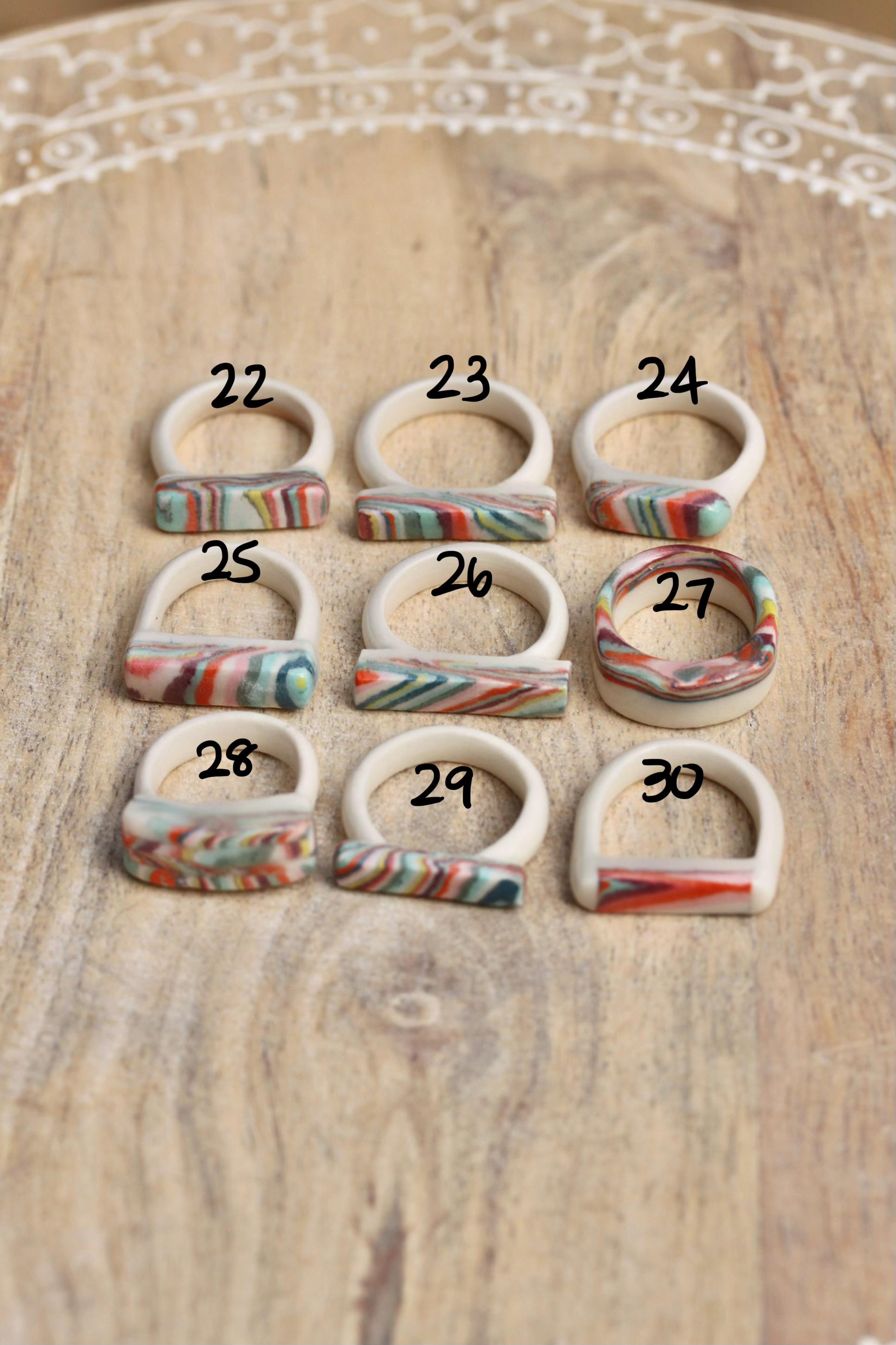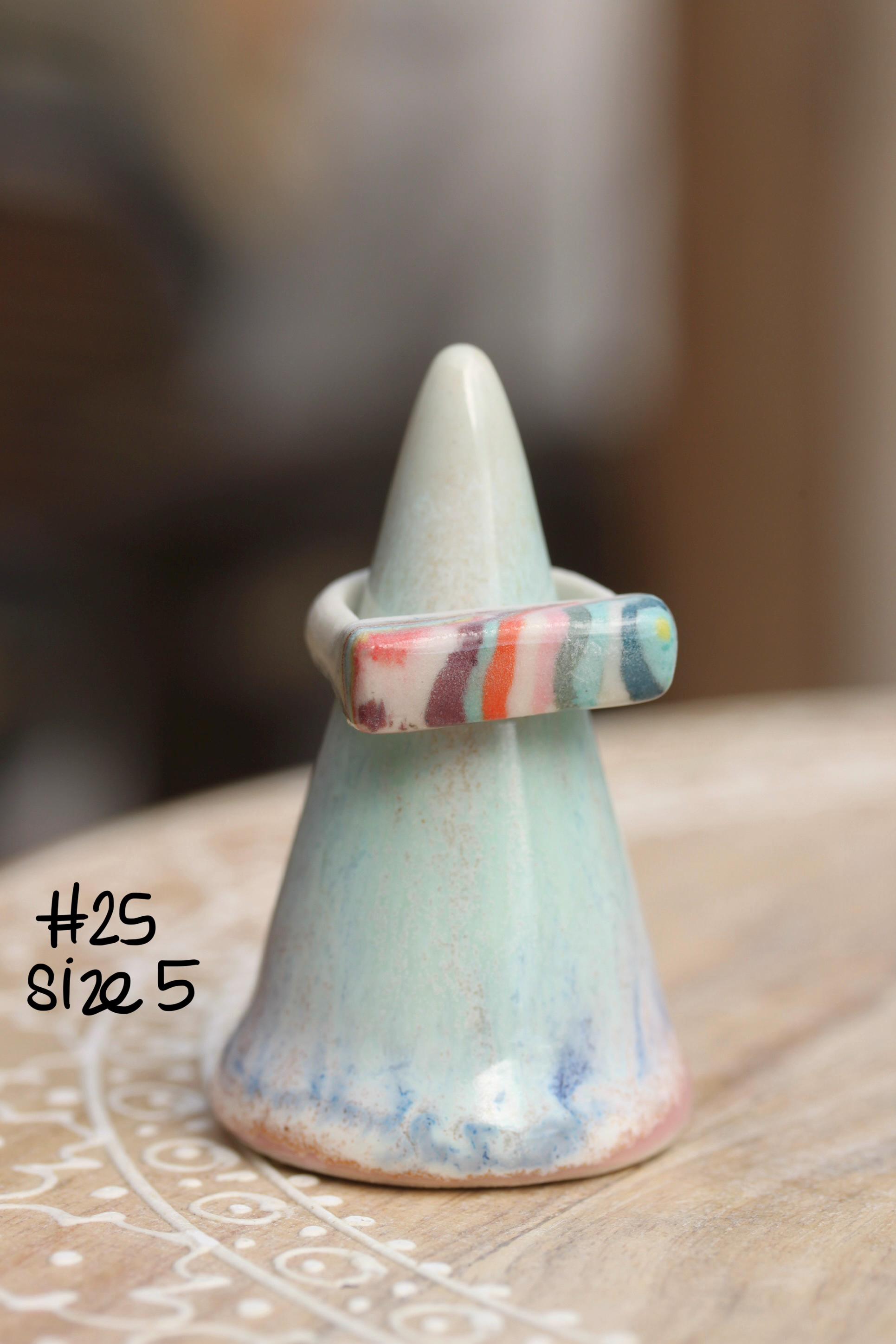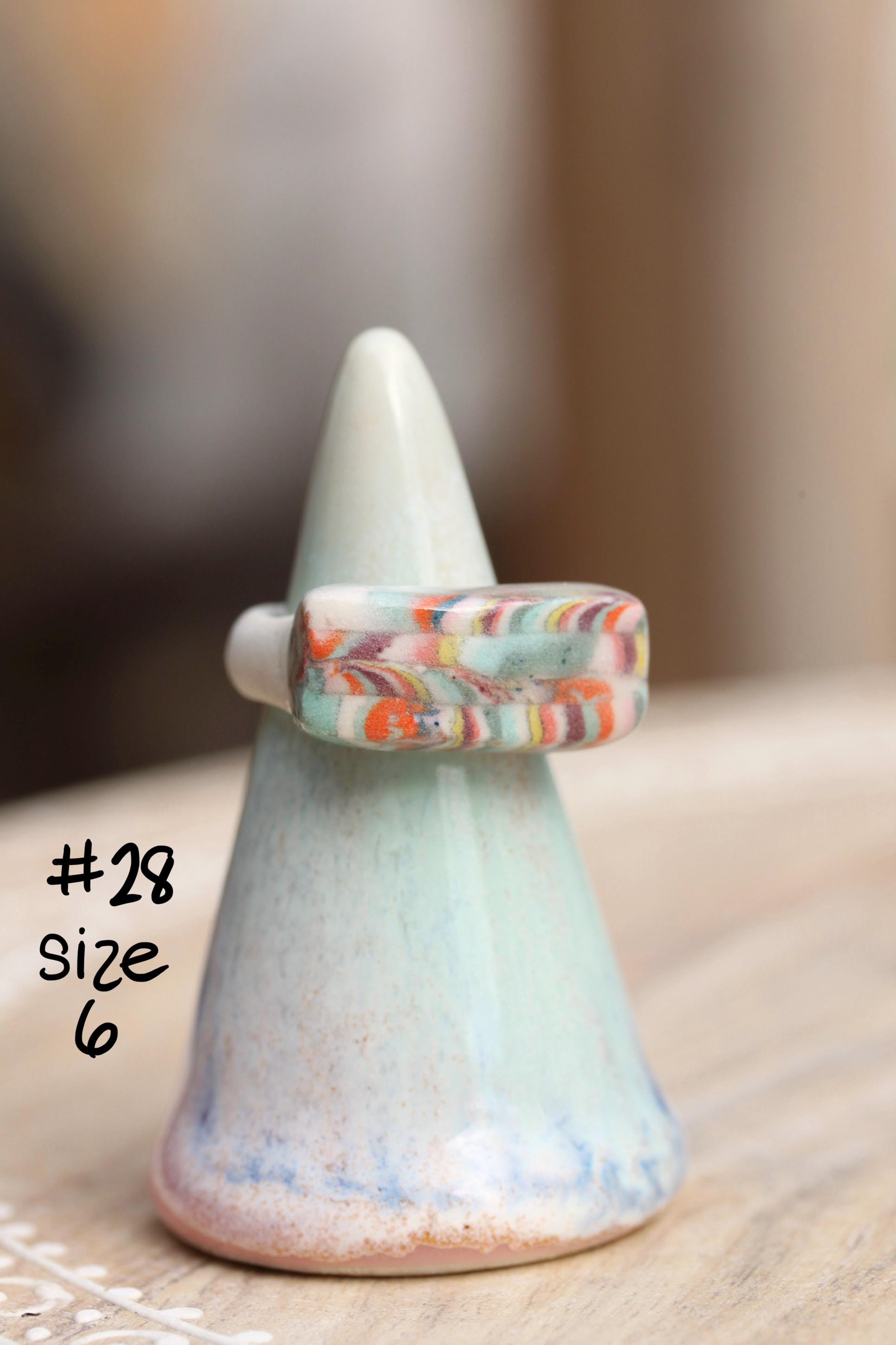 Nerikomi Porcelain ring #22-30- colorful ceramic ring