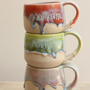 Listing is for one mug, choose your favorite ounces for each listed below. Enjoy your morning coffee or afternoon tea out of this sweet hand made mug, or make it a unique gift for Christmas or someone's birthday! Listing is for one mug in your choice of color. Interiors are all aqua. These have a wide handle which has become my favorite to use!