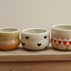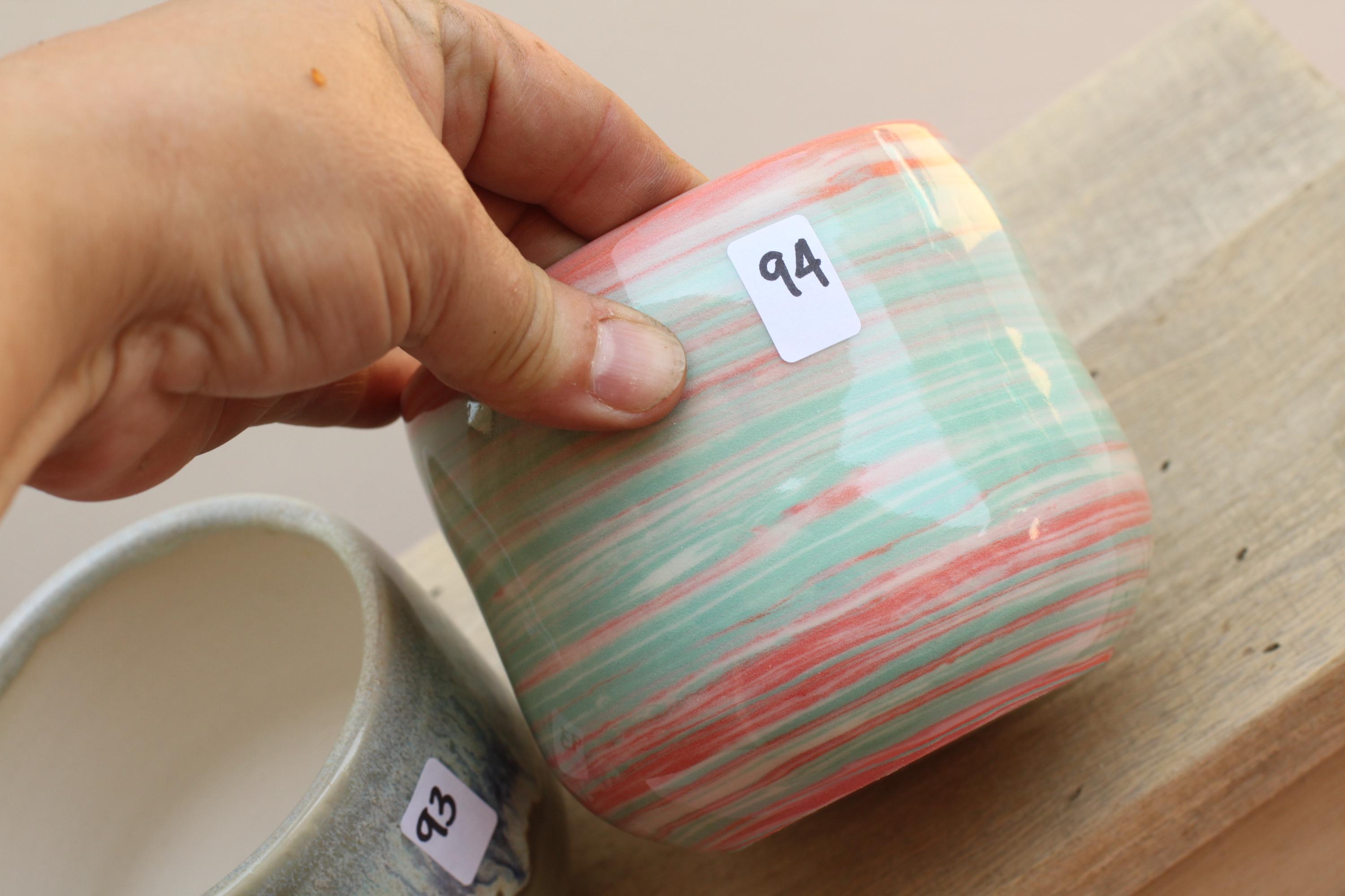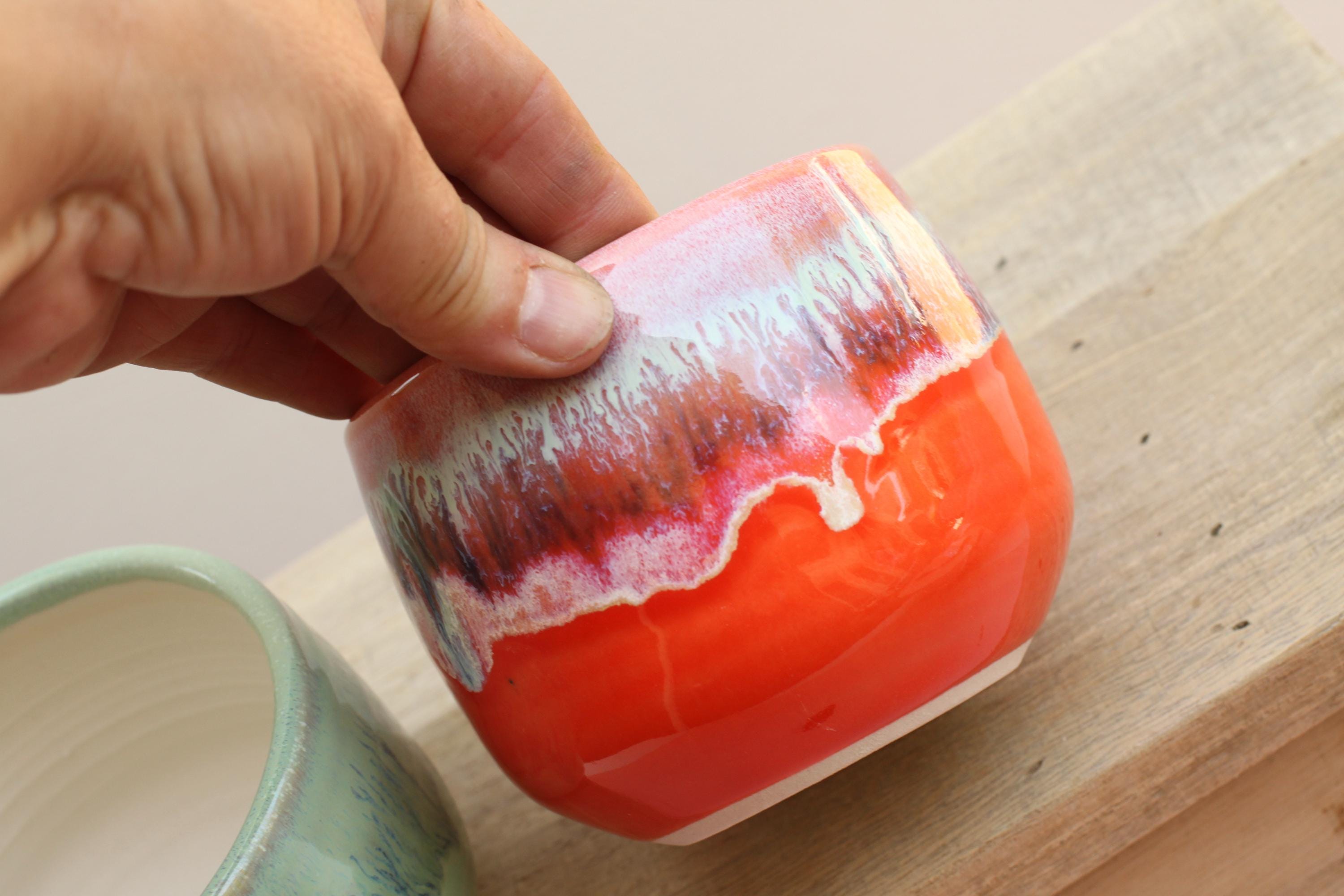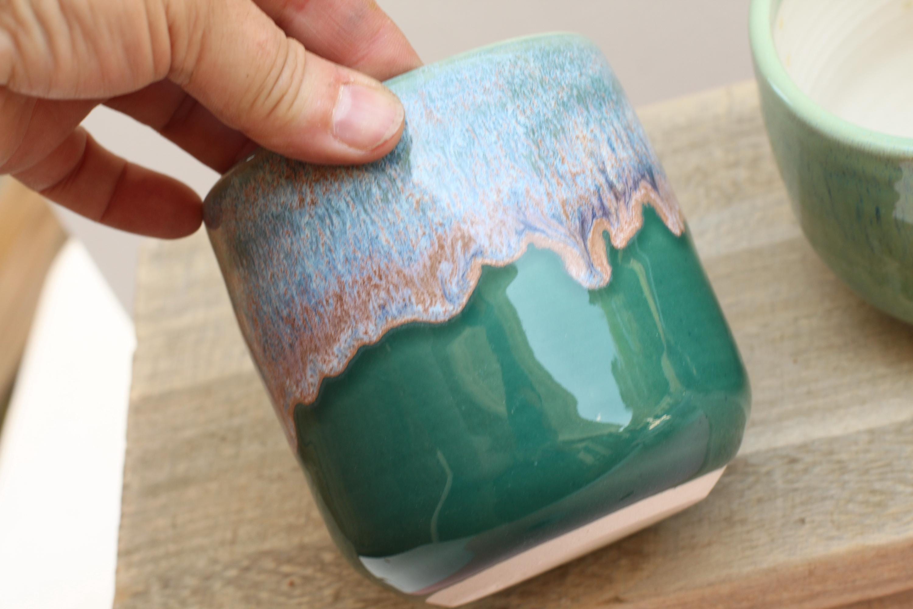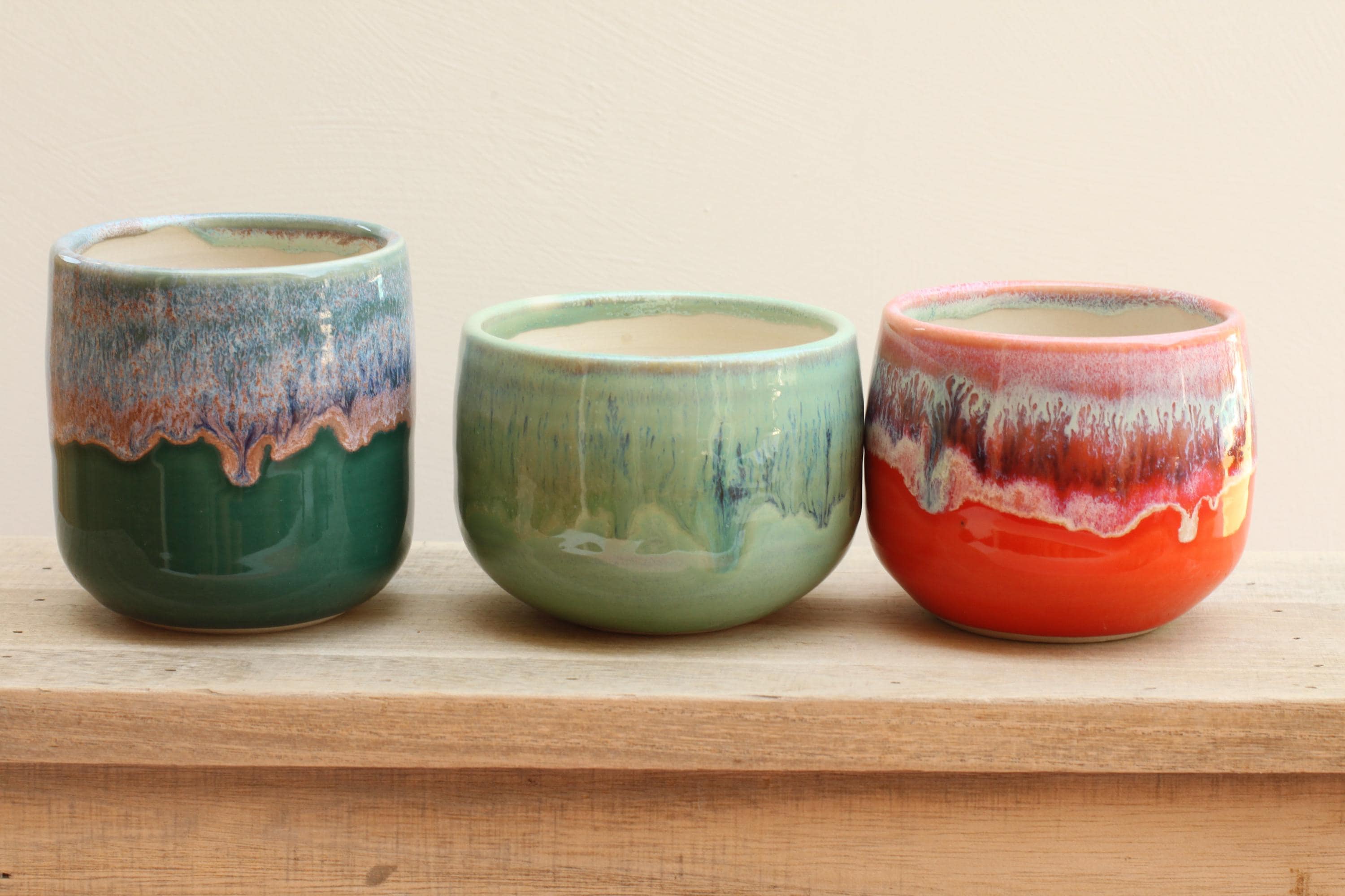 Listing is for one planter, choose your favorite. This bright planter is wheel thrown from porcelain and guaranteed to liven up any space. Layers of glaze are used to create the colors and I've added a hole for drainage. It can be used indoors and outdoors and dishwasher safe. The interior is unglazed, this planter does NOT come with a saucer.