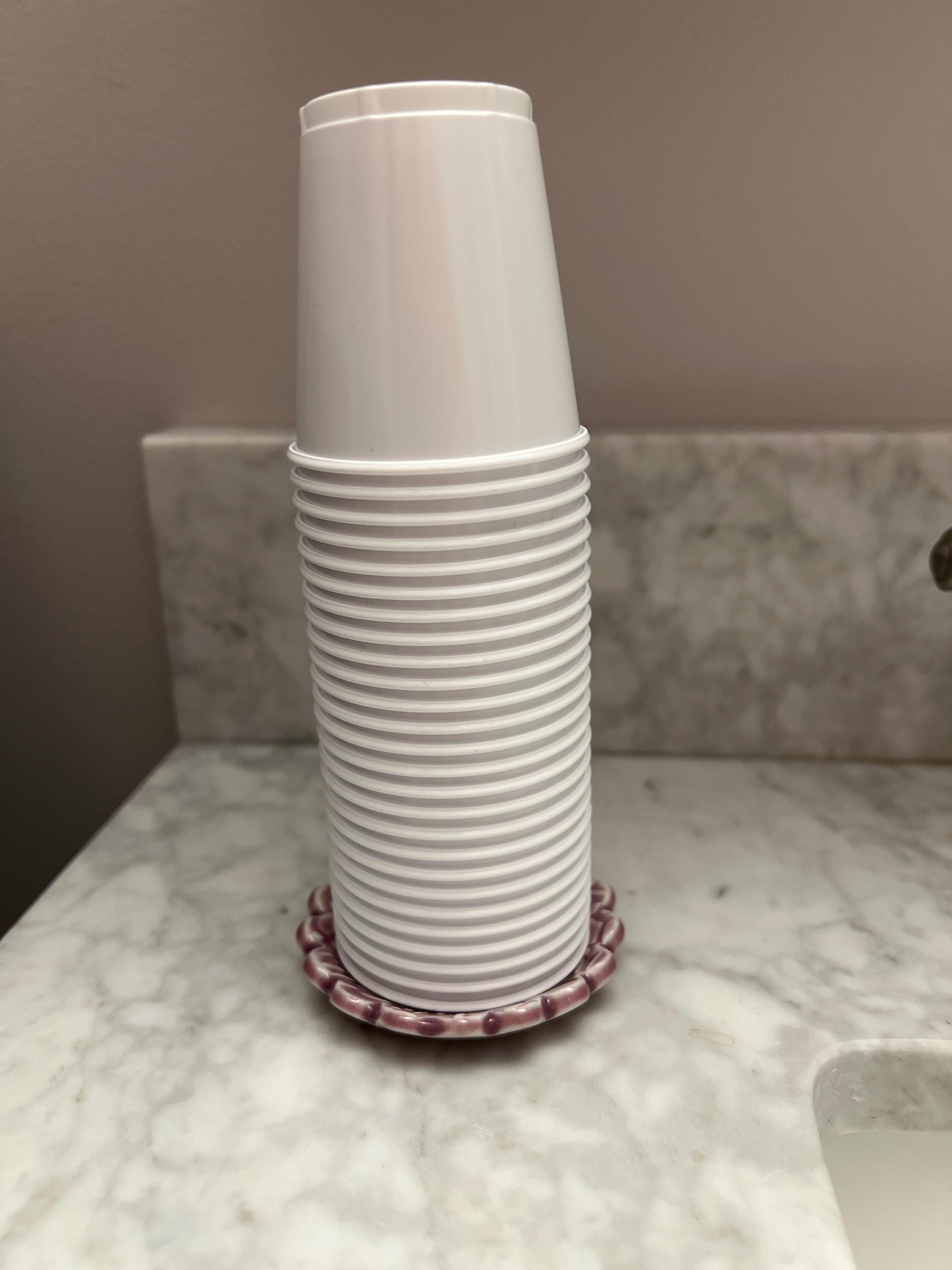 I looked high and low for a low profile, hand crafted piece to place single use cups on for my bathroom and this is perfect. Came beautifully wrapped. Very professional and protected. I will be purchase their business card holder to put tips in.