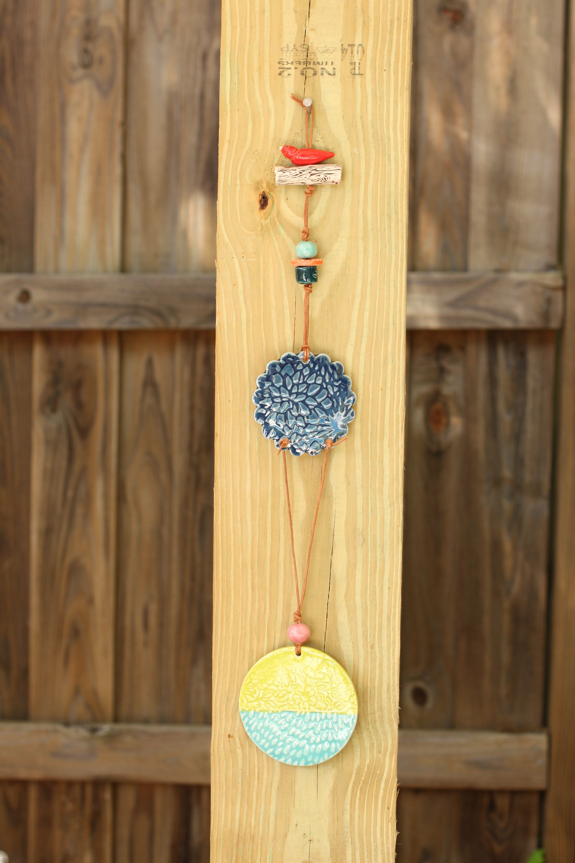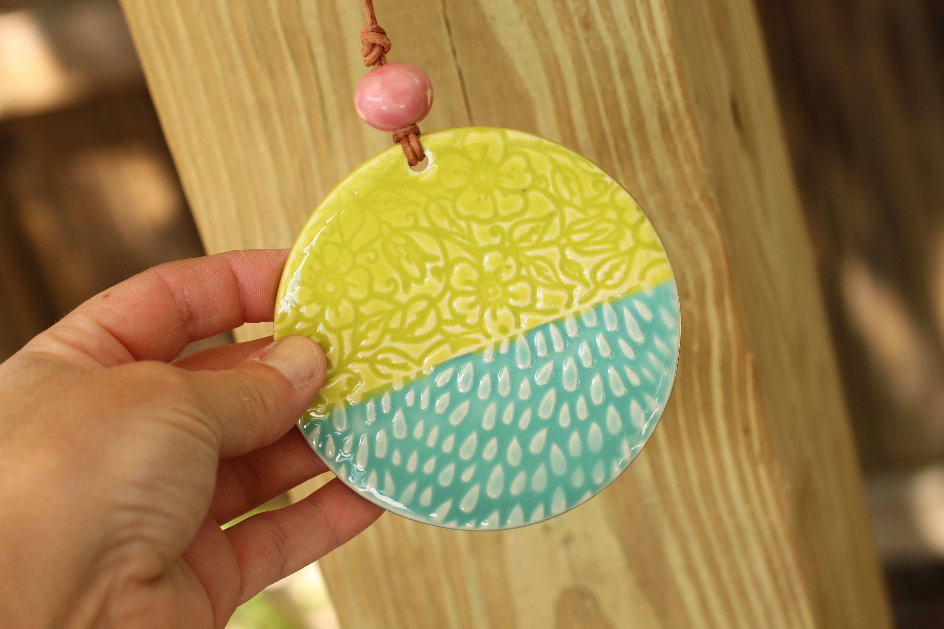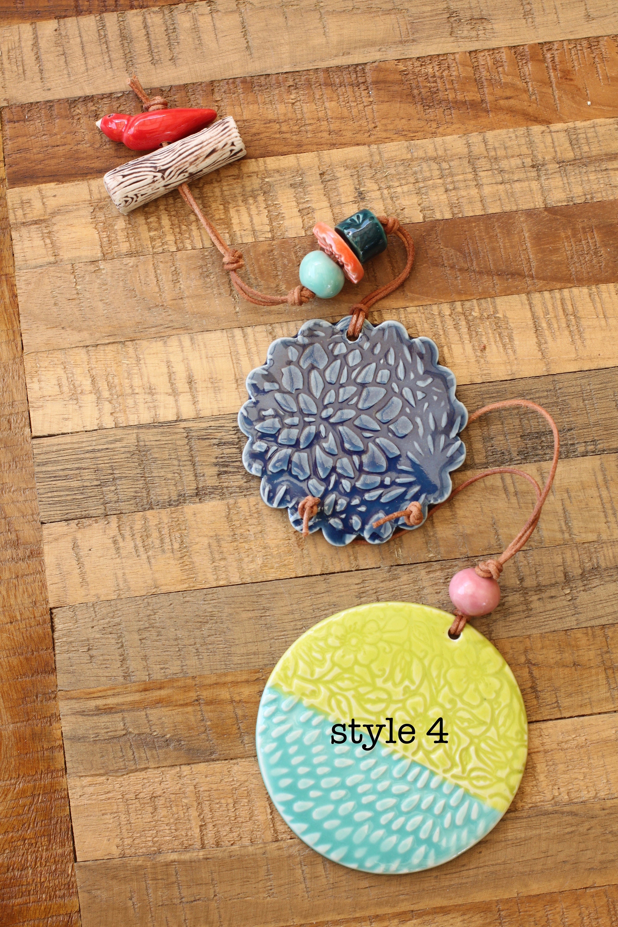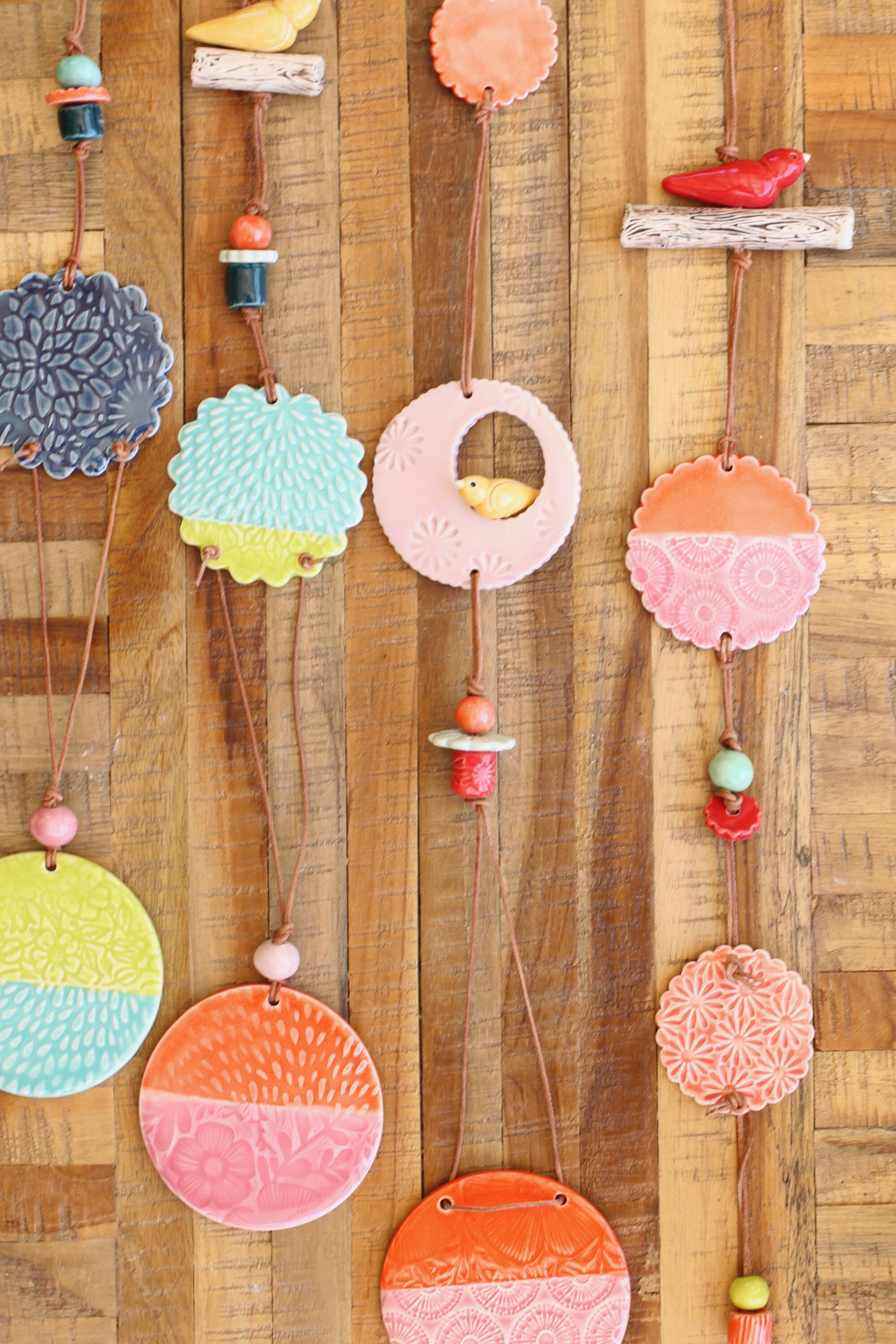 This sweet wall hanging is made from porcelain, the listing is for one hanging, choose your favorite. Each hanging is looped with leather and our handmade porcelain beads and components.